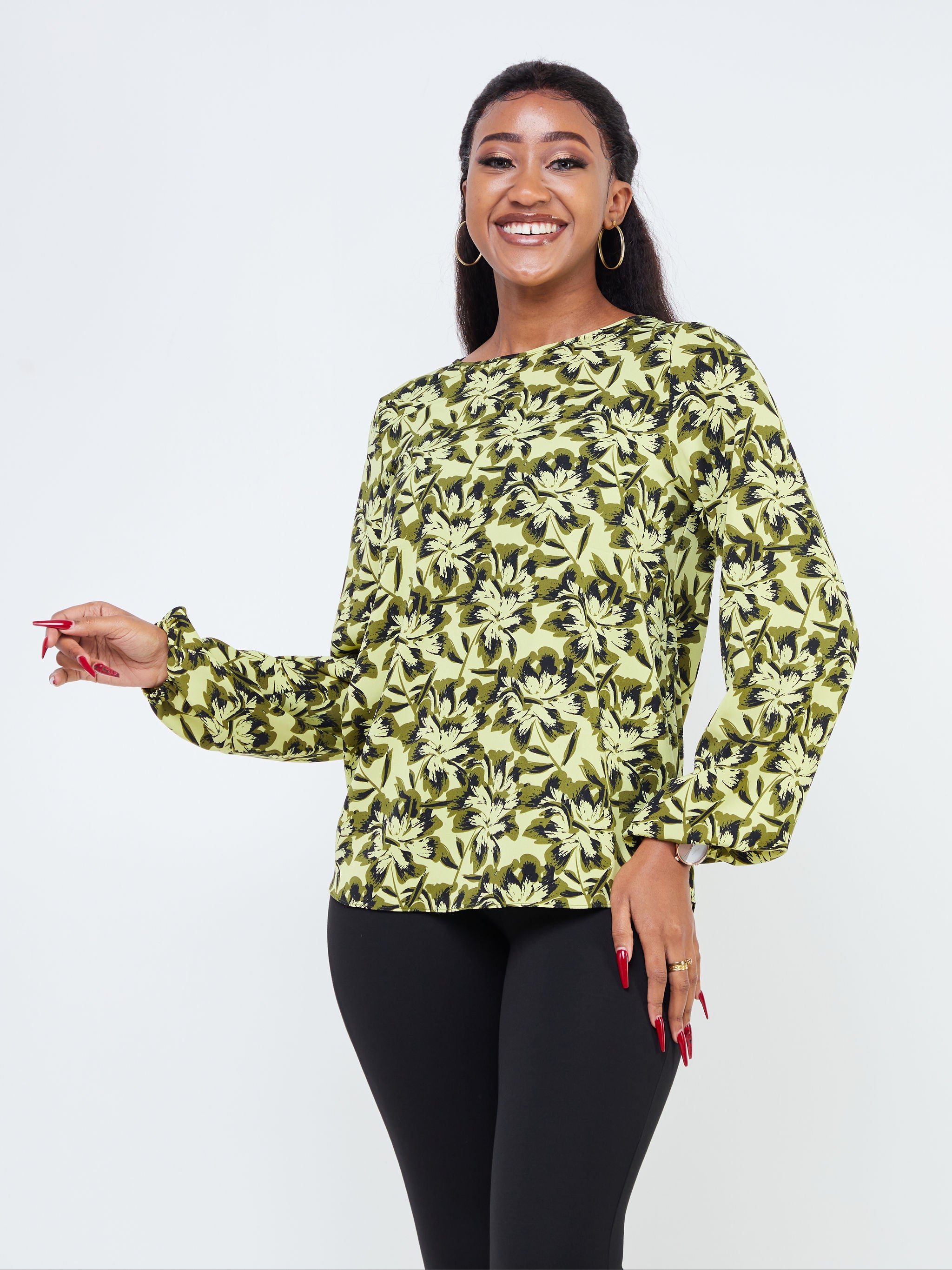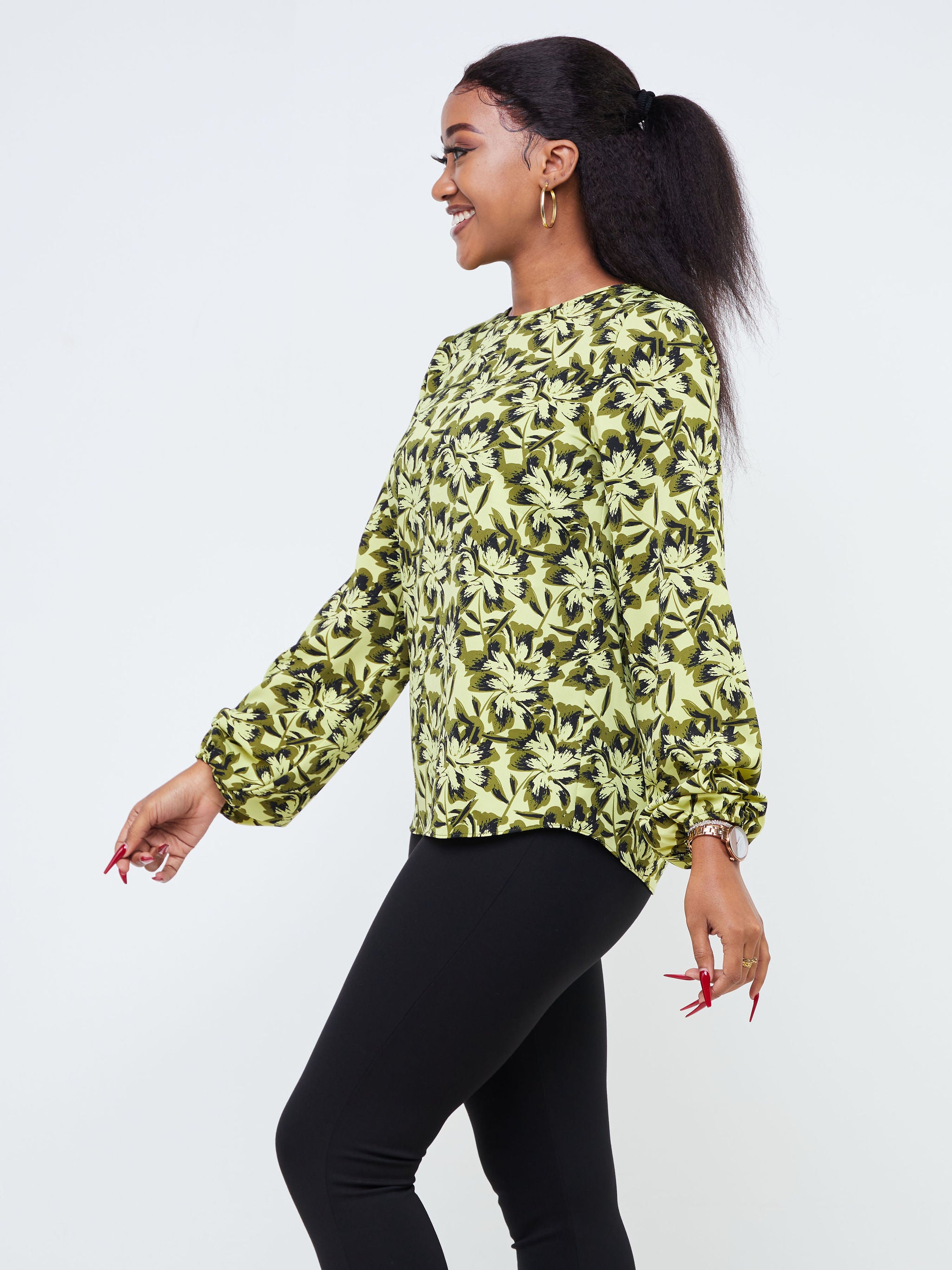 Vivo Basic Long Sleeved Bishop Top - Green Print