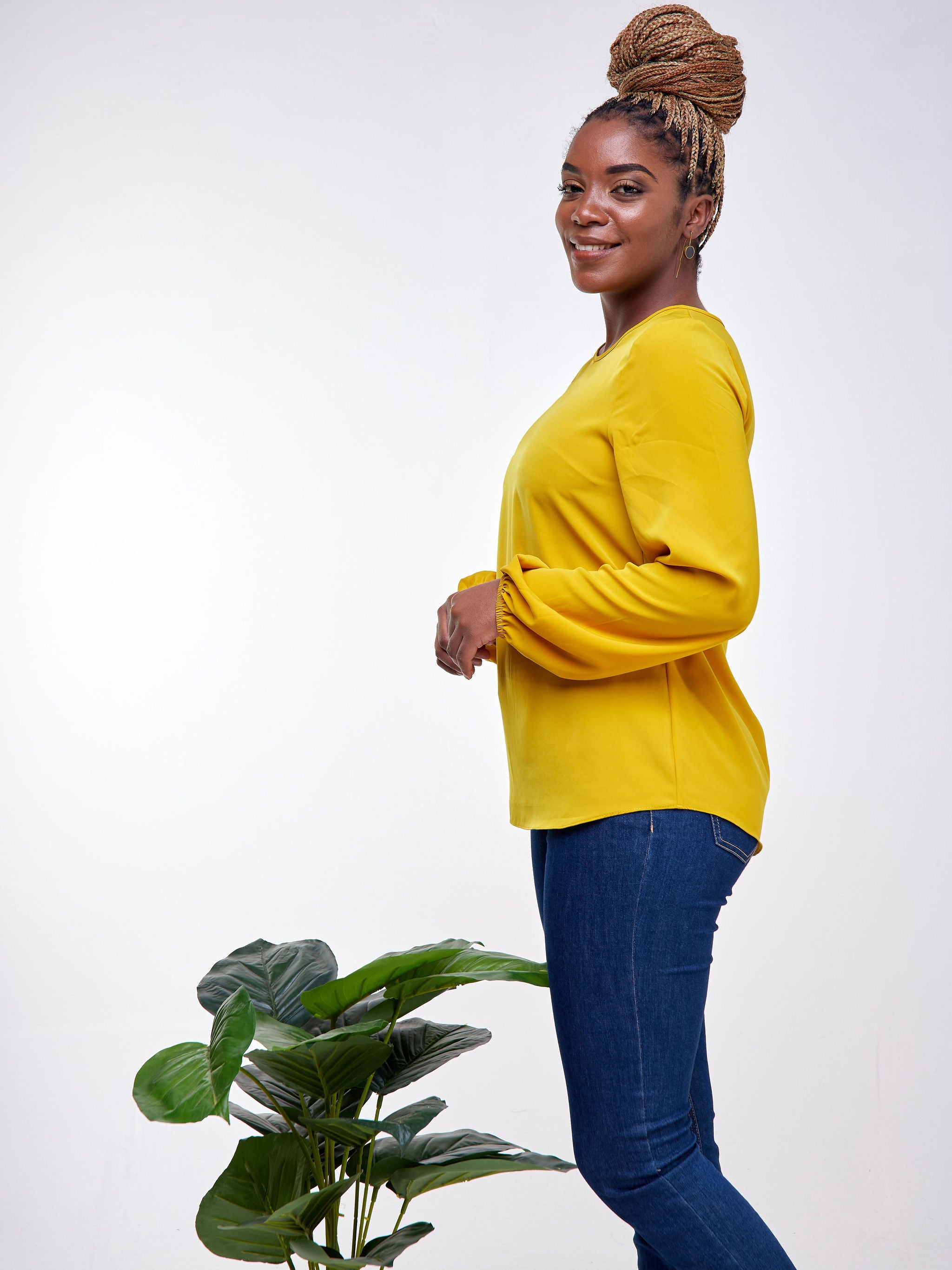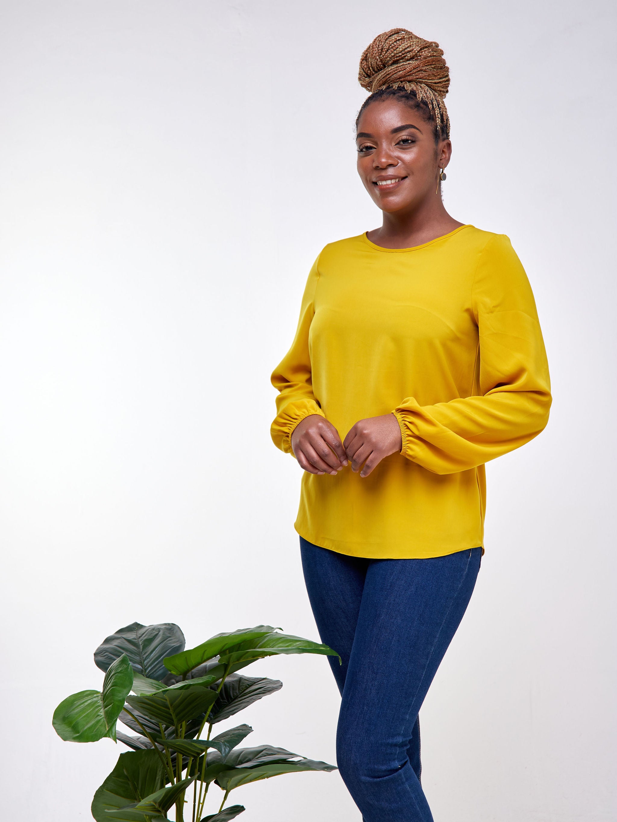Vivo Basic Long Sleeved Bishop Top - Mustard