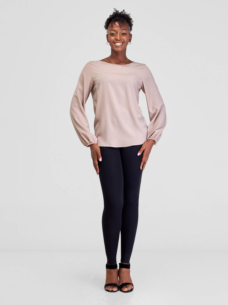 Vivo Basic Long Sleeved Bishop Top - Pink Polka