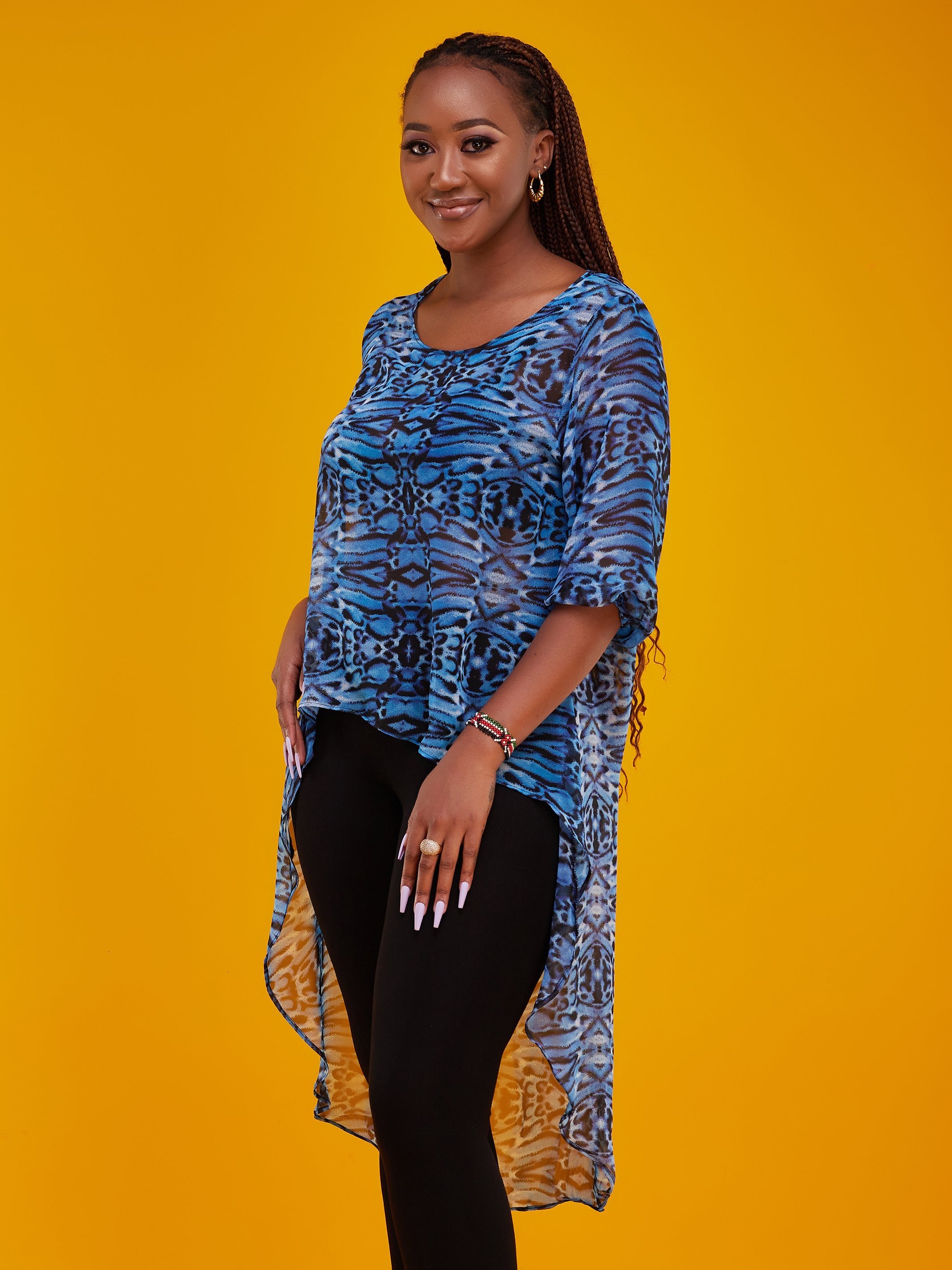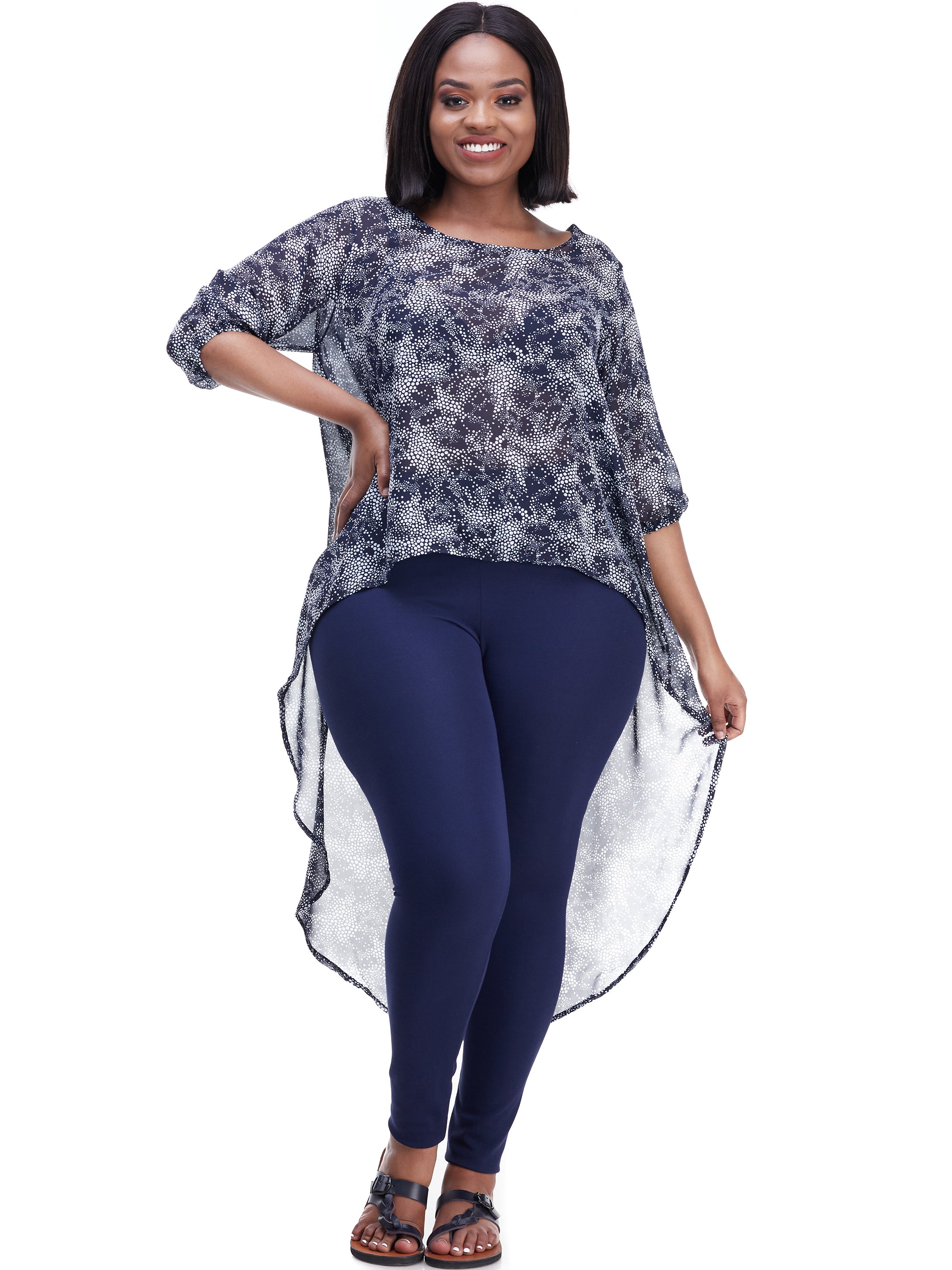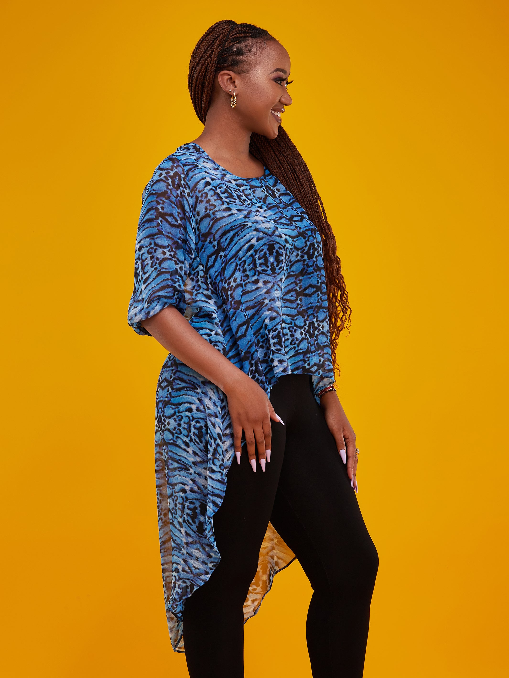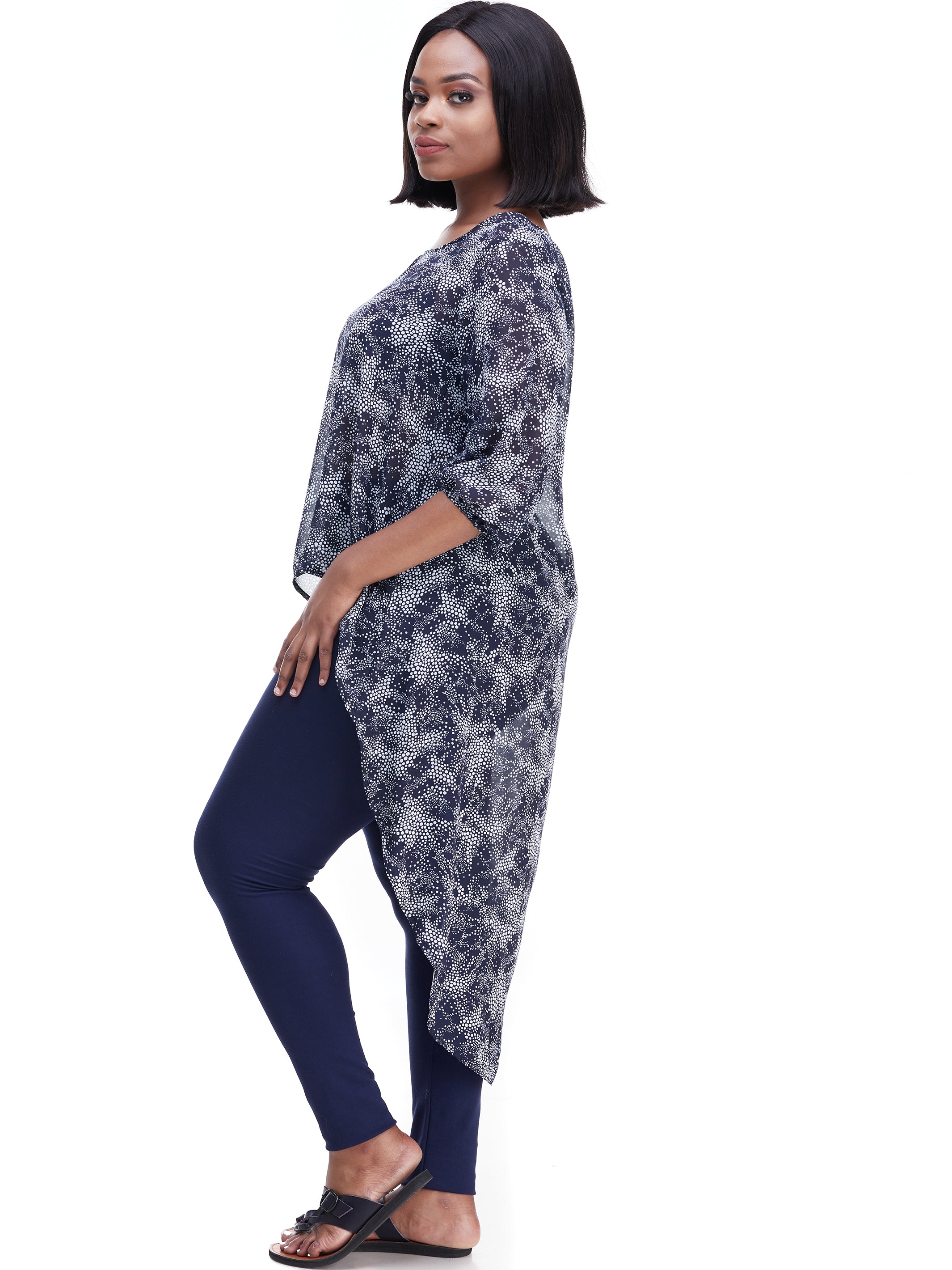 Vivo Basic Nalia High-low Chiffon Top - Blue Midnight Cheetah Print