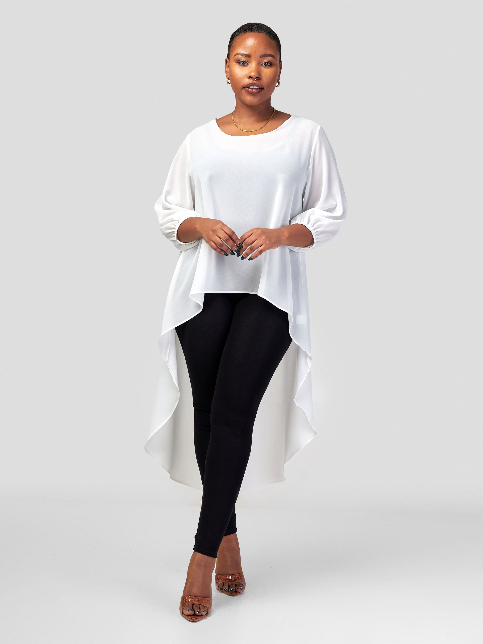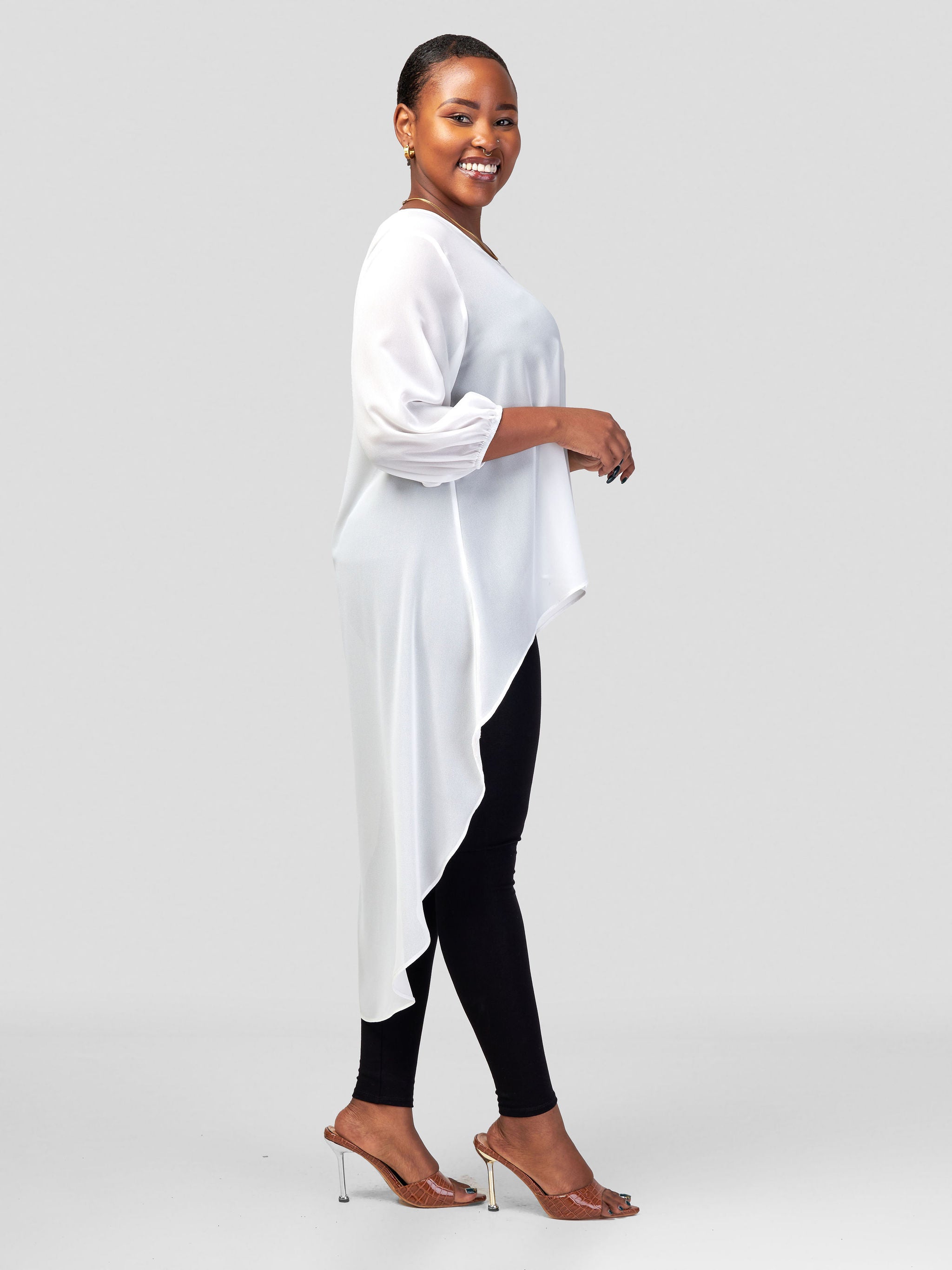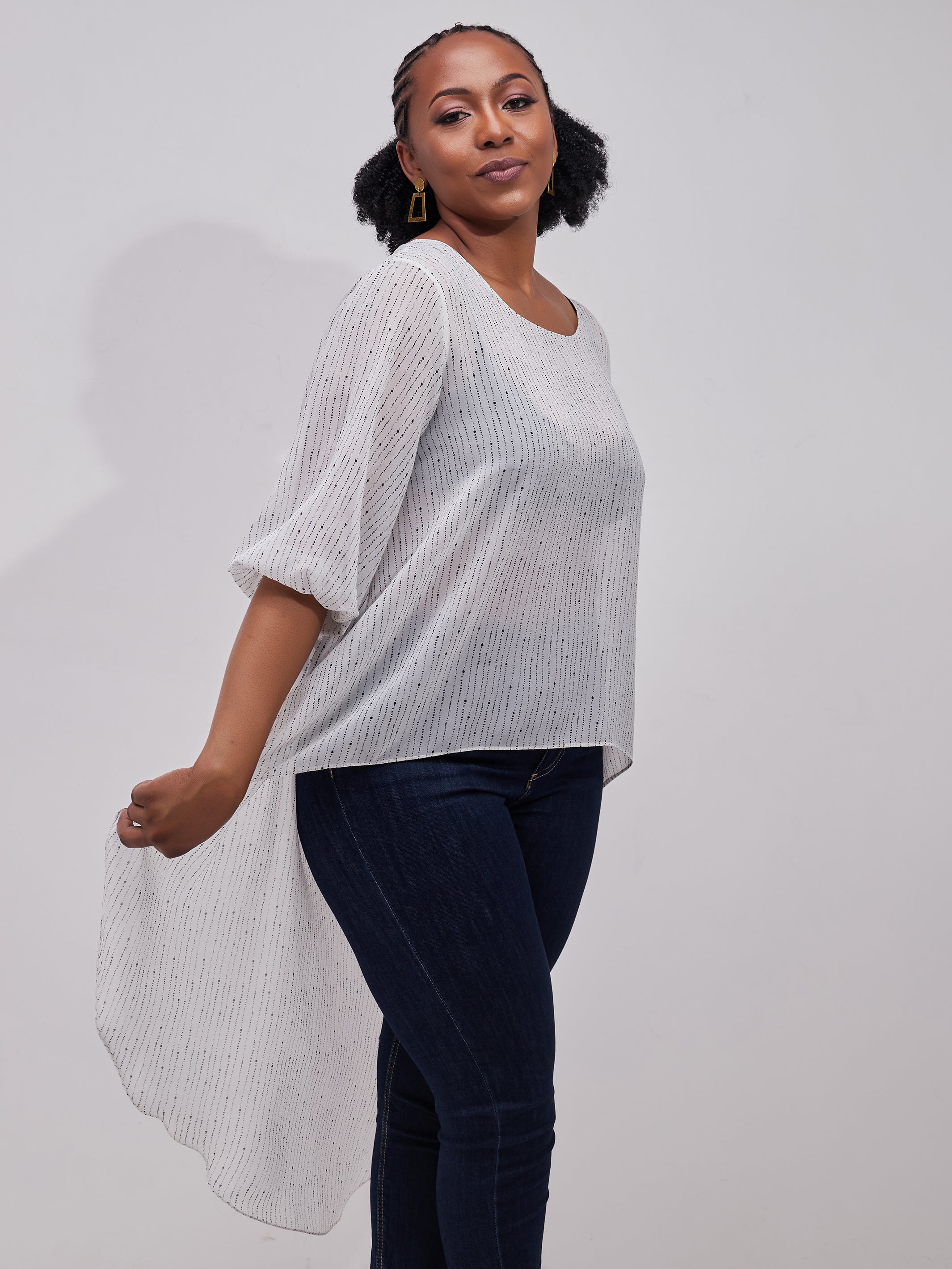 Vivo Basic Nalia High-low Chiffon Top - White Textured