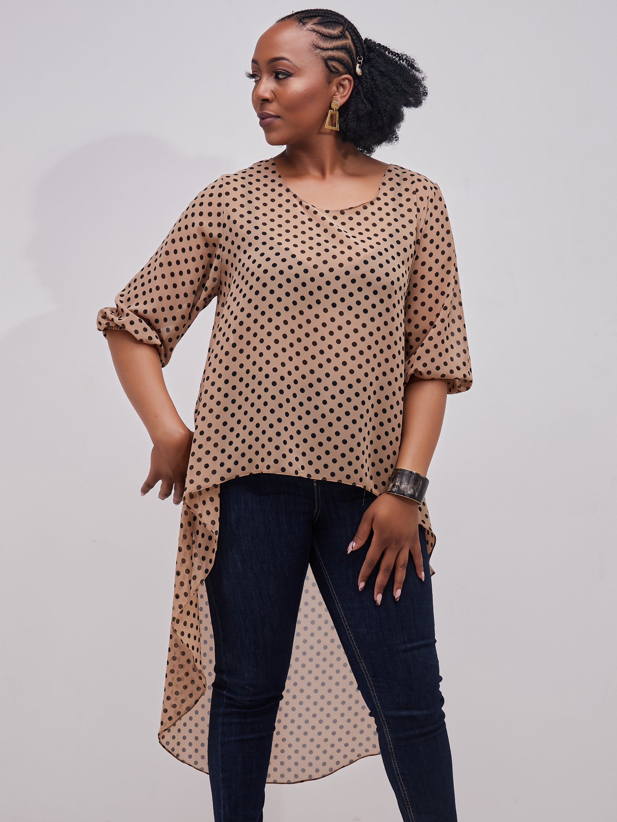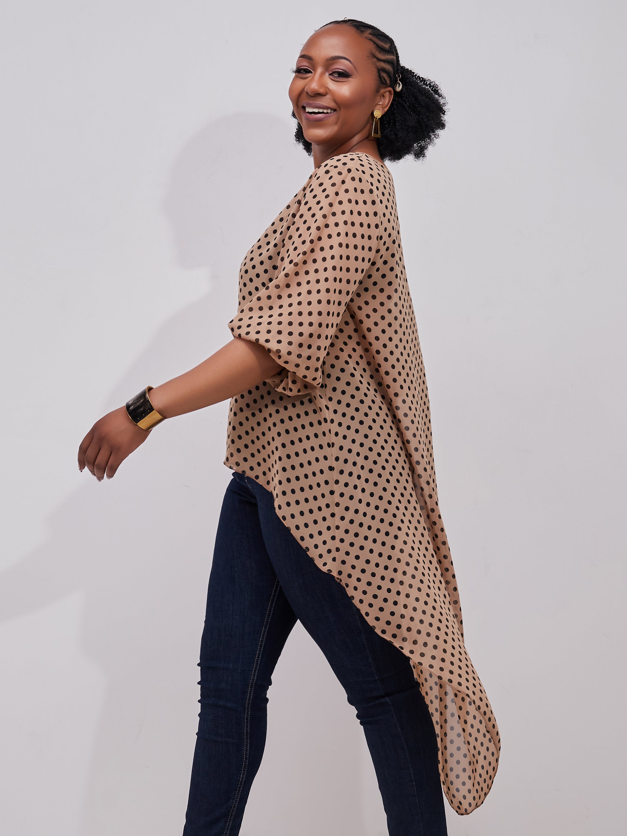 Vivo Basic Nalia High-low Chiffon Top - Taupe / Black Polka