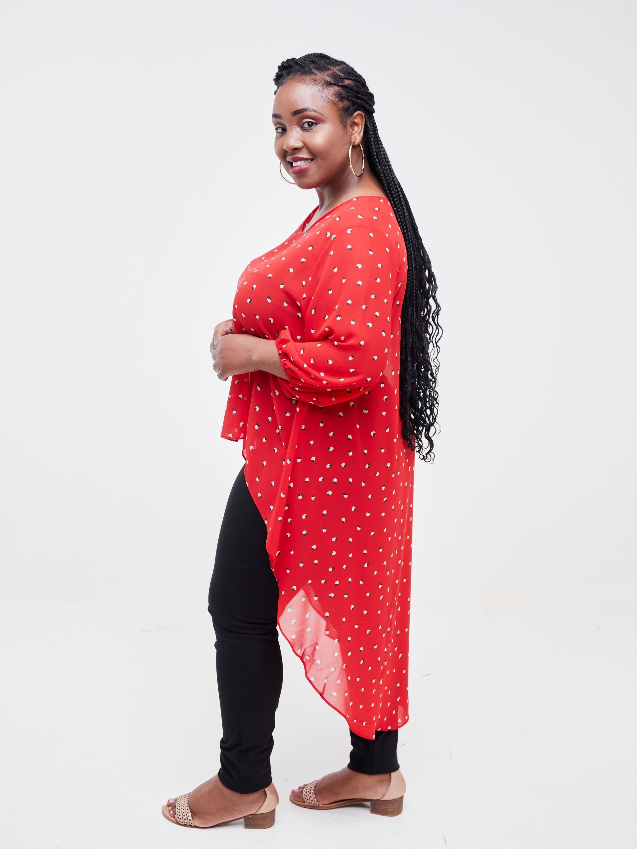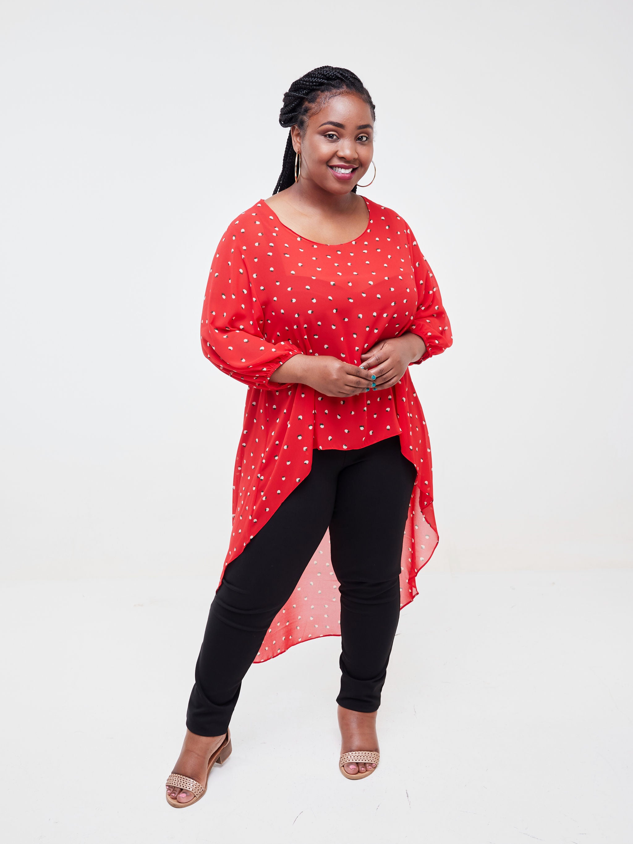 Vivo Basic Nalia High-low Chiffon Top - Red Print