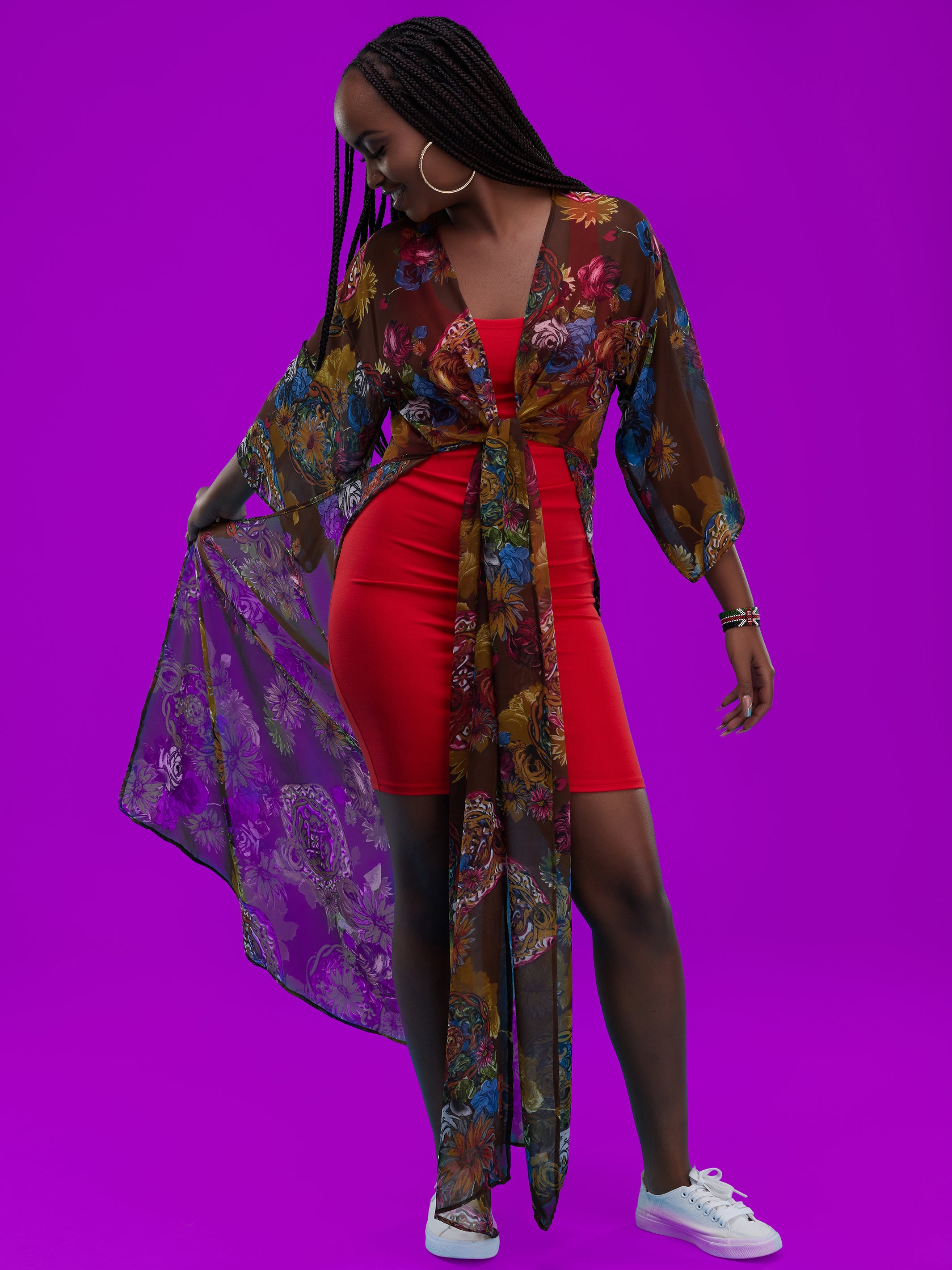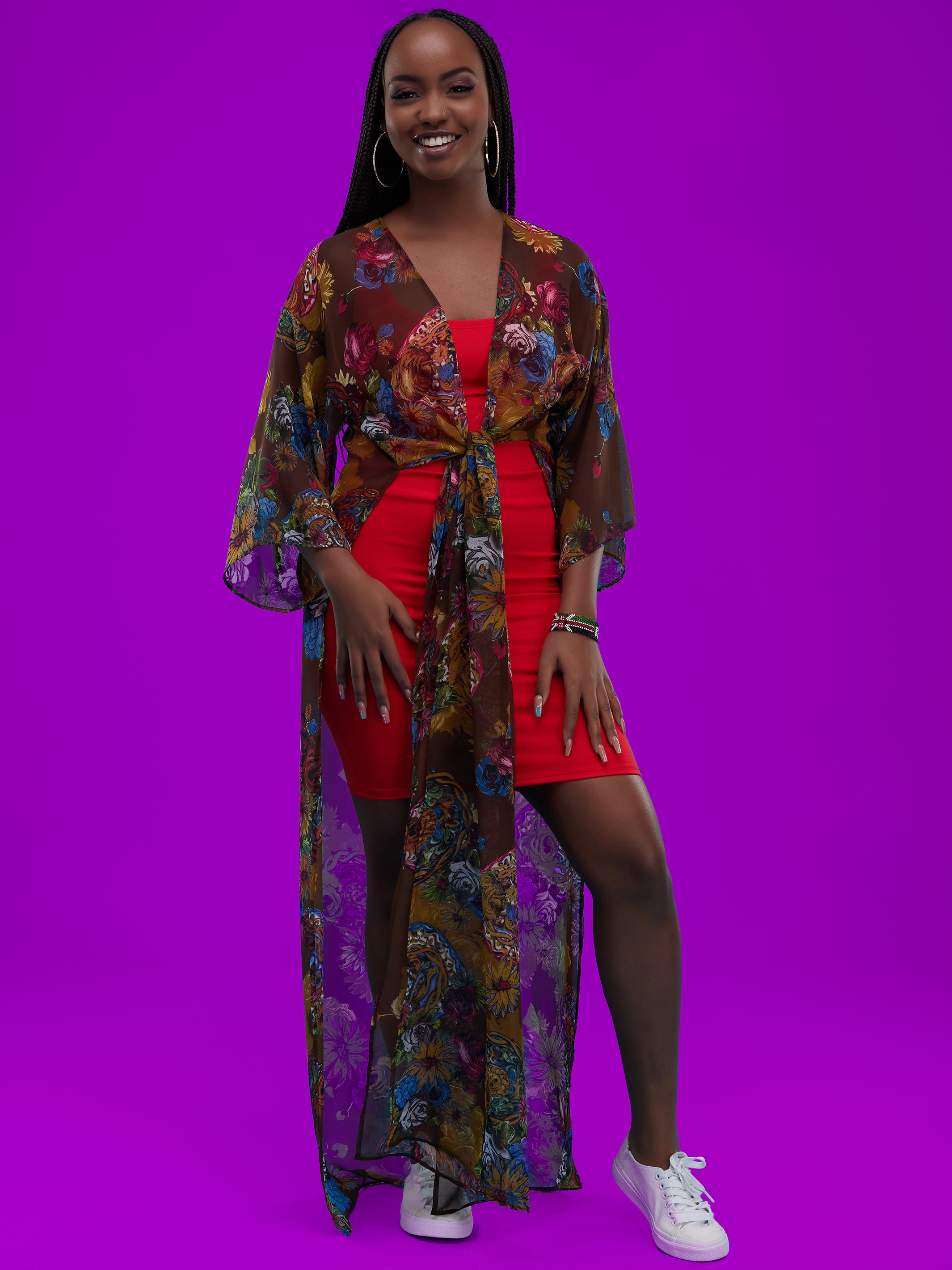 Vivo Basic Nandi High Slit Kimono - Black / Orange Print