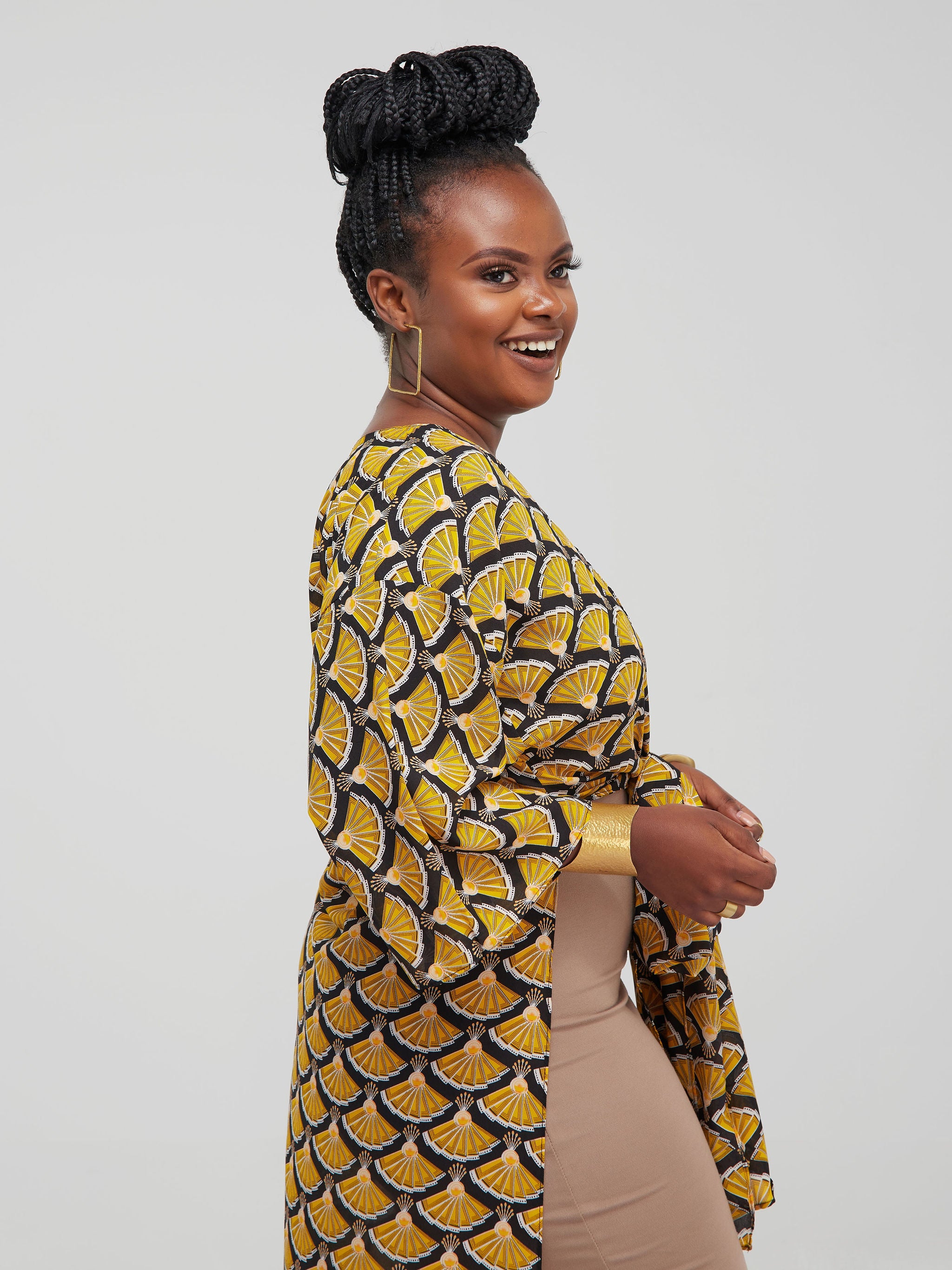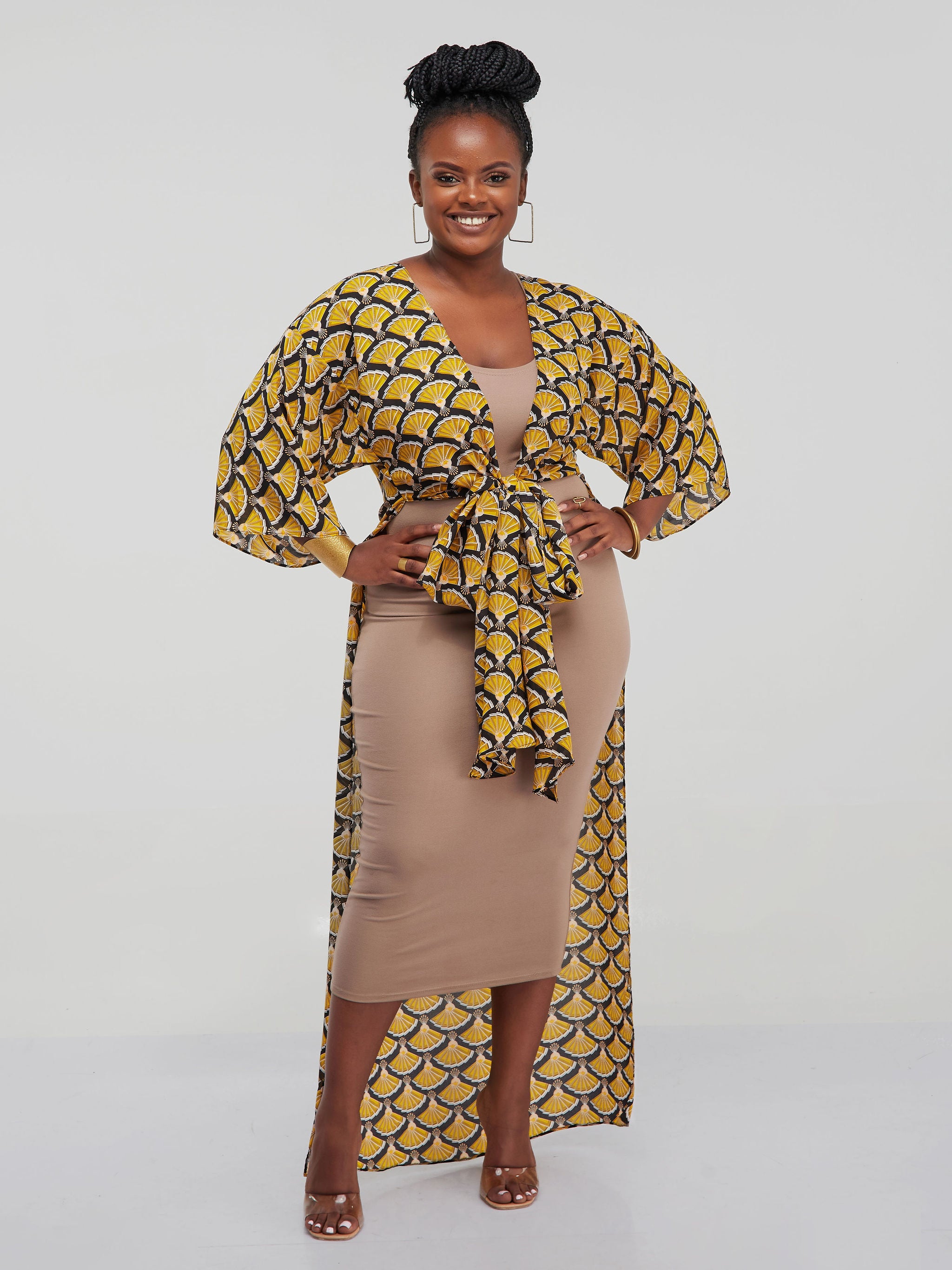 Vivo Basic Nandi High Slit Kimono - Black / Yellow Abstract Print
