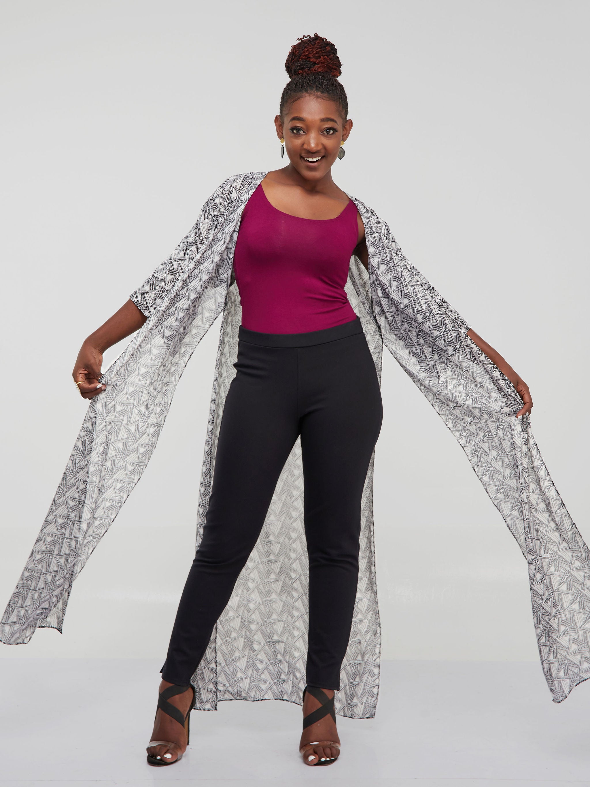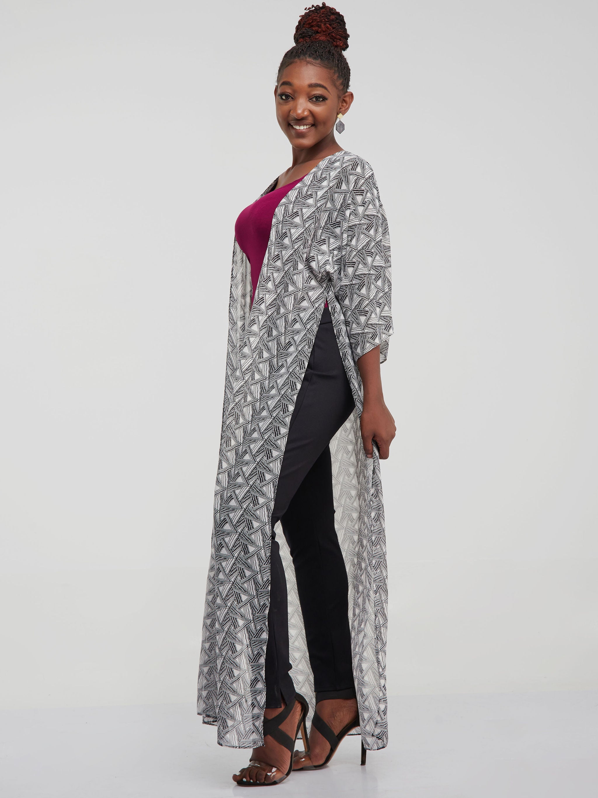 Vivo Basic Nandi High Slit Kimono - Black / White Geometric Print
