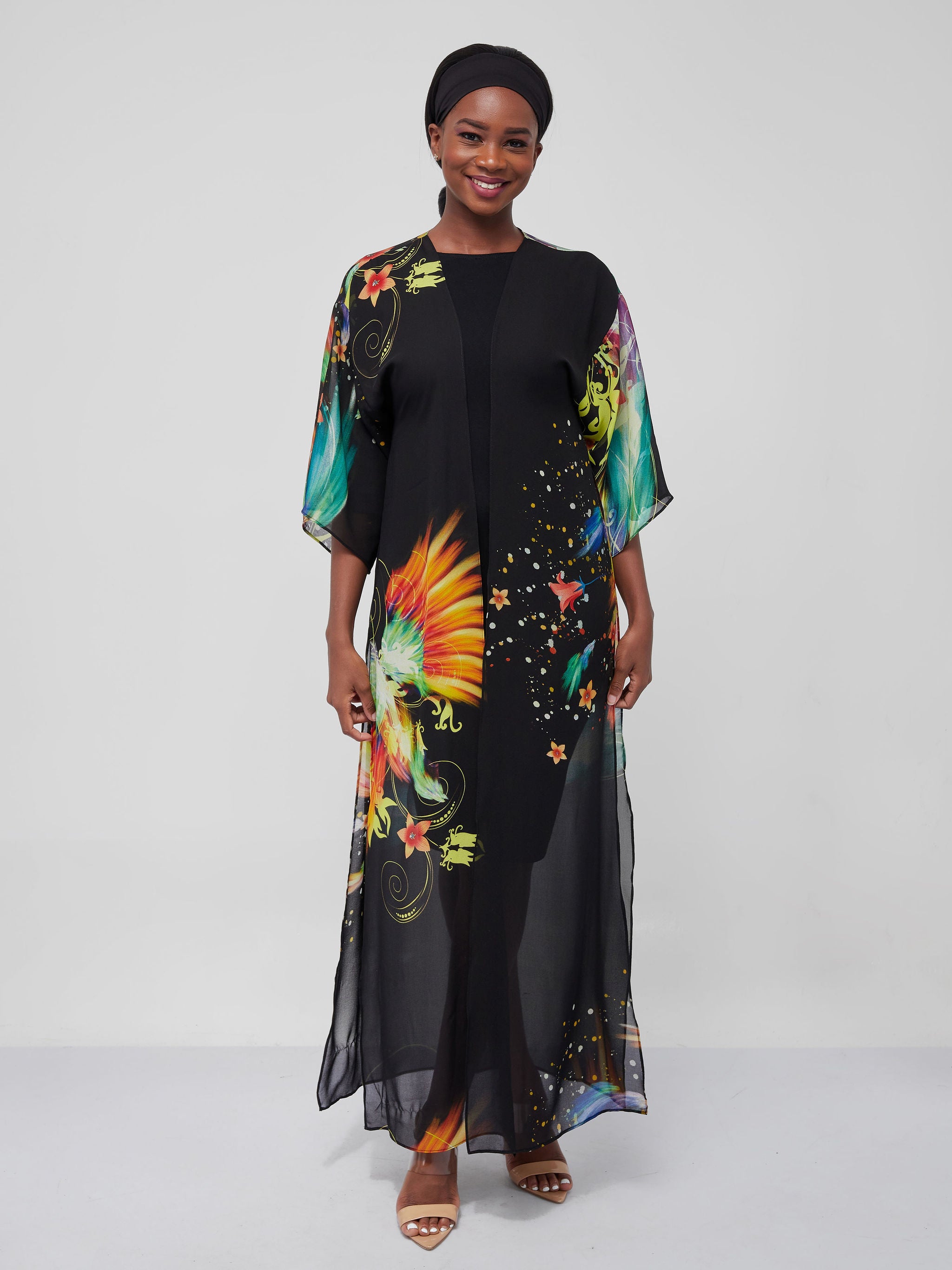 Vivo Basic Nandi High Slit Kimono - Black Print