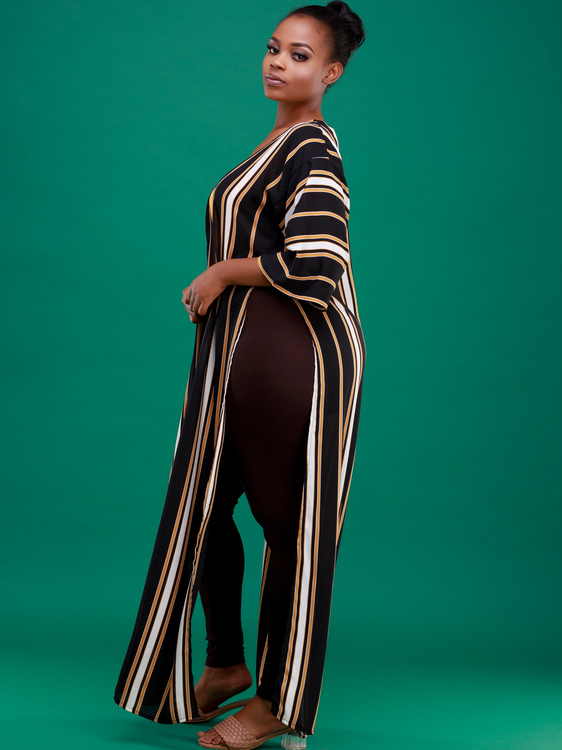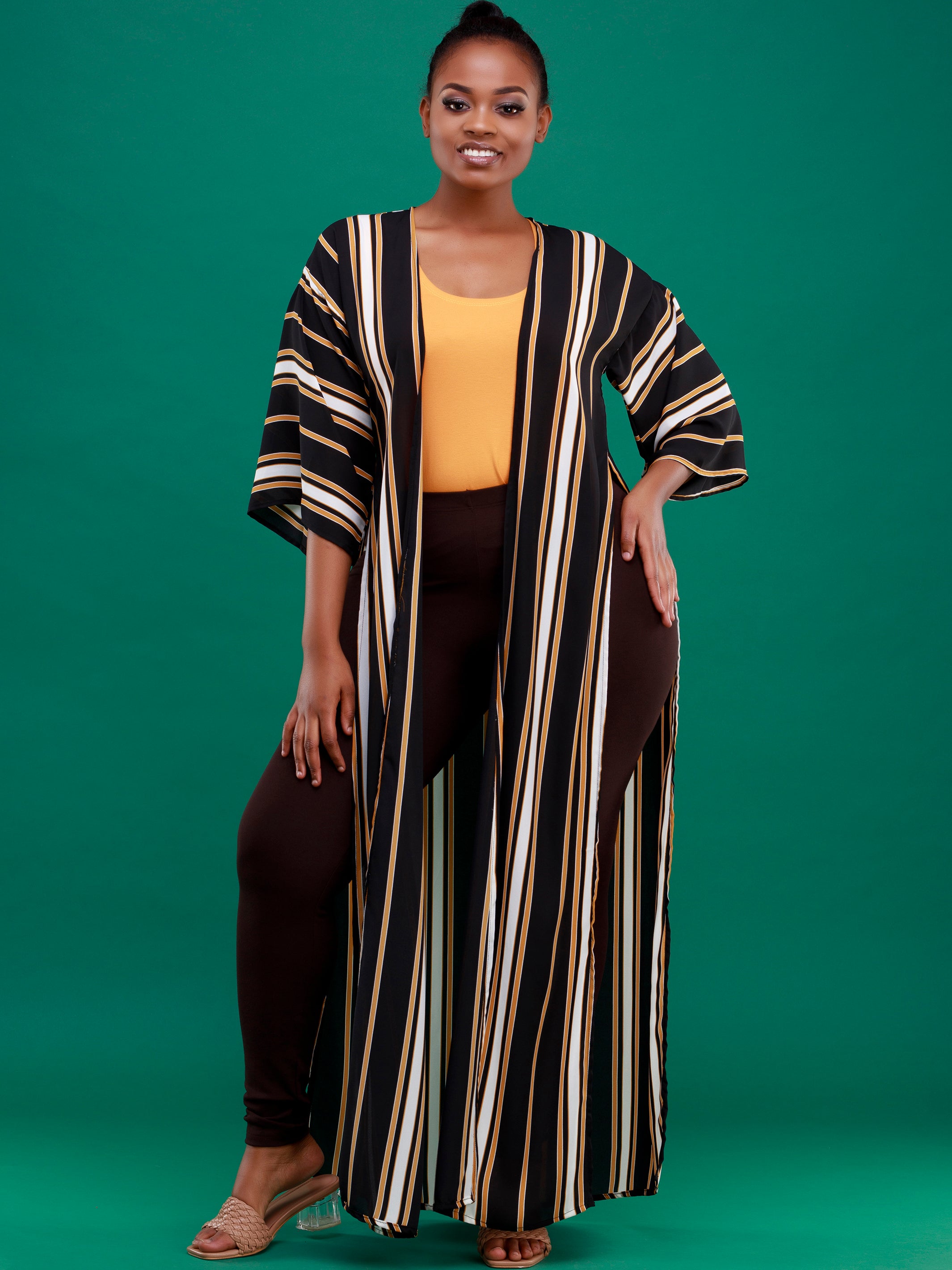 Vivo Basic Nandi High Slit Kimono - Black / Mustard Stripe