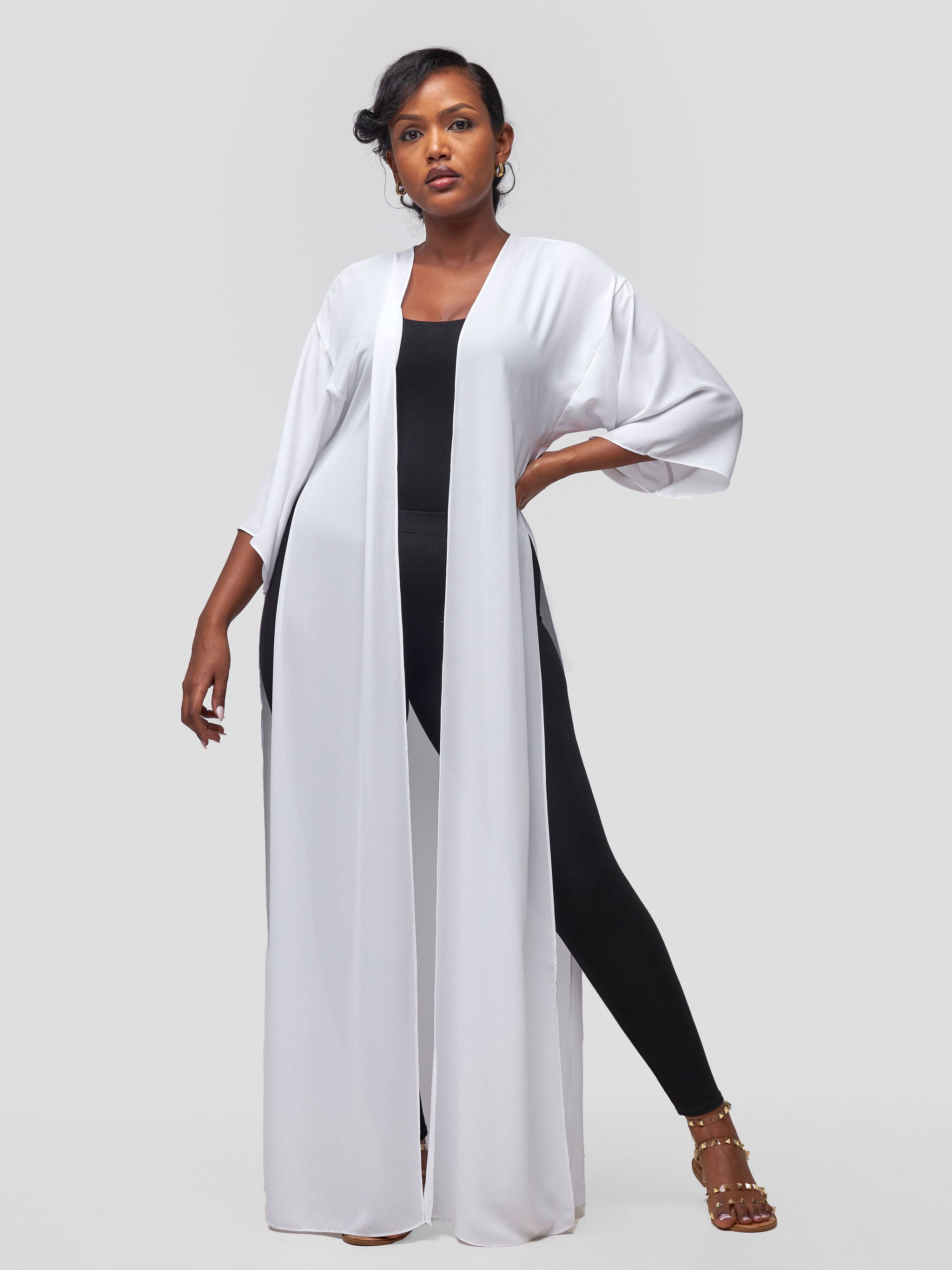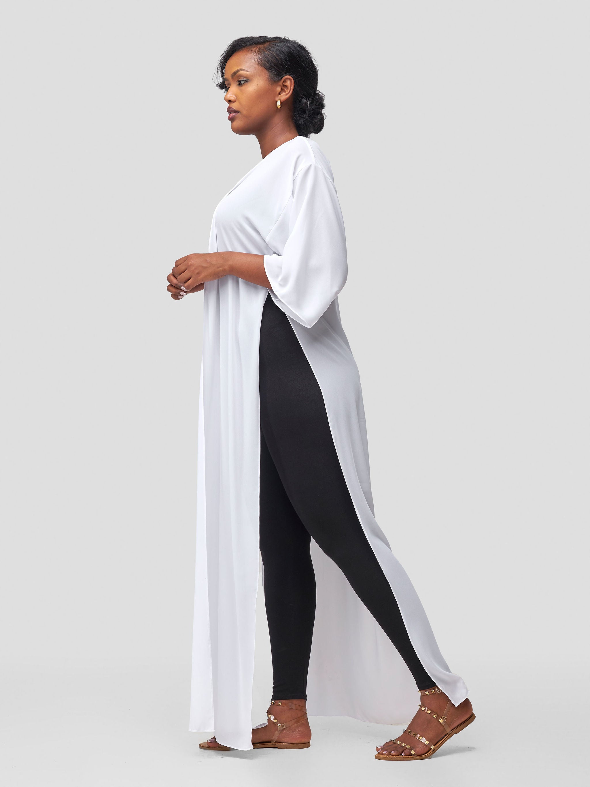 Vivo Basic Nandi High Slit Kimono - White & Black Print