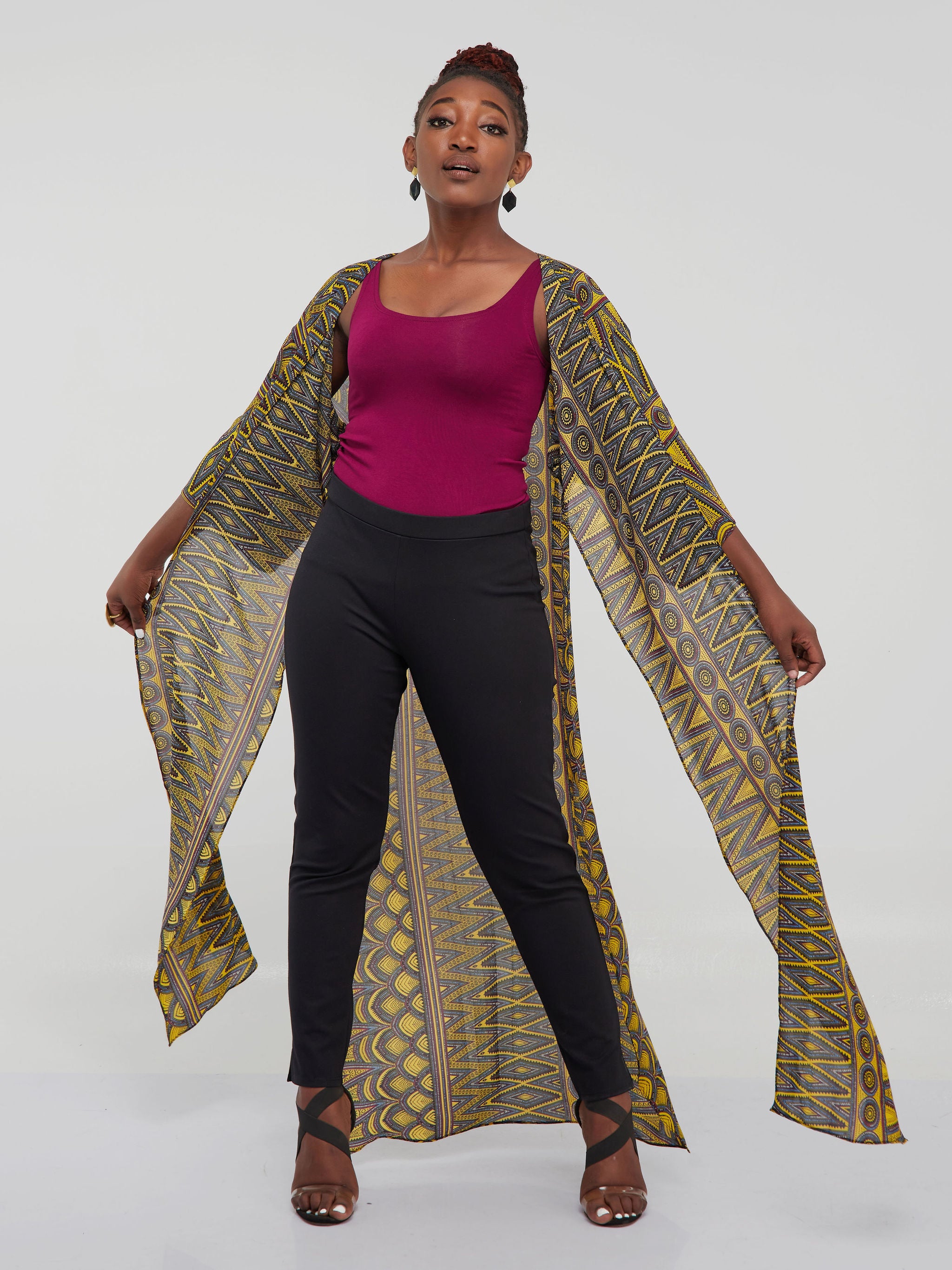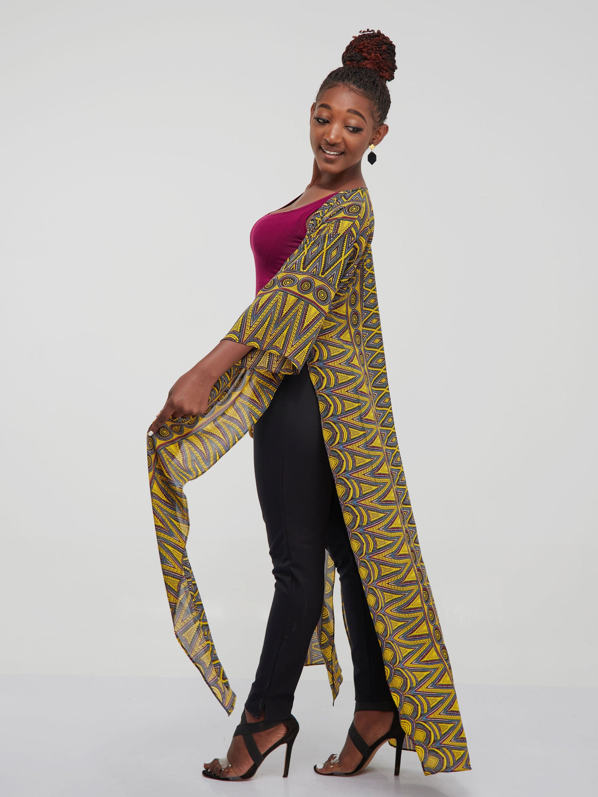 Vivo Basic Nandi High Slit Kimono - Yellow /Pink Geometric Print
