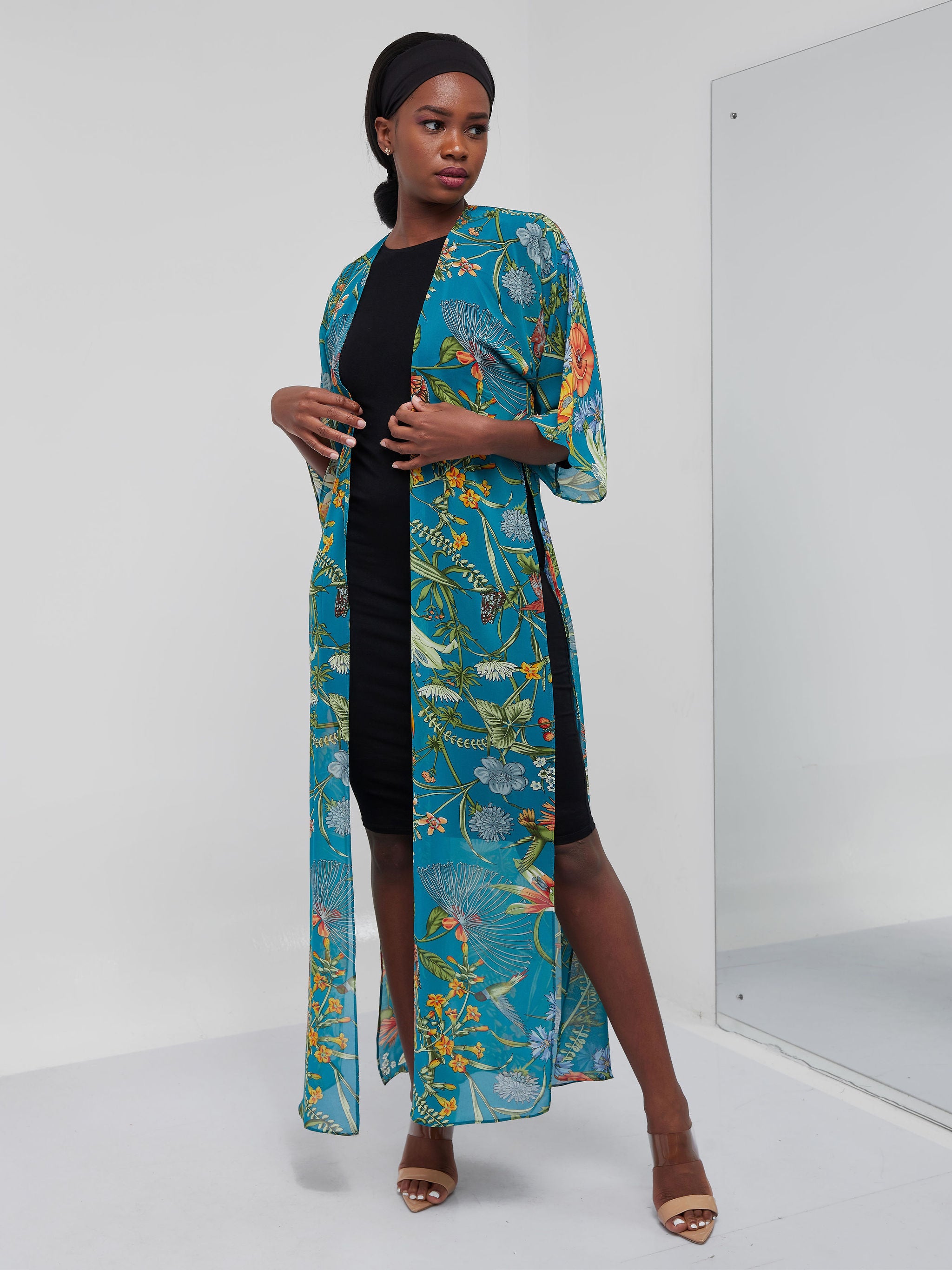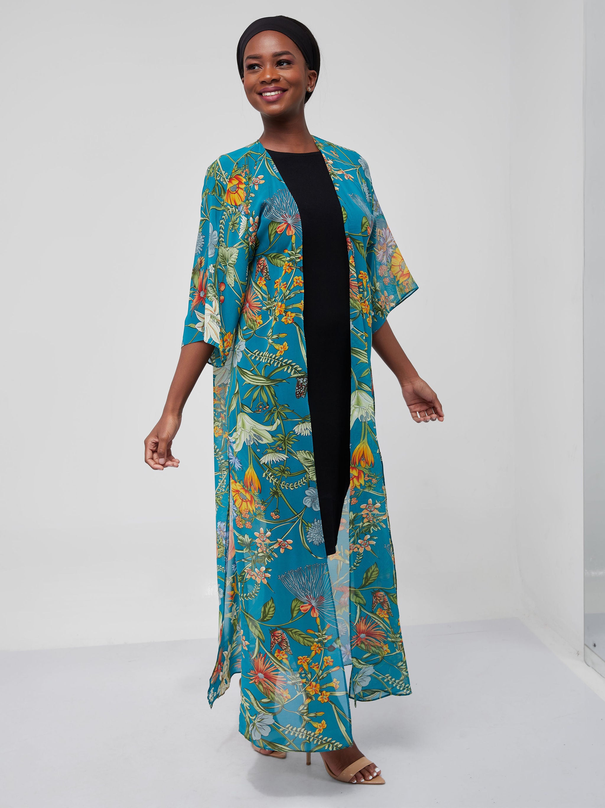 Vivo Basic Nandi High Slit Kimono - Sea Green Floral Print