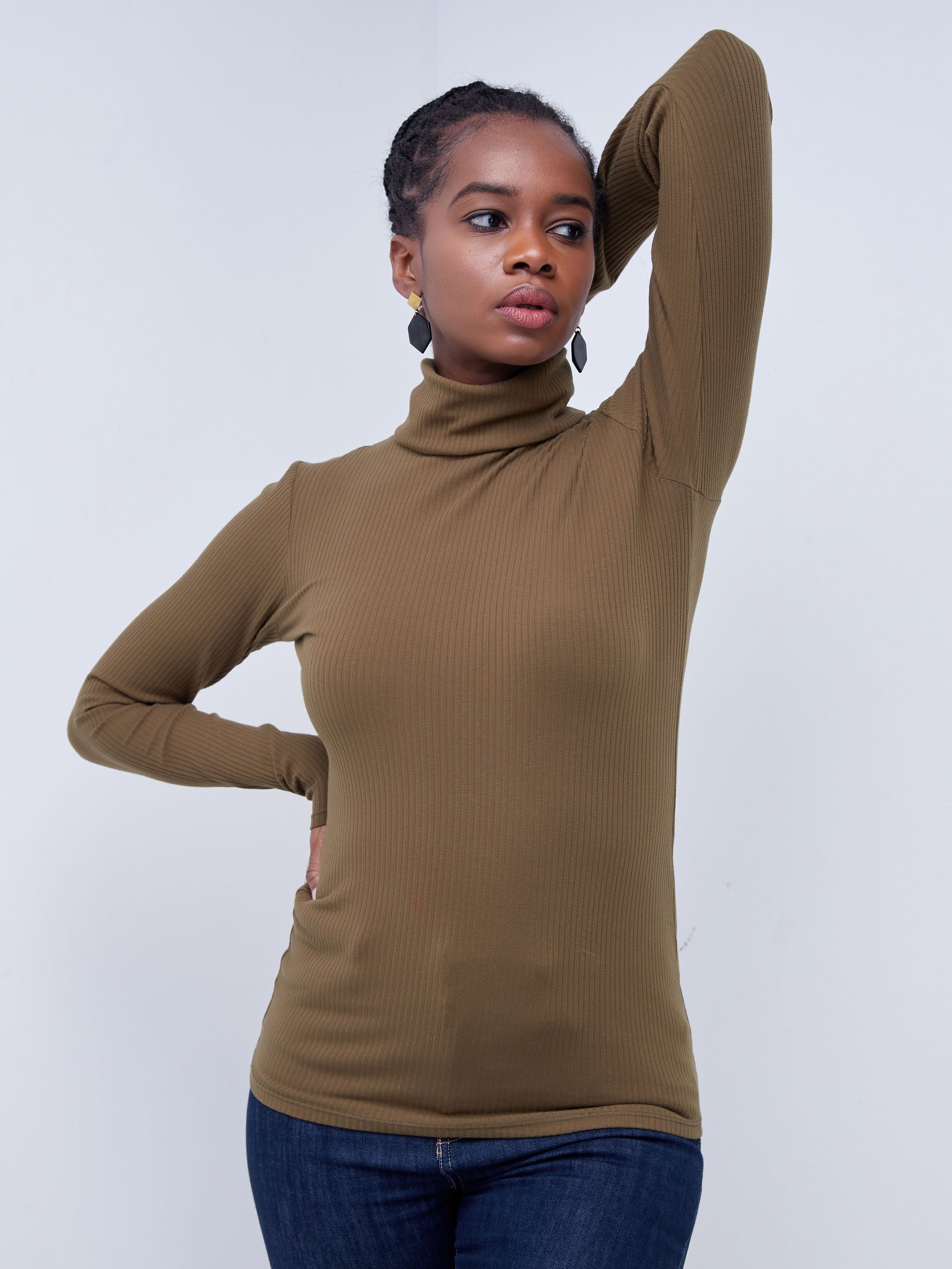 Vivo Basic Ribbed Turtleneck Top - Taupe