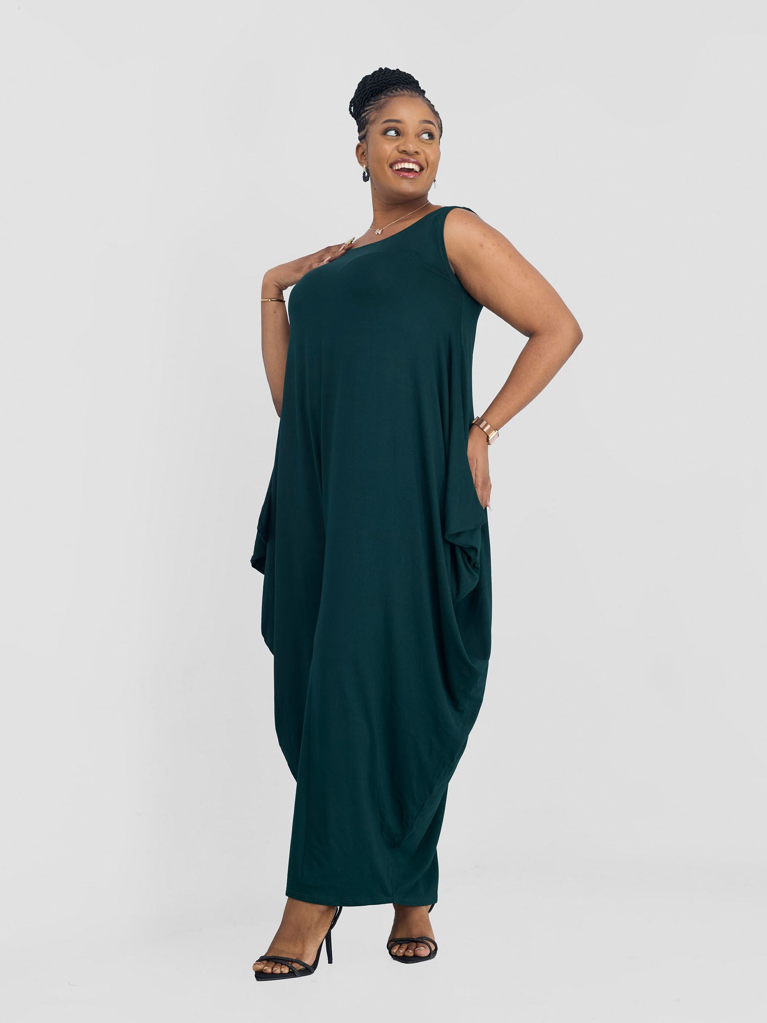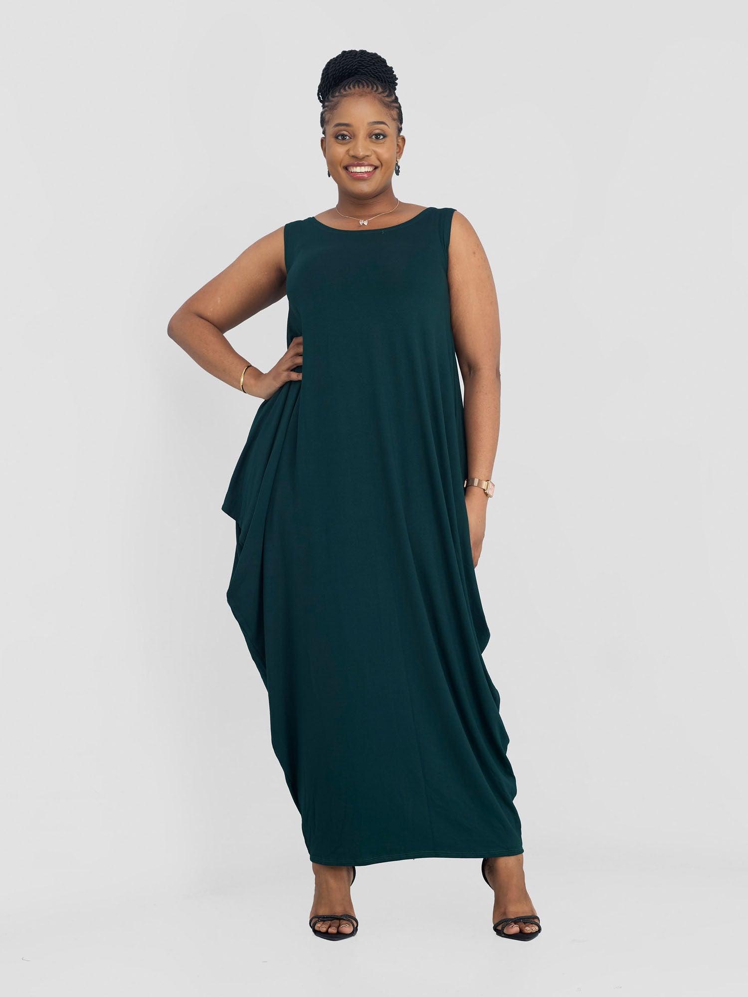 Vivo Basic Salma Maxi Boat Neck Dress - Dark Green