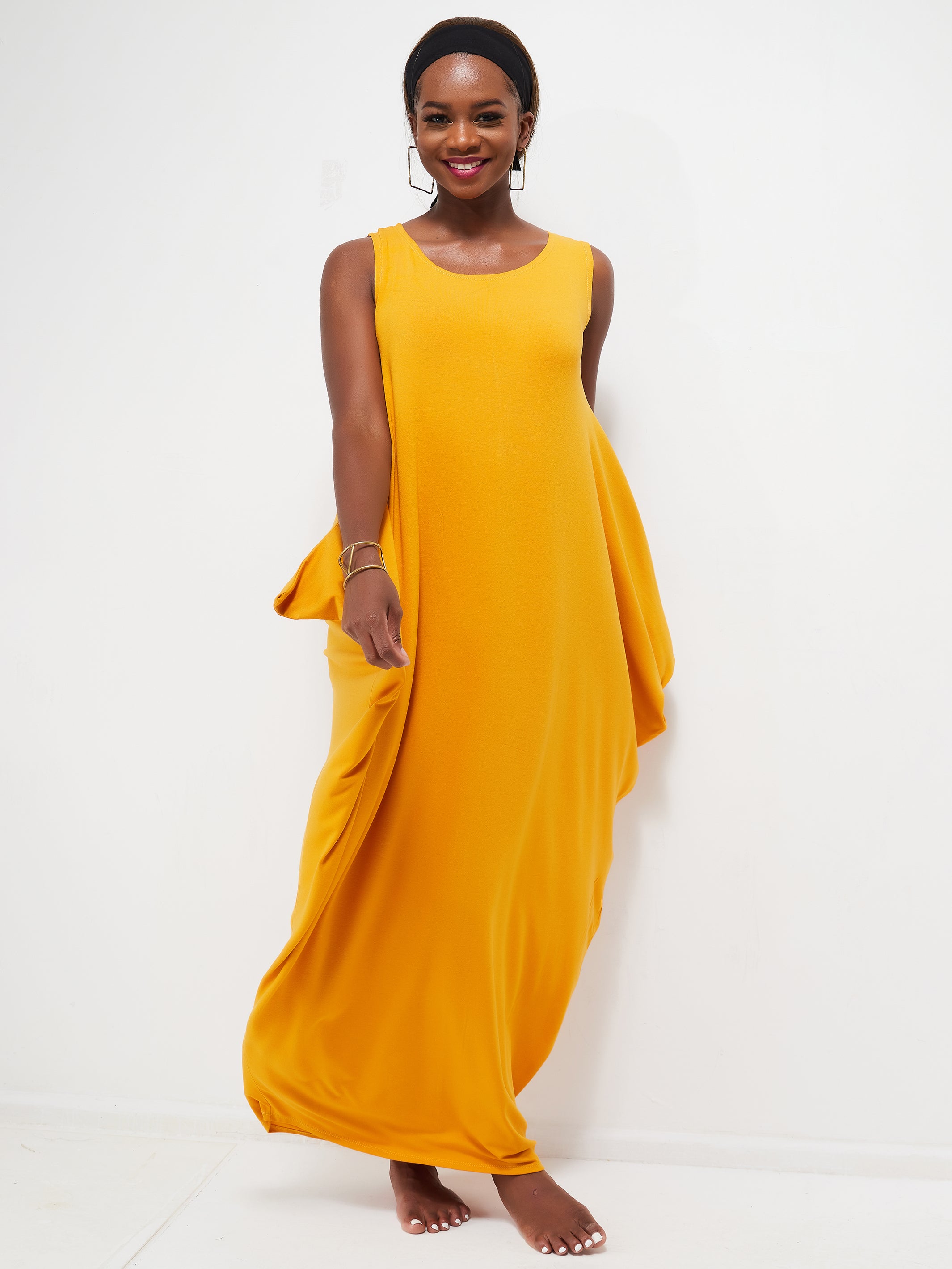 Vivo Basic Salma Maxi Boat Neck Dress - Mustard