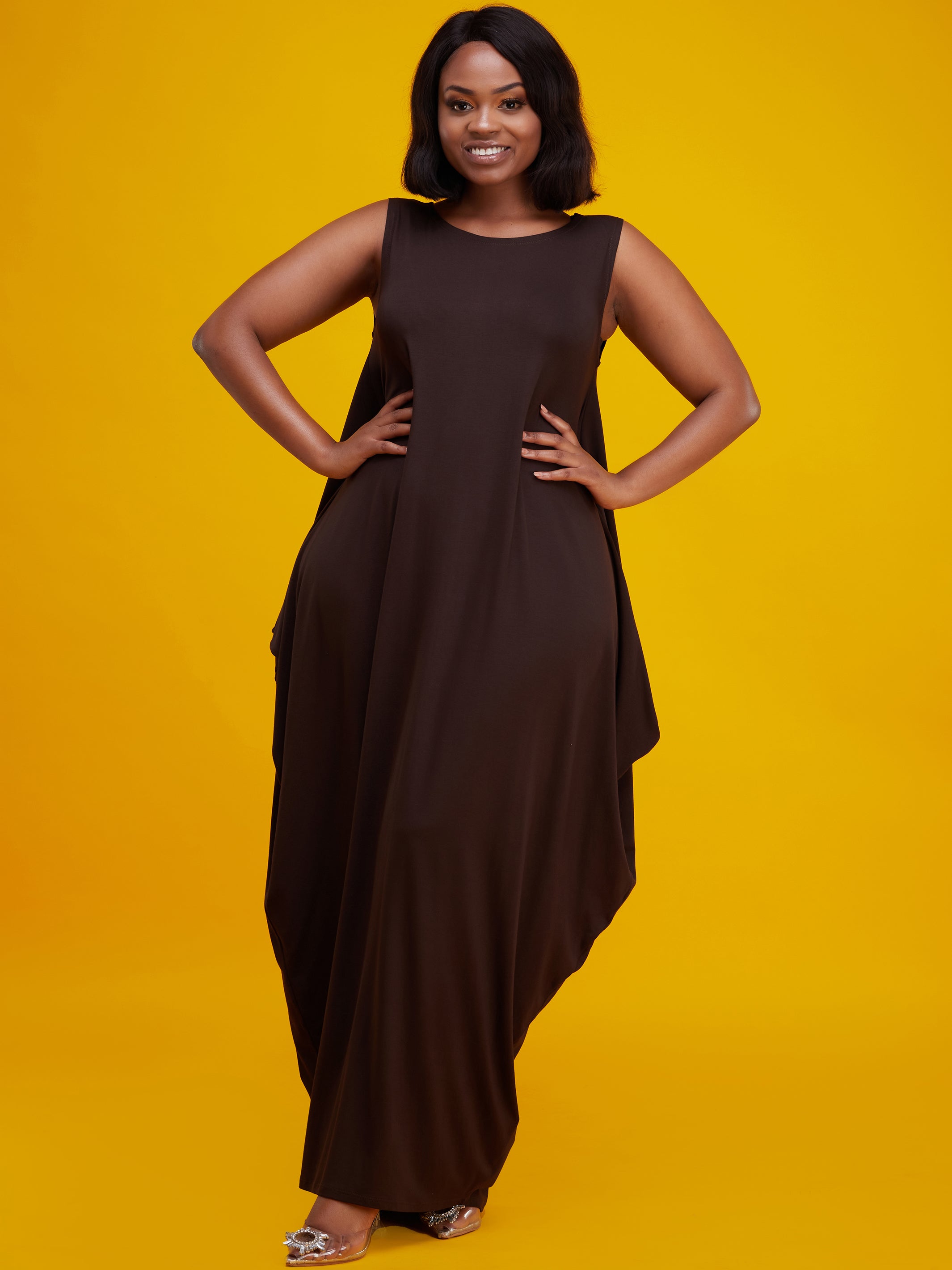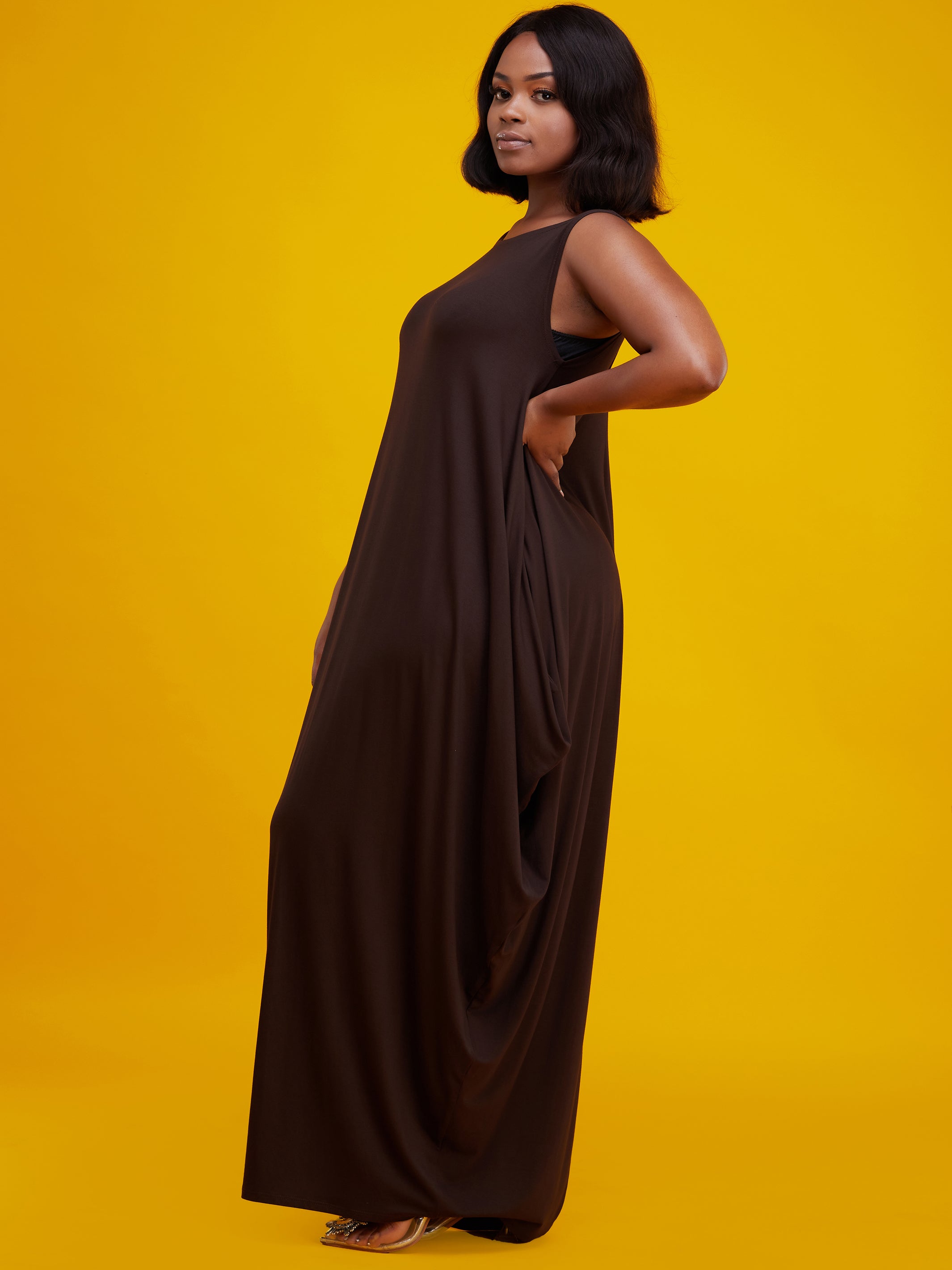 Vivo Basic Salma Maxi Boat Neck Dress - Chocolate