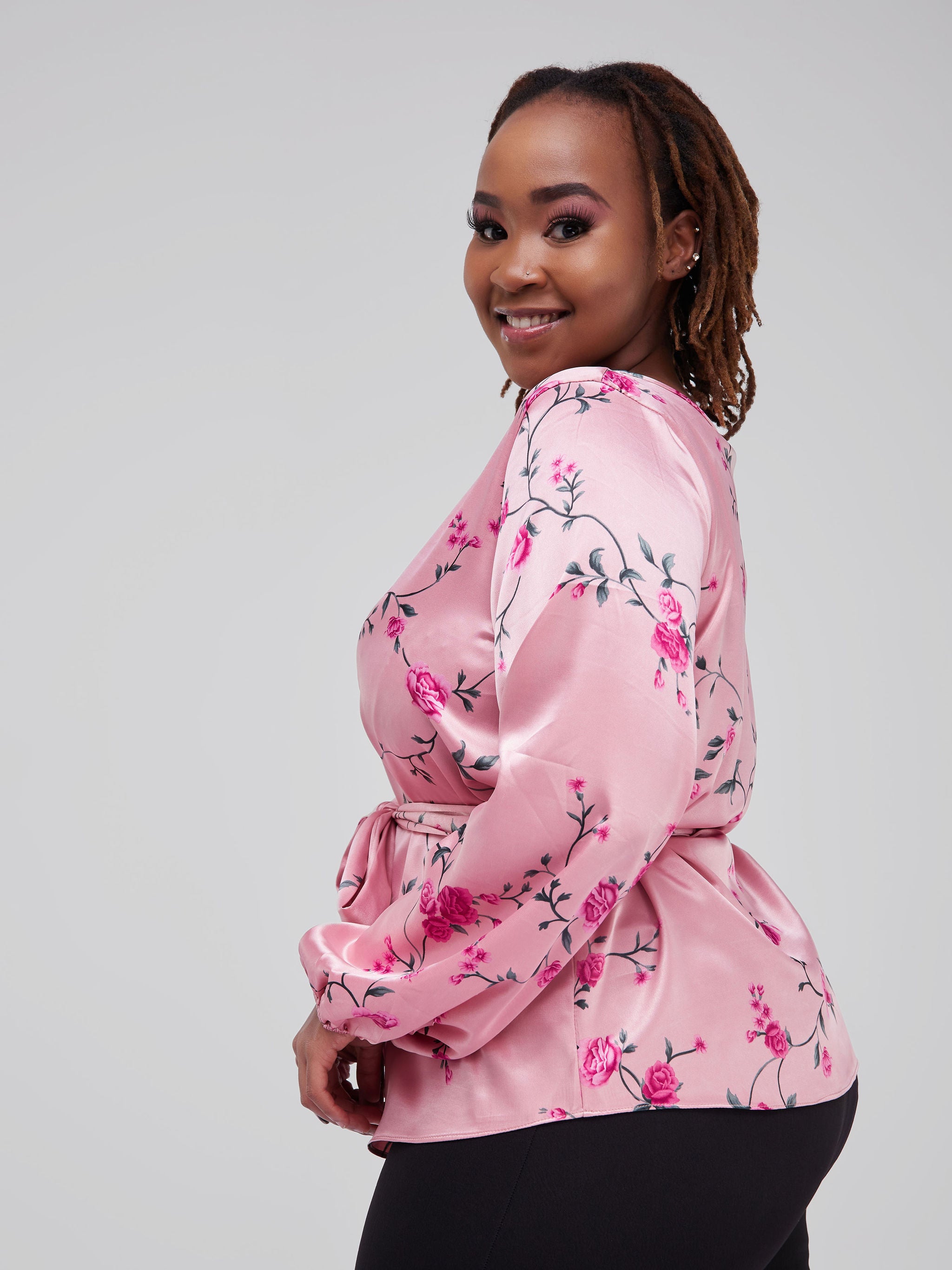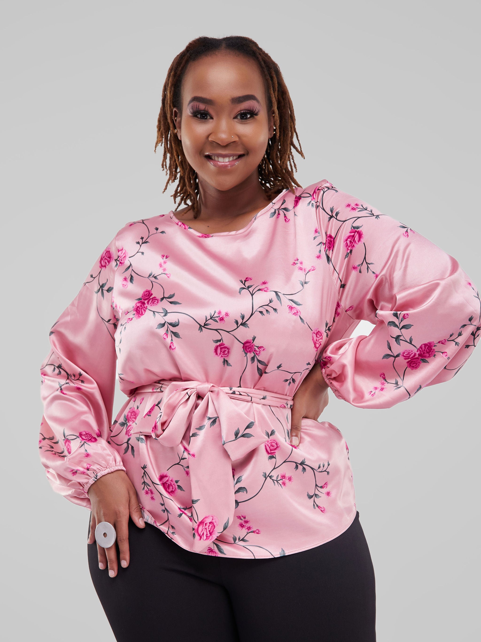 Vivo Basic Satin Bishop Sleeved Top - Pink Floral Print