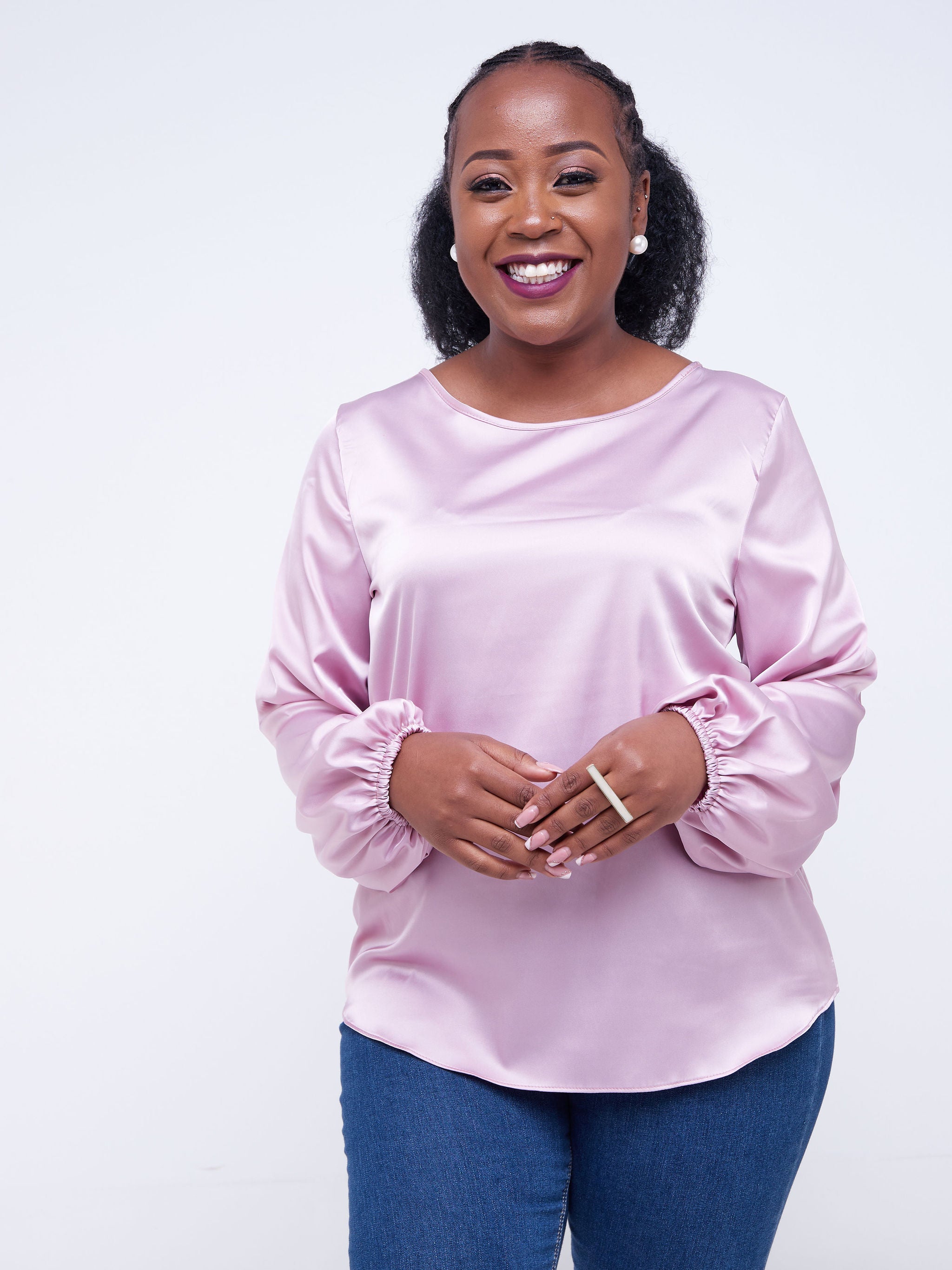 Vivo Basic Satin Bishop Sleeved Top - Purple