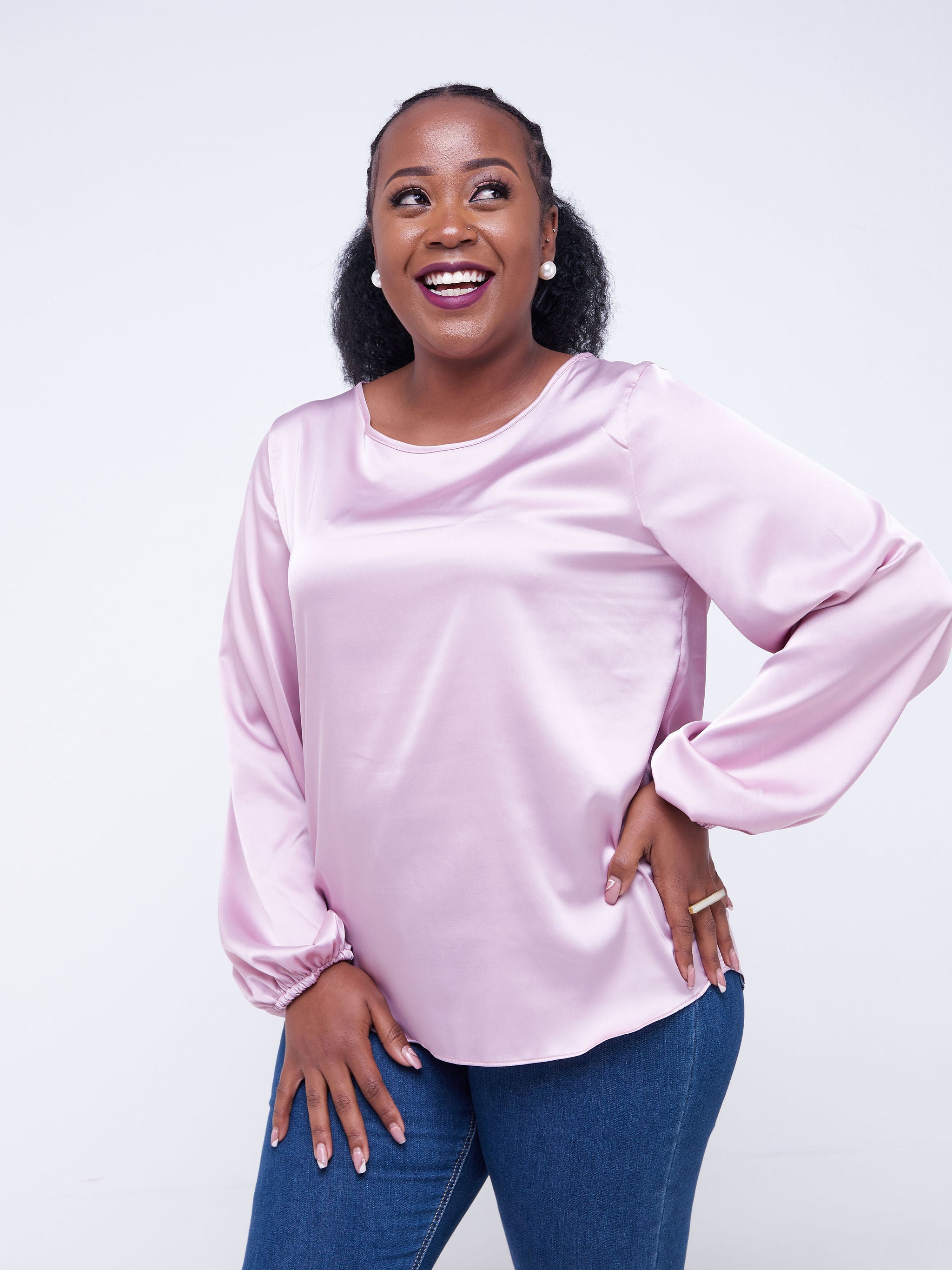 Vivo Basic Satin Bishop Sleeved Top - Peach