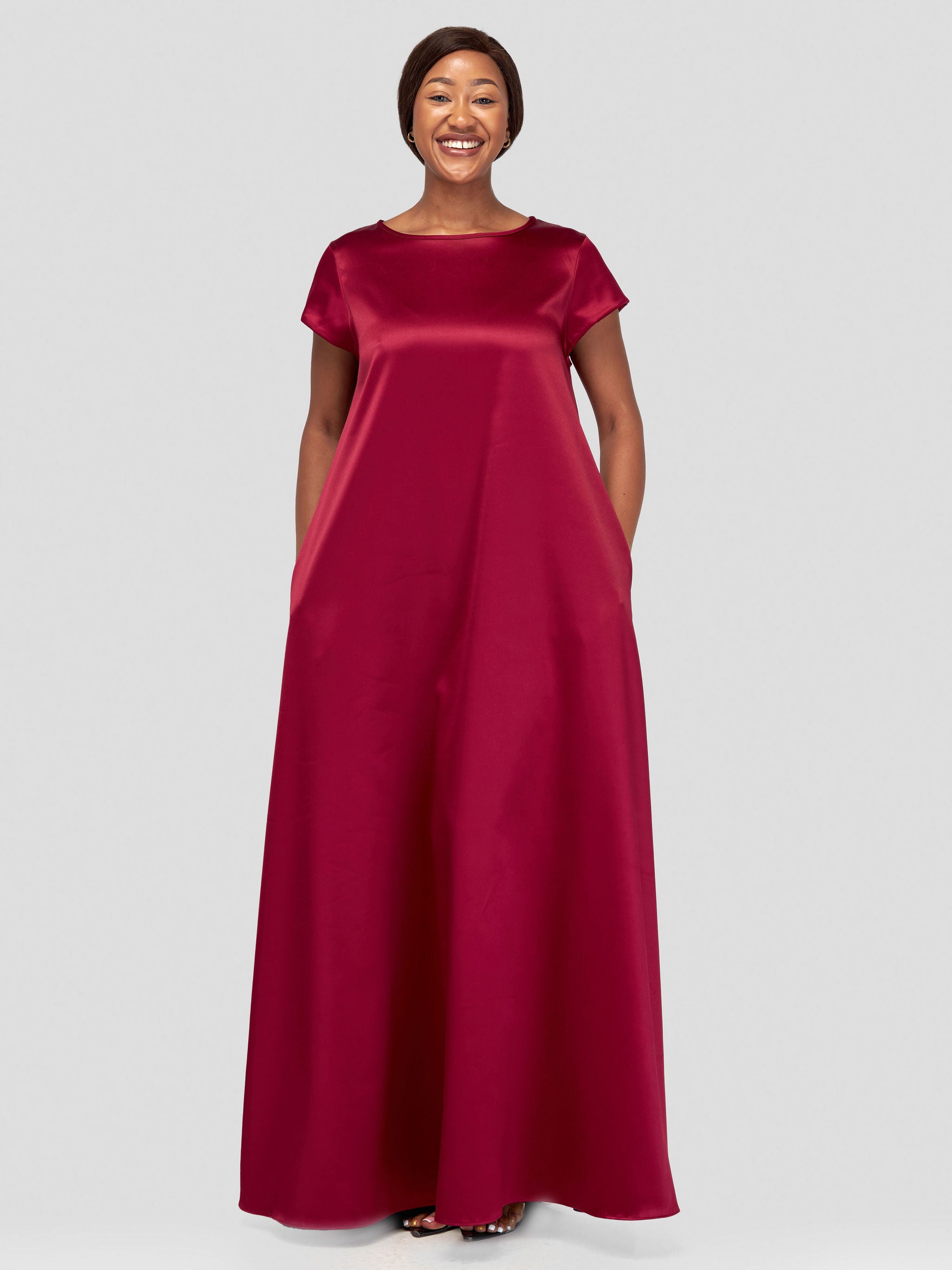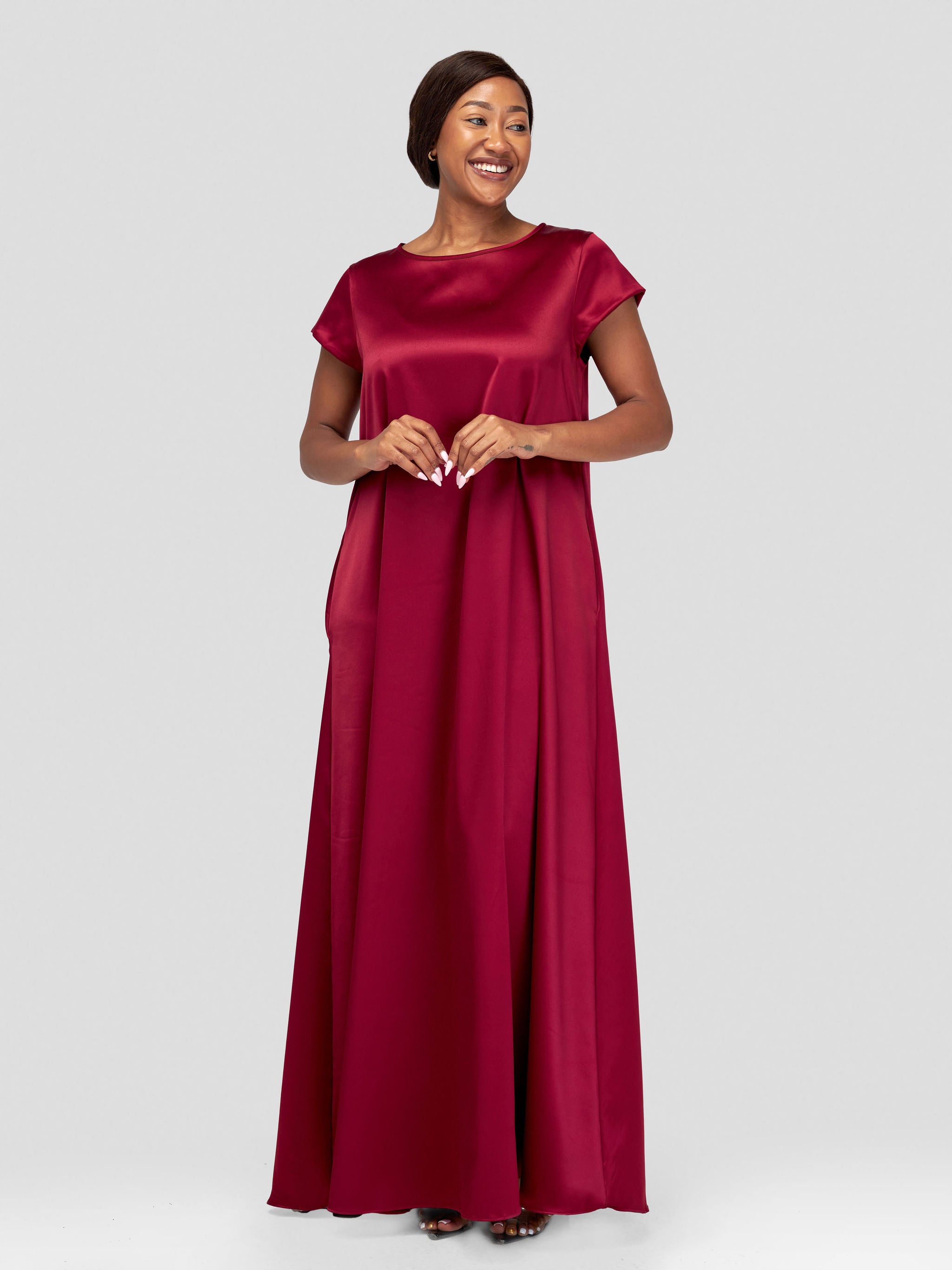 Vivo Basic Satin Cap Sleeve Tent Maxi Dress - Pink / Black Abstract Print