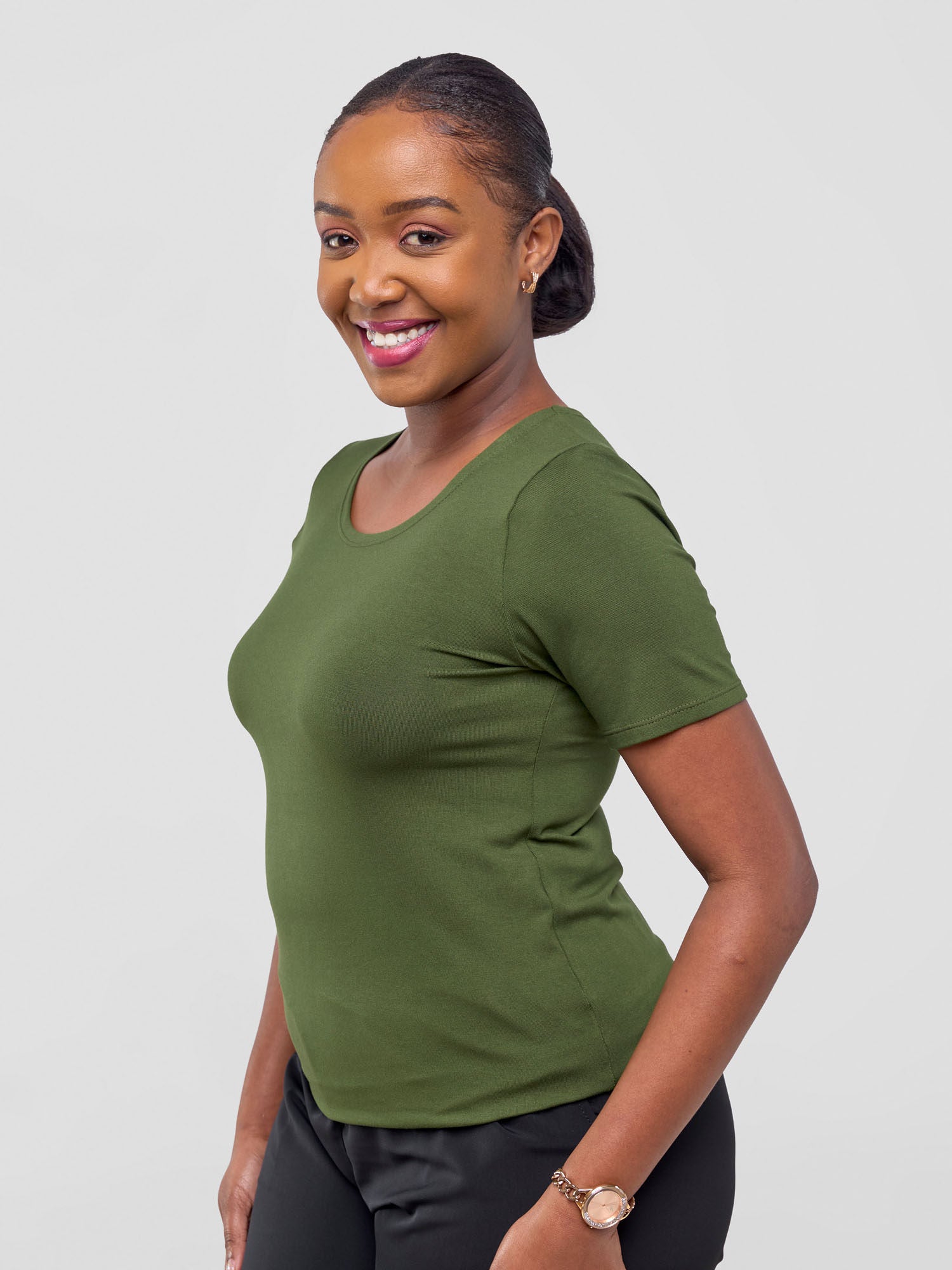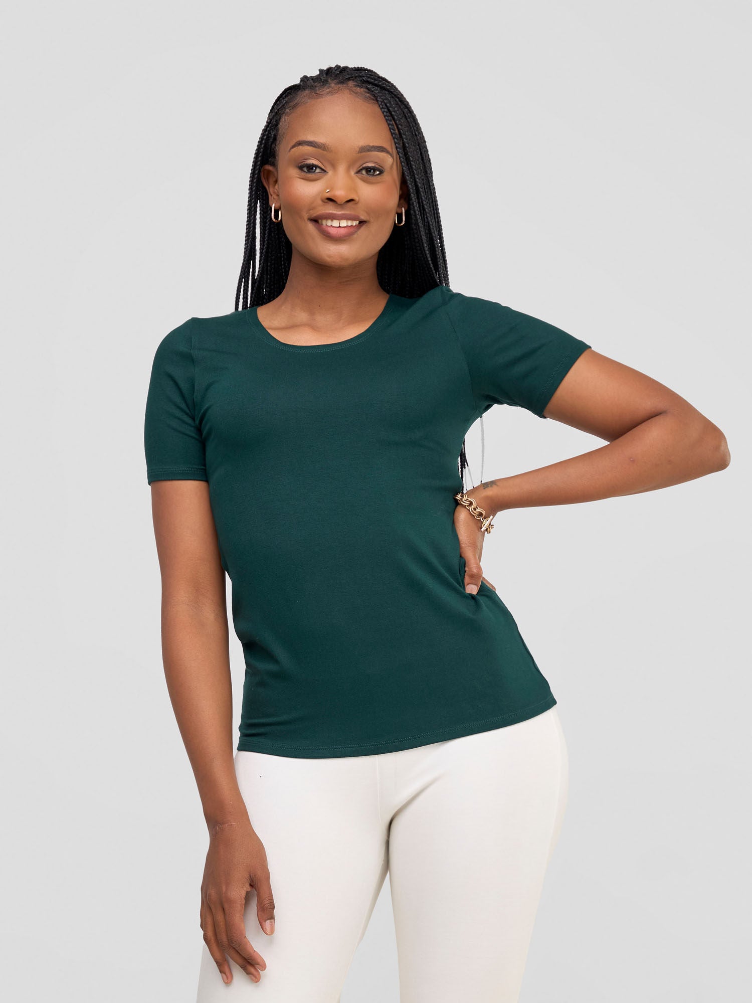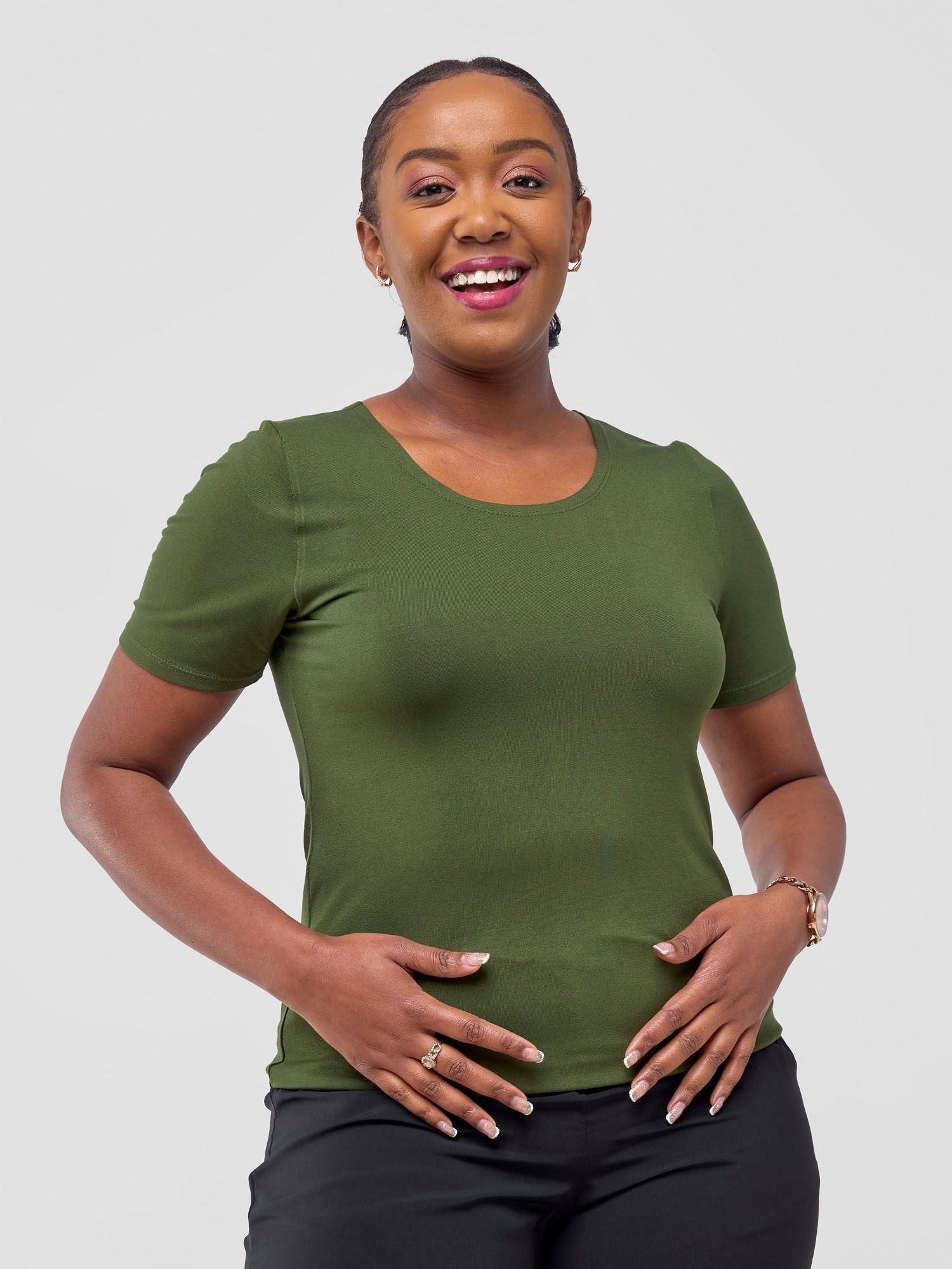 Vivo Basic Short Sleeve Top - Dark Green
