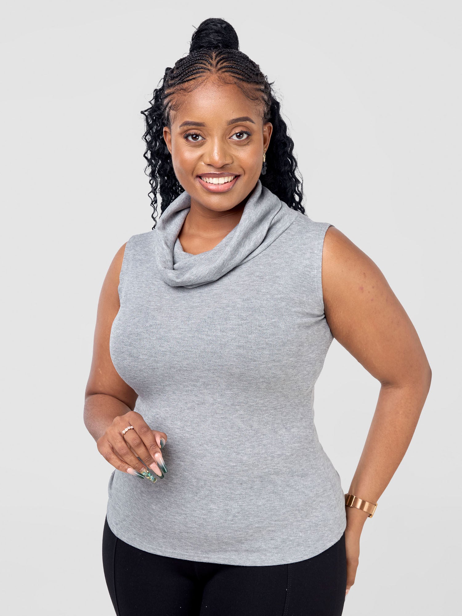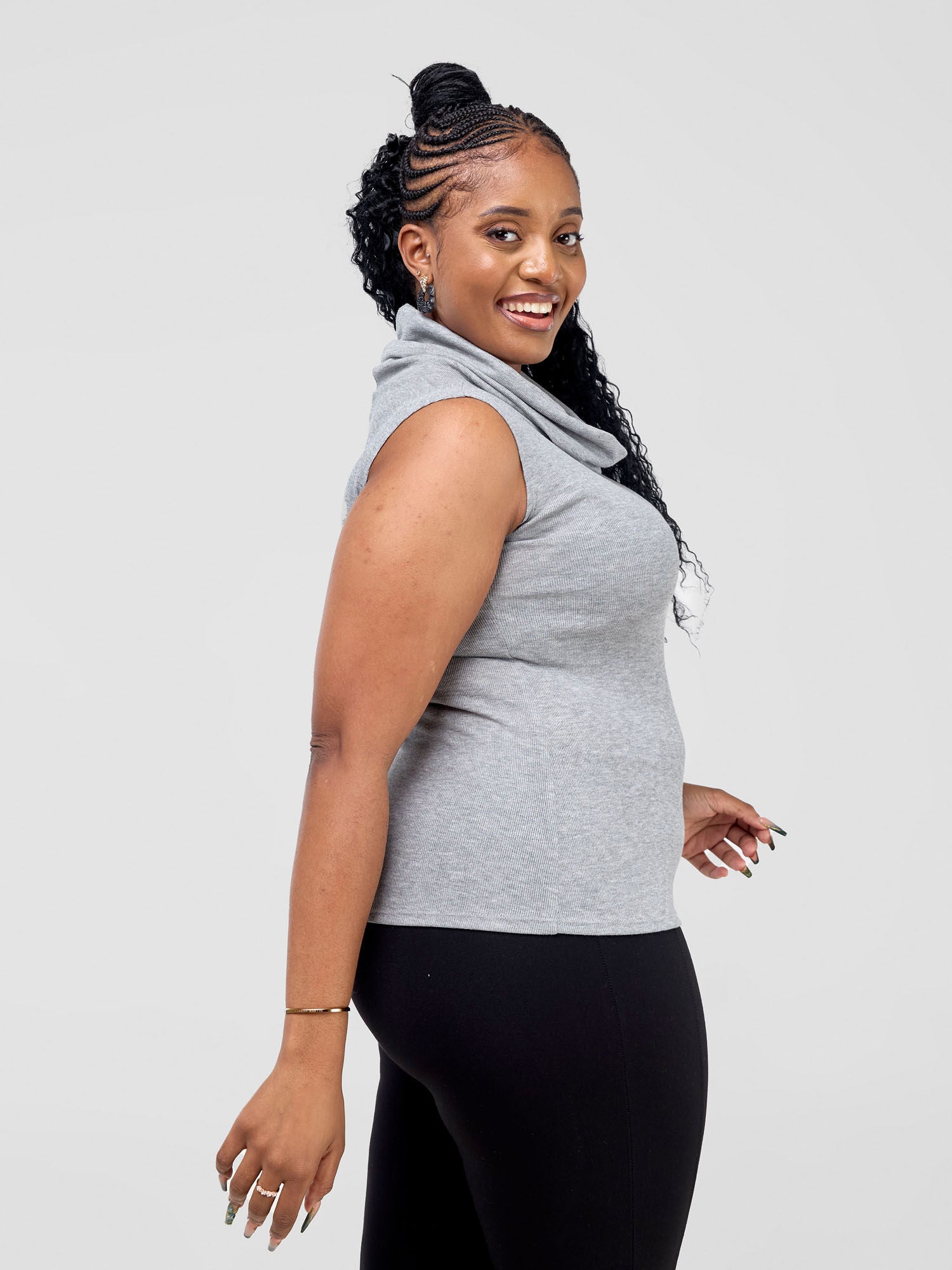Vivo Basic Sleeveless Cowl Sweater Top - Grey