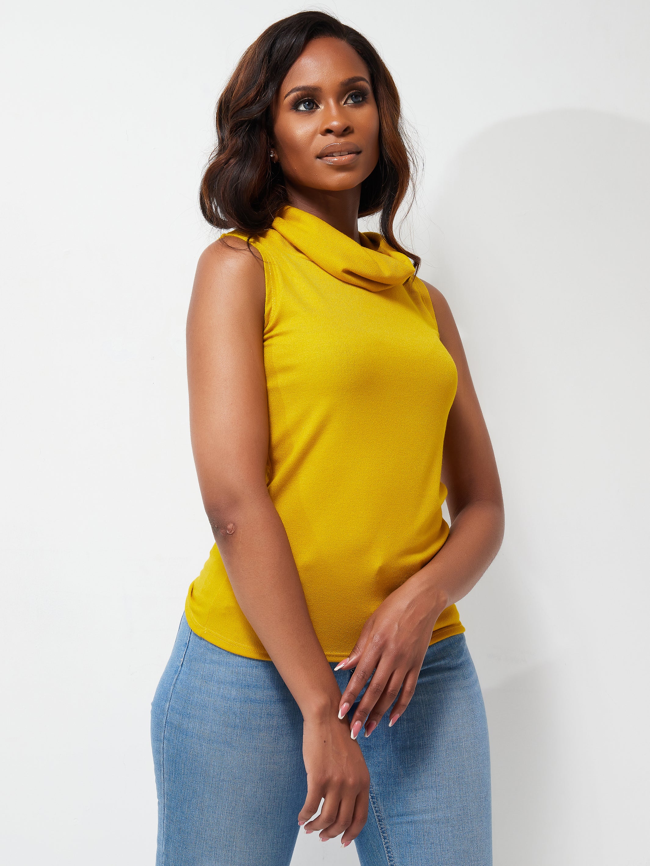 Vivo Basic Sleeveless Cowl Sweater Top - Mustard