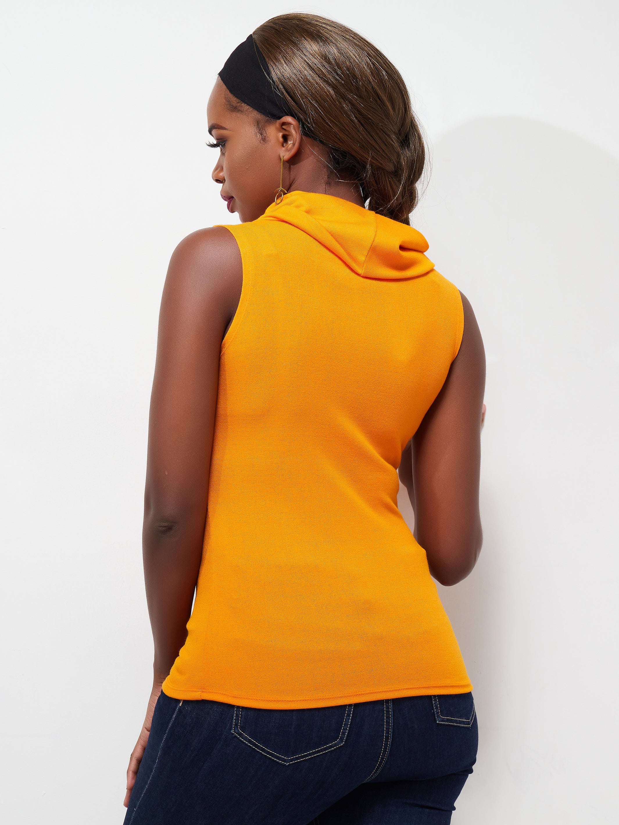 Vivo Basic Sleeveless Cowl Sweater Top - Orange