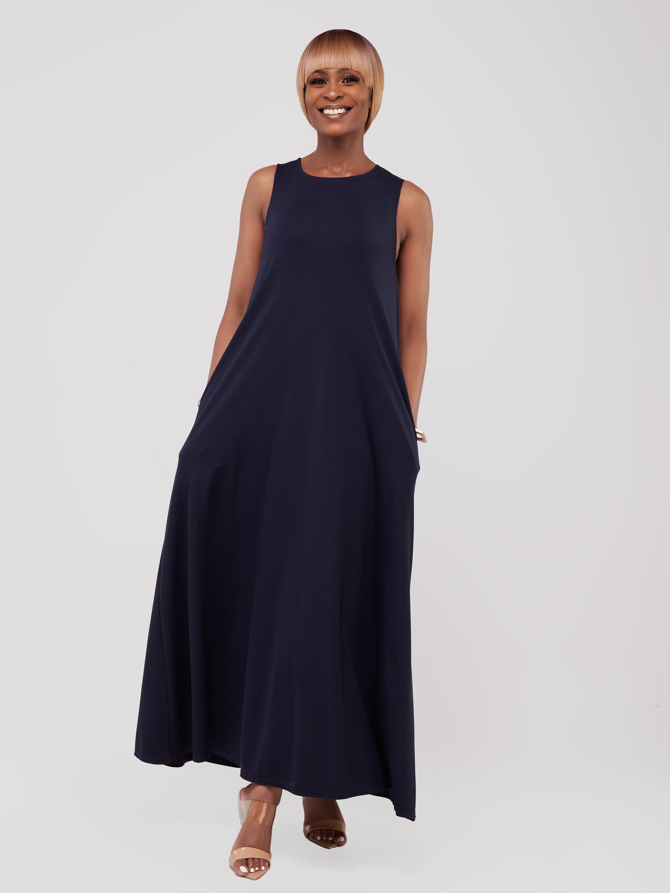 Vivo Basic Sleeveless Kena Tent Maxi Dress - Navy Blue