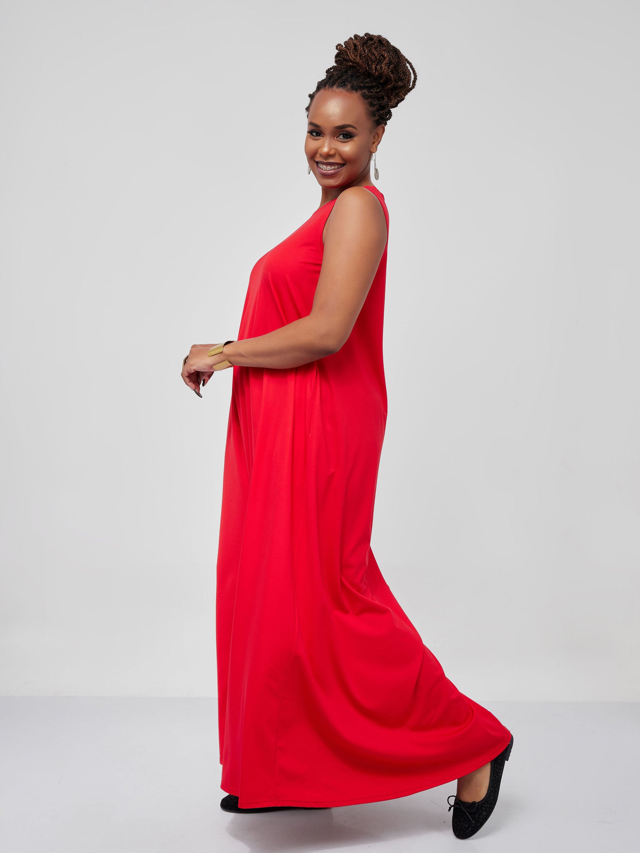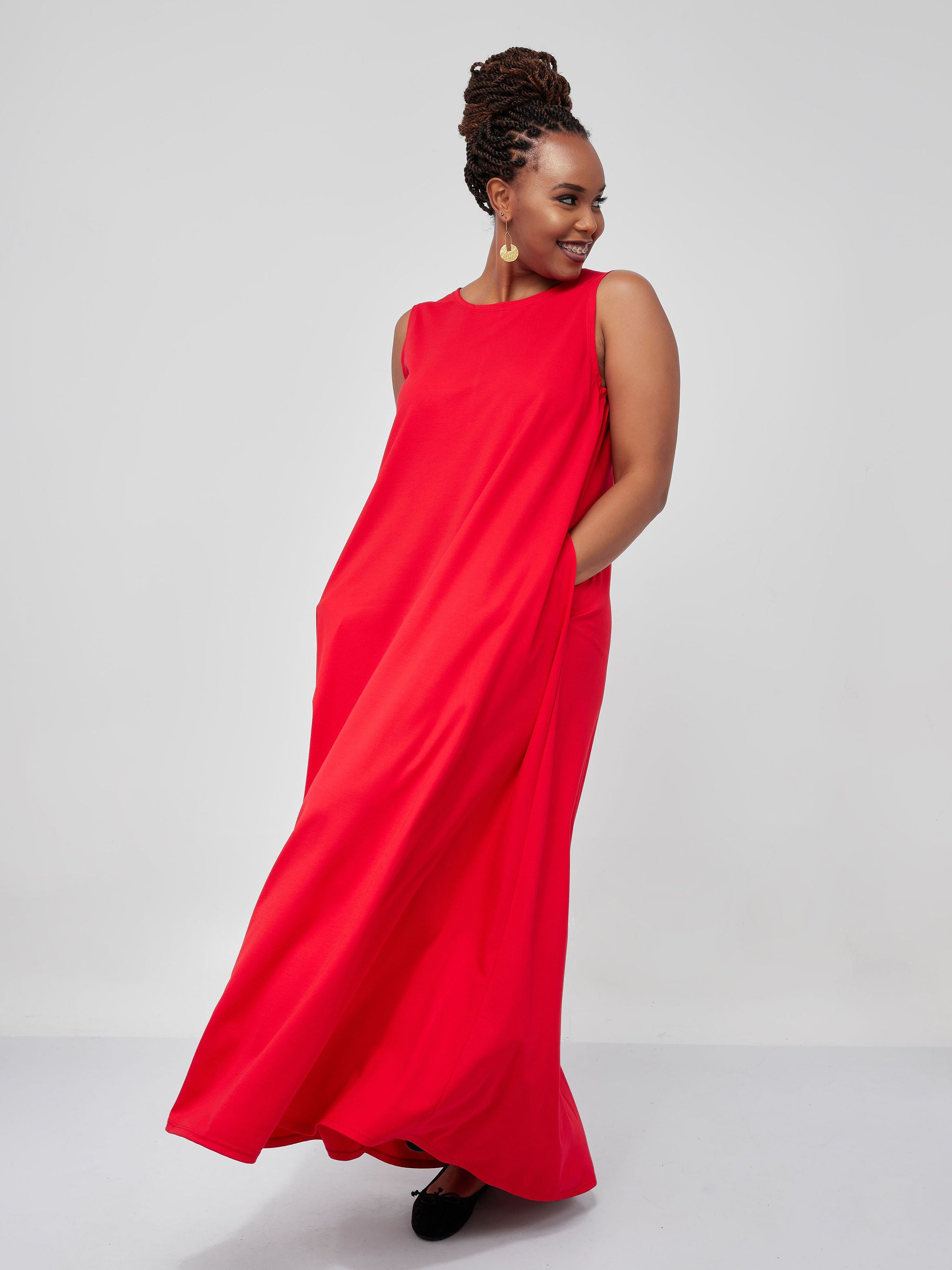 Vivo Basic Sleeveless Kena Tent Maxi Dress - Red