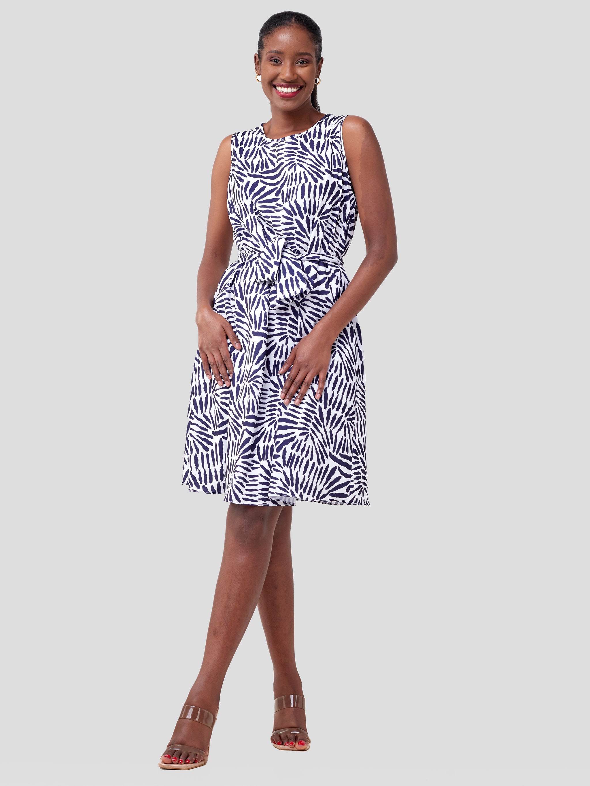 Vivo Basic Sleeveless Tent Dress - Navy Blue / White Cairo Print