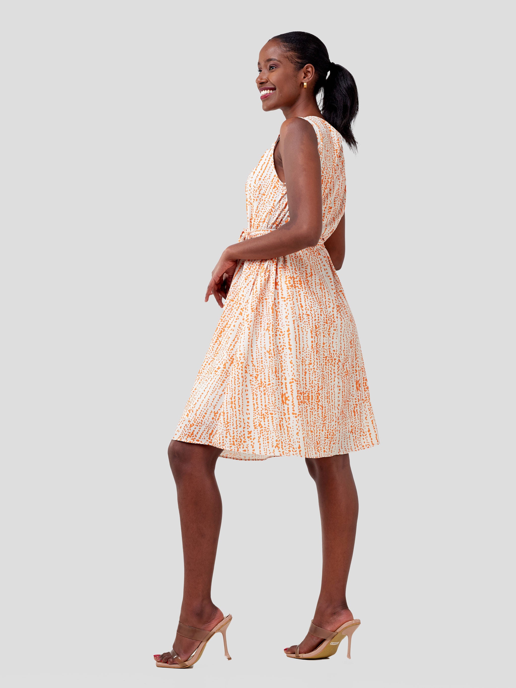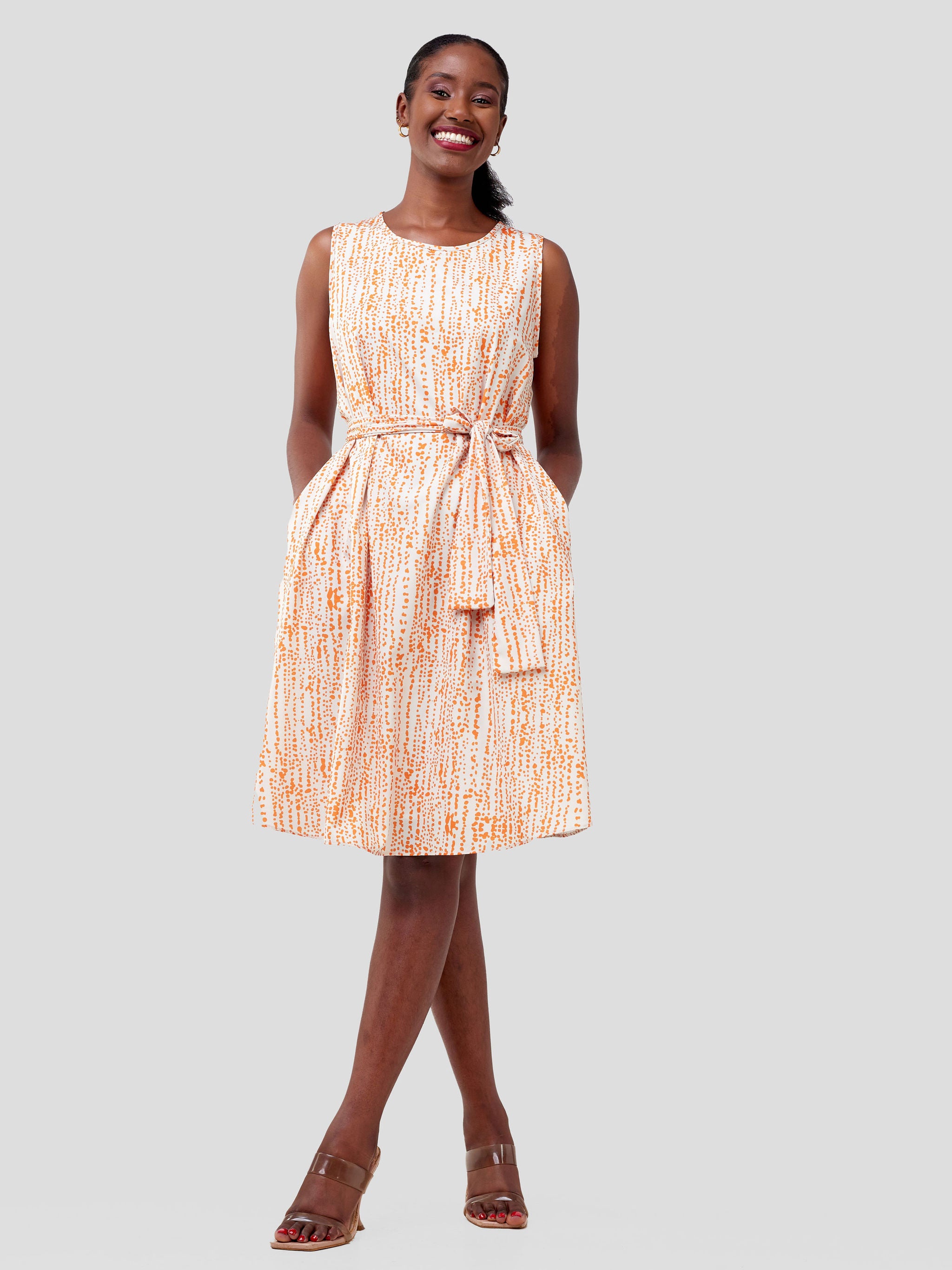 Vivo Basic Sleeveless Tent Dress - Off White / Orange Heri Print
