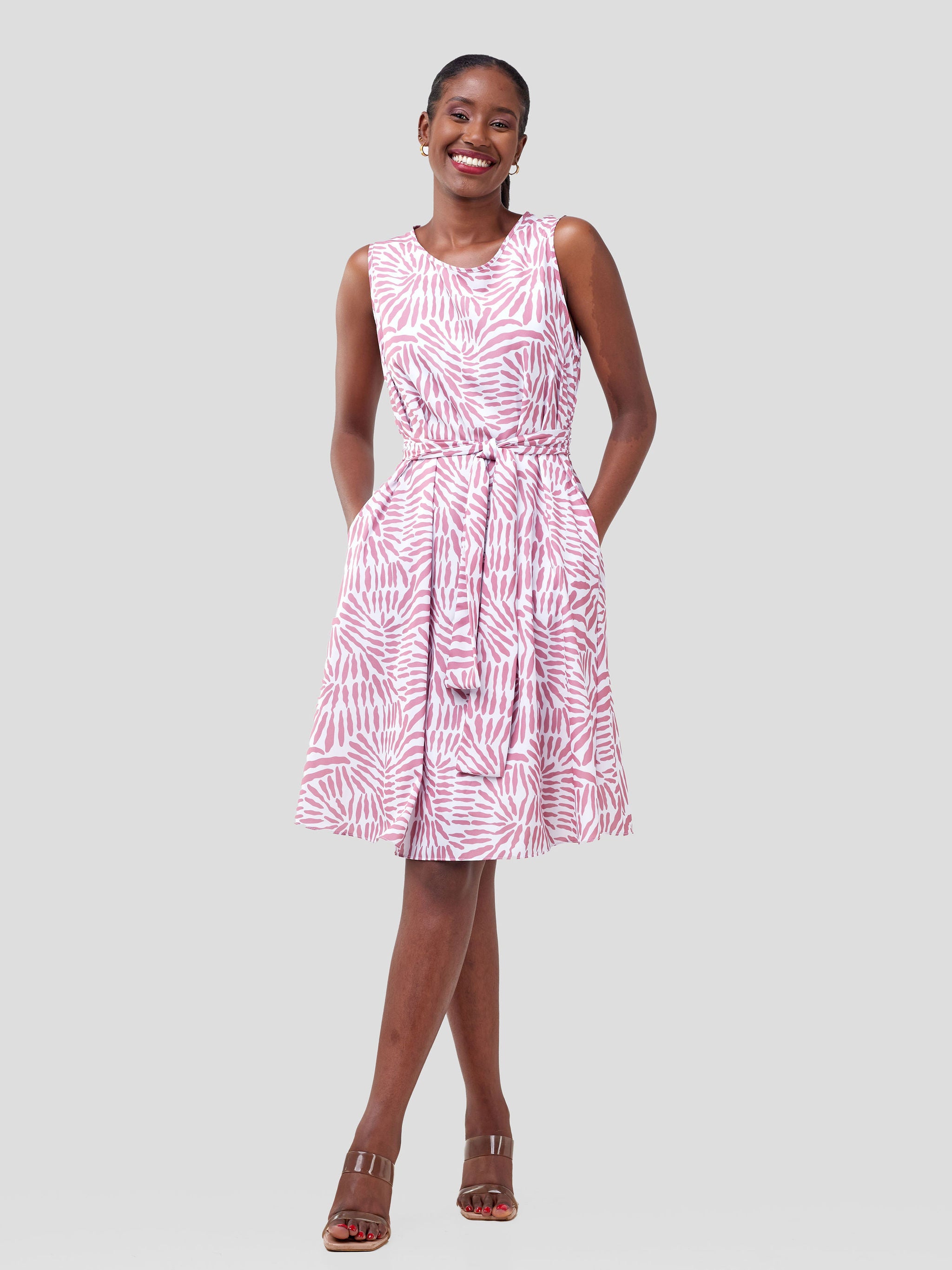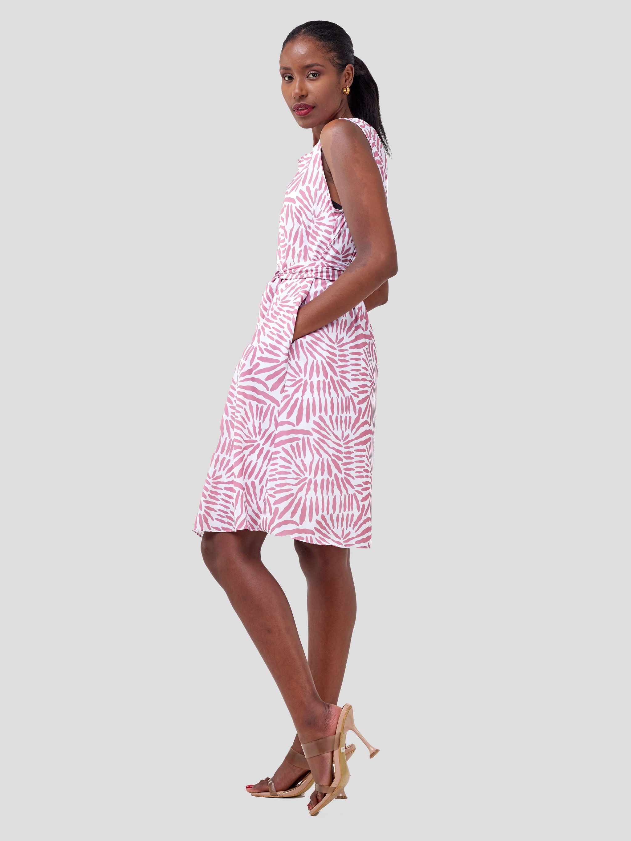 Vivo Basic Sleeveless Tent Dress - Pink / White Cairo Print
