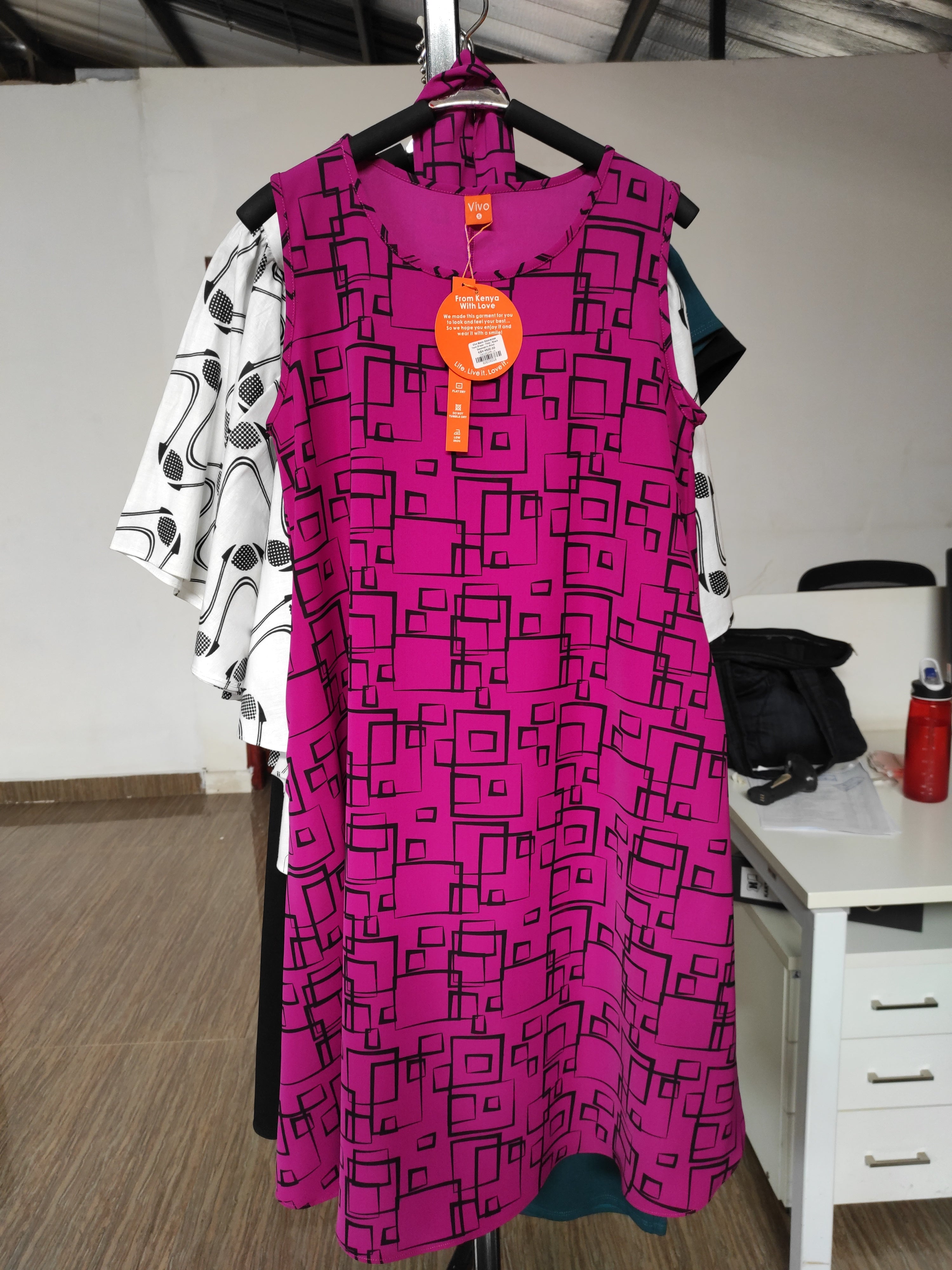 Vivo Basic Sleeveless Tent Dress - Pink / Black Geometric Print