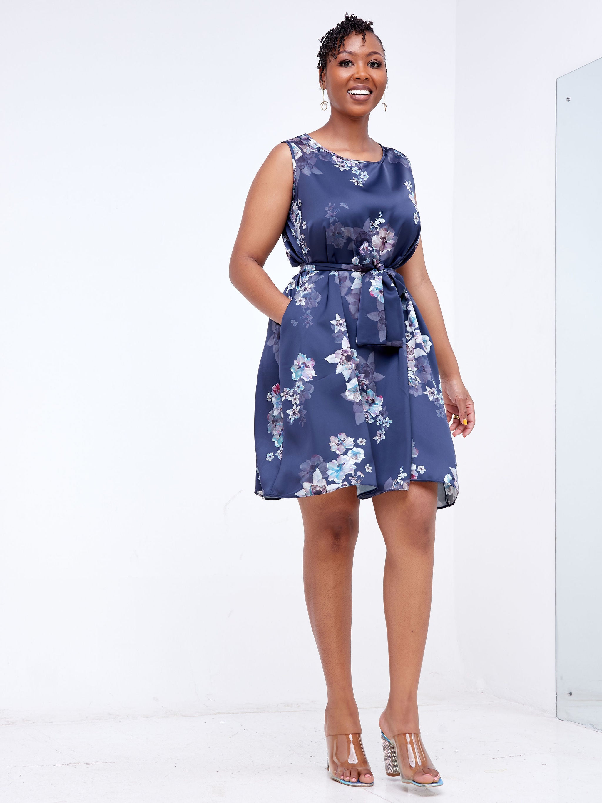 Vivo Basic Sleeveless Tent Dress - Navy Blue Floral