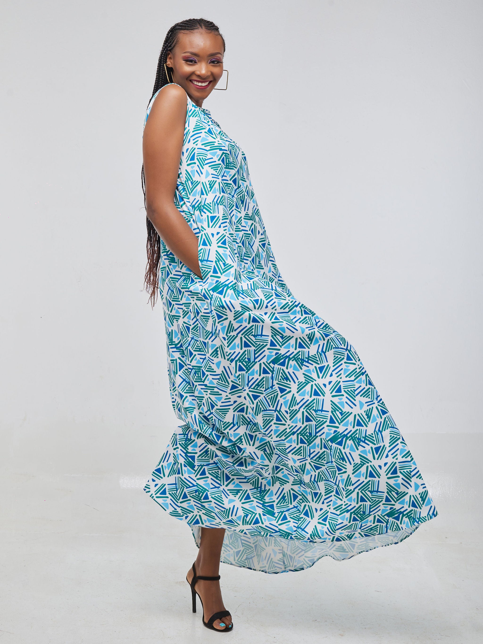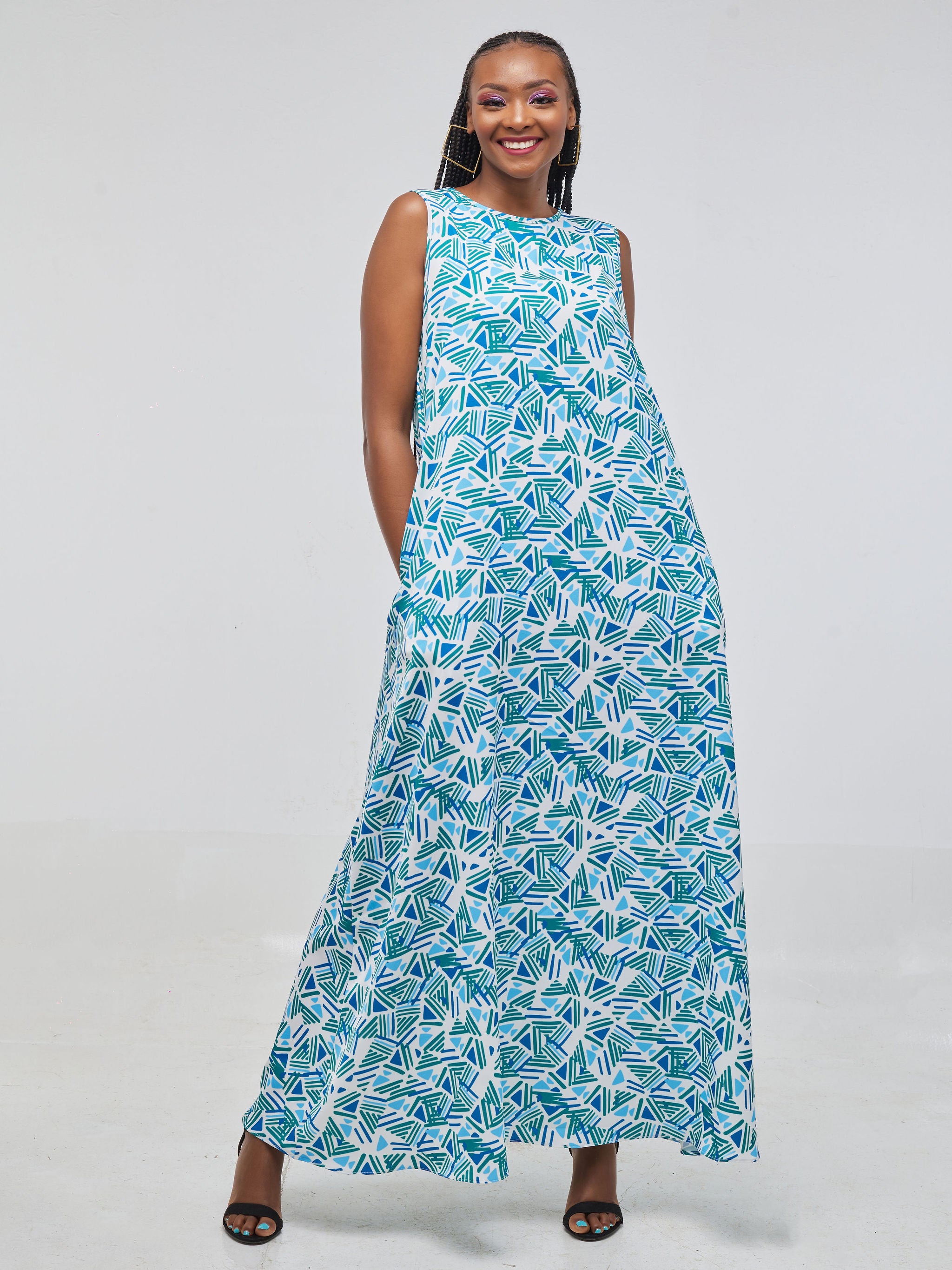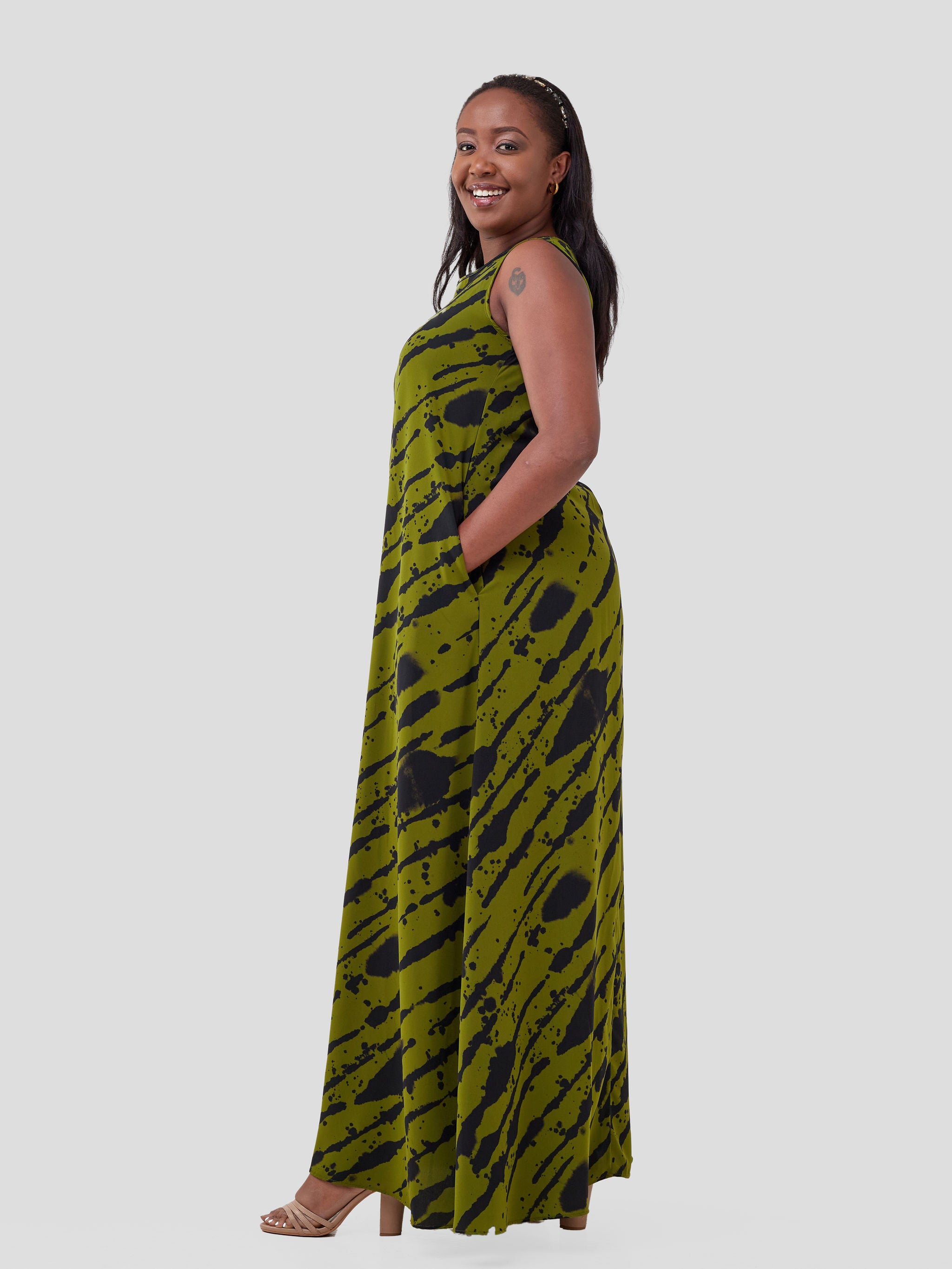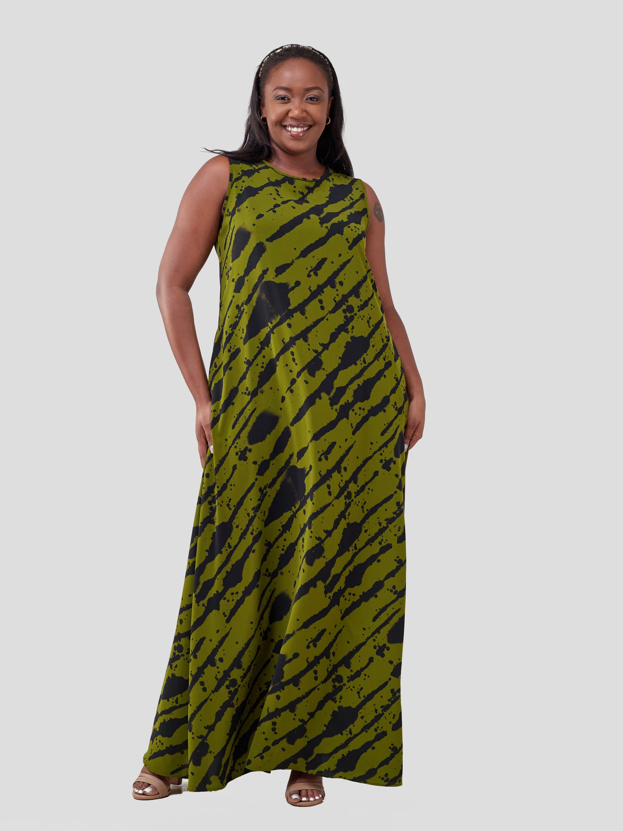 Vivo Basic Sleeveless Tent Maxi Dress - Green Print