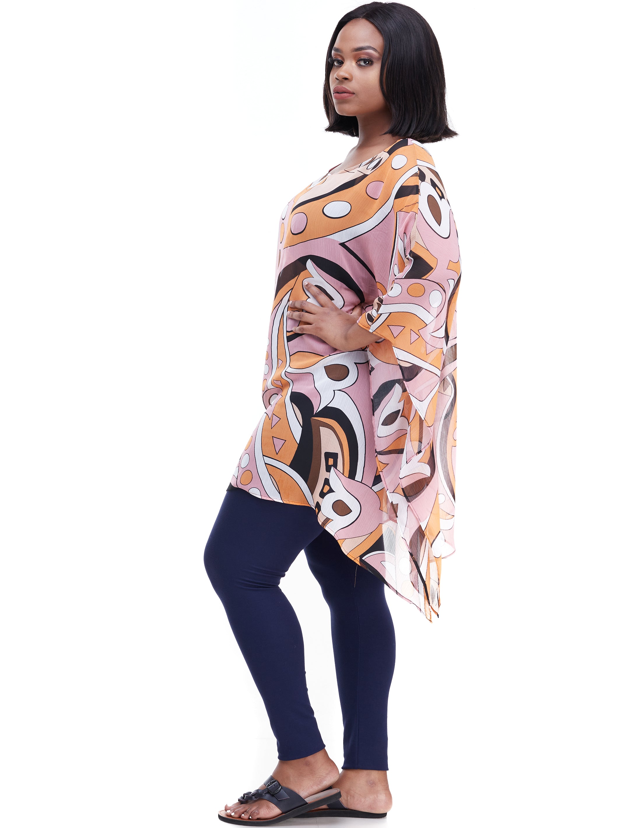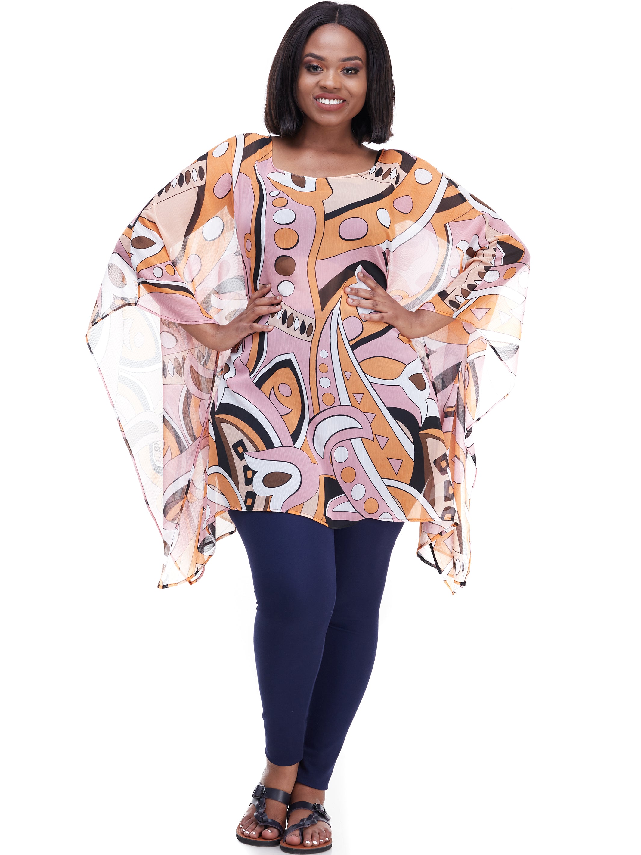 Vivo Basic Tiwi Chiffon Wide Top - Orange Print