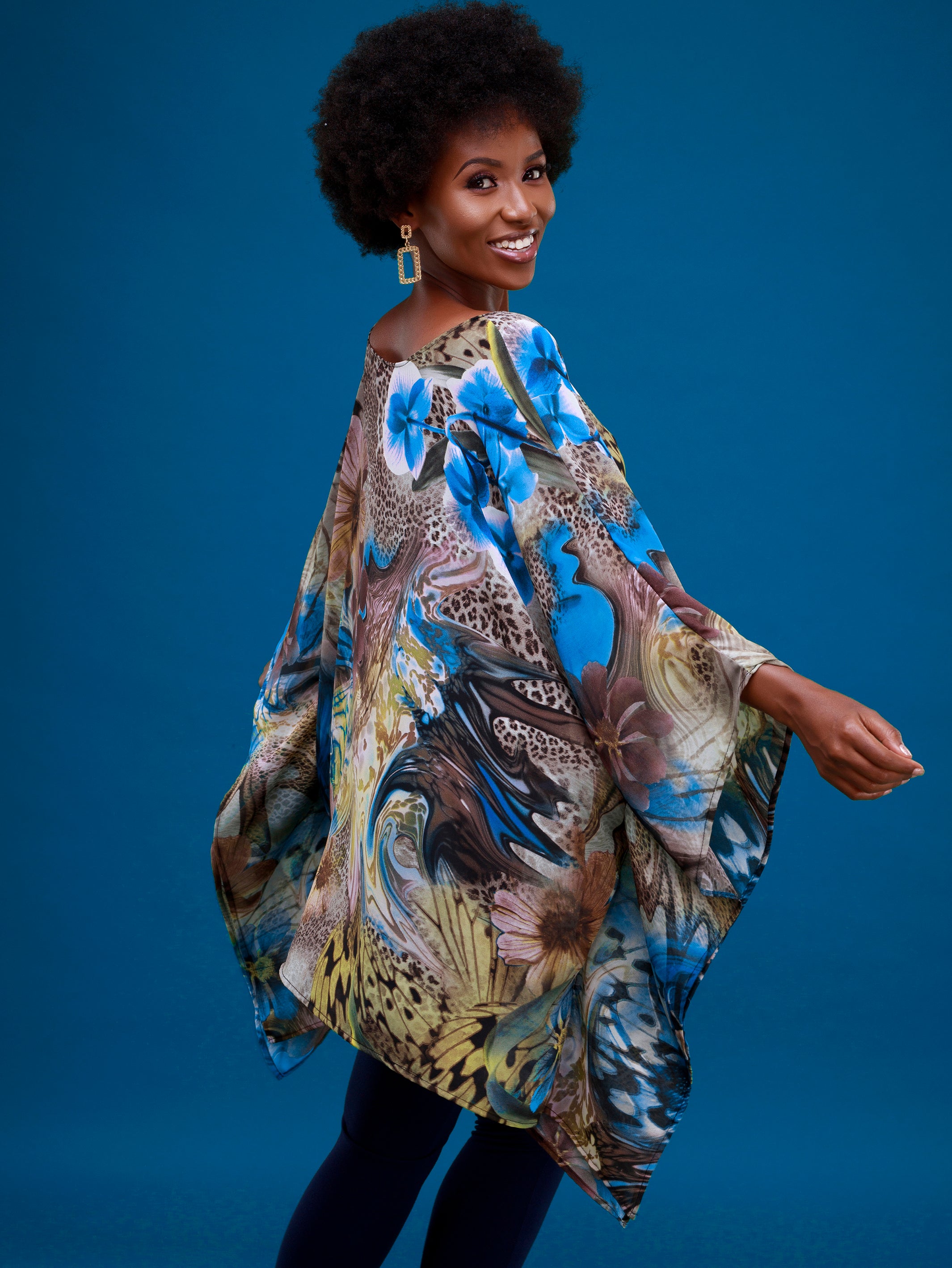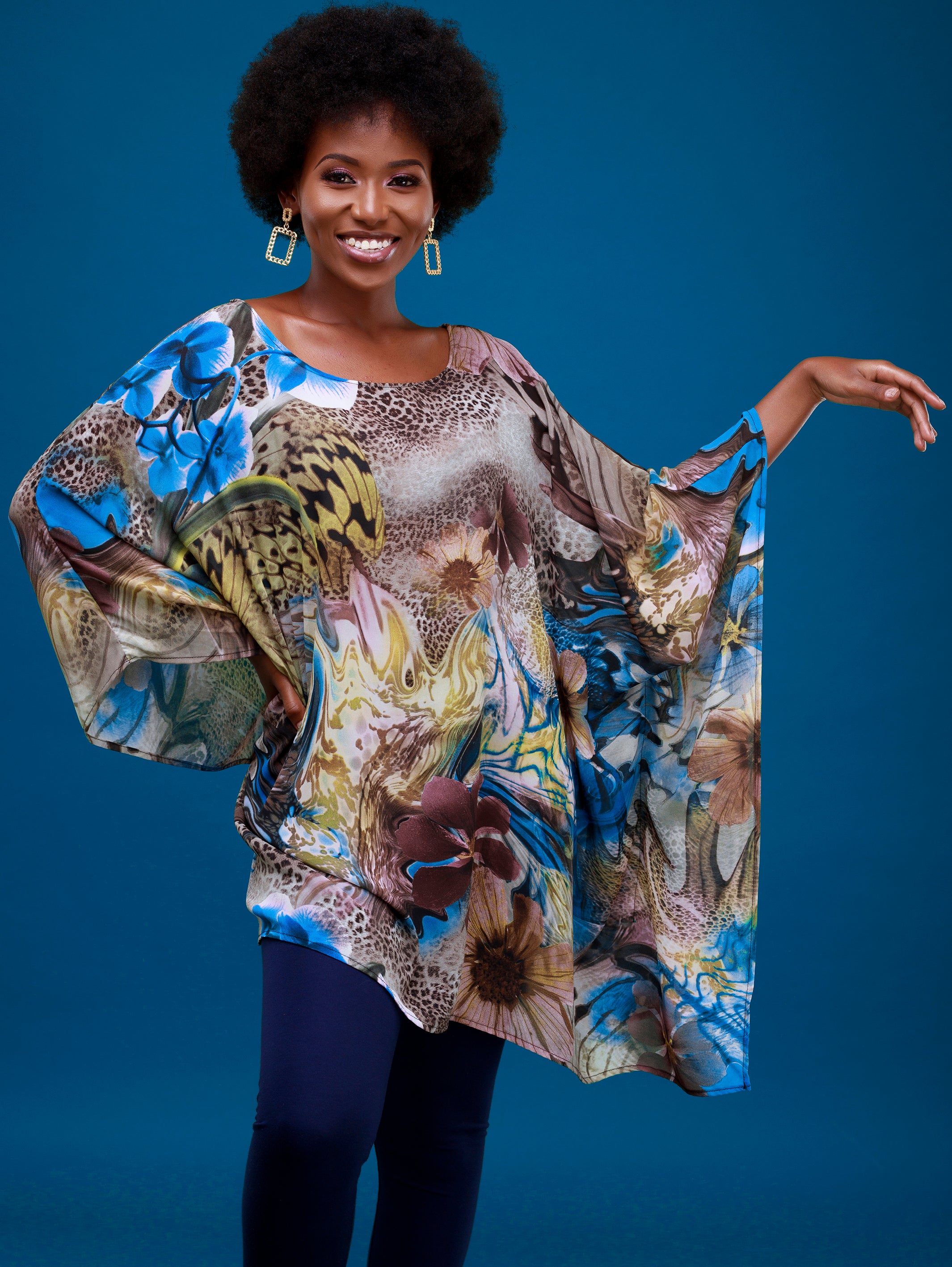 Vivo Basic Tiwi Chiffon Wide Top - Blue Flora Print