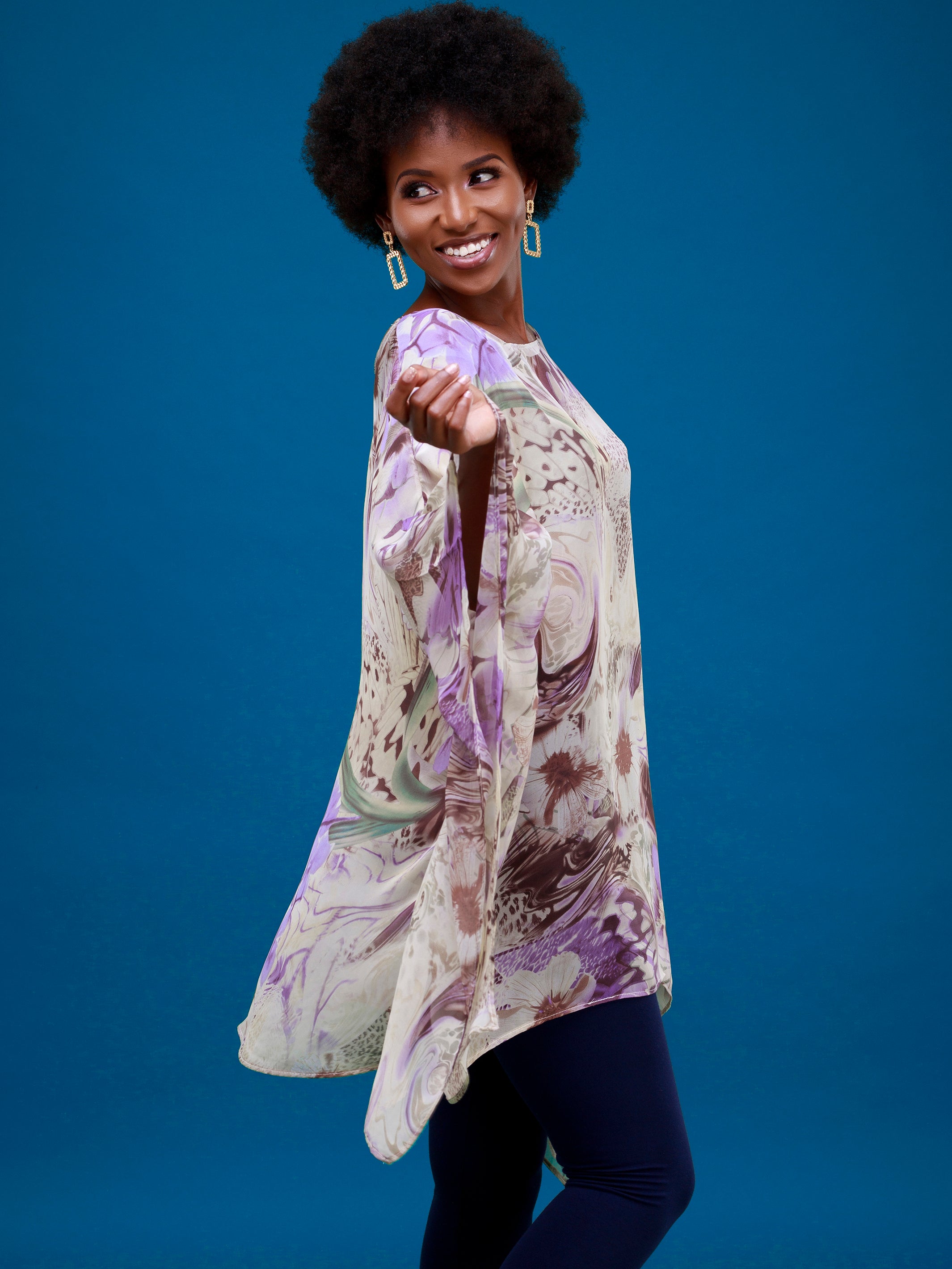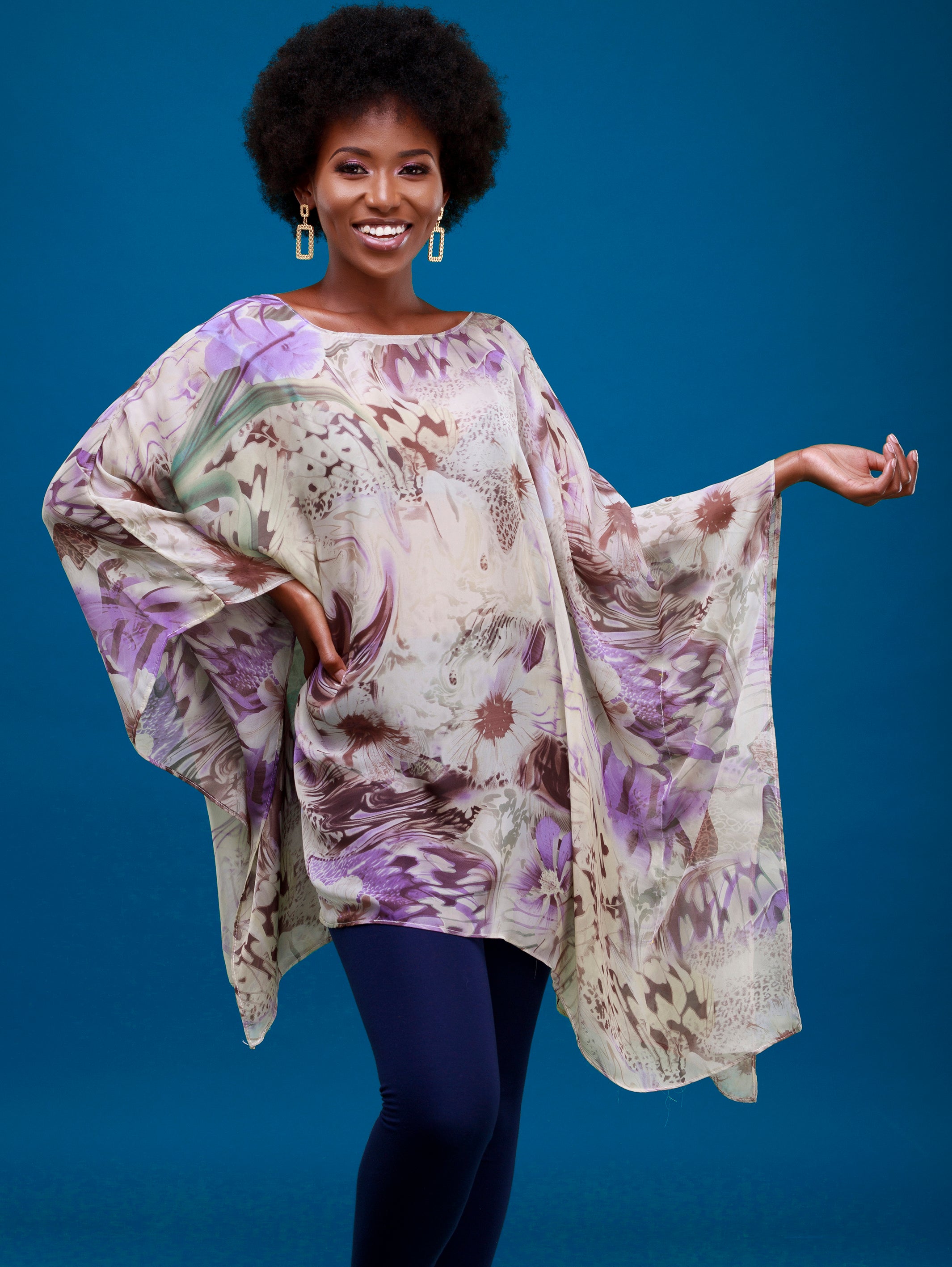 Vivo Basic Tiwi Chiffon Wide Top - Purple Print