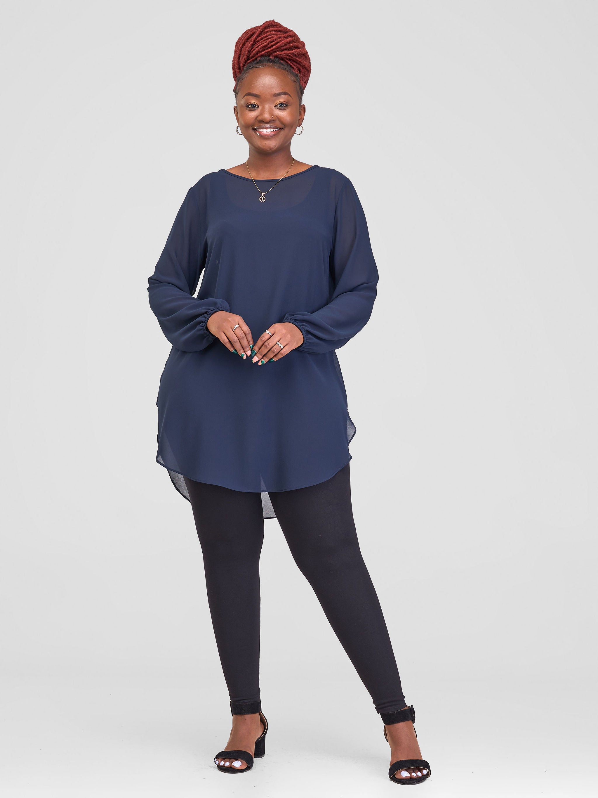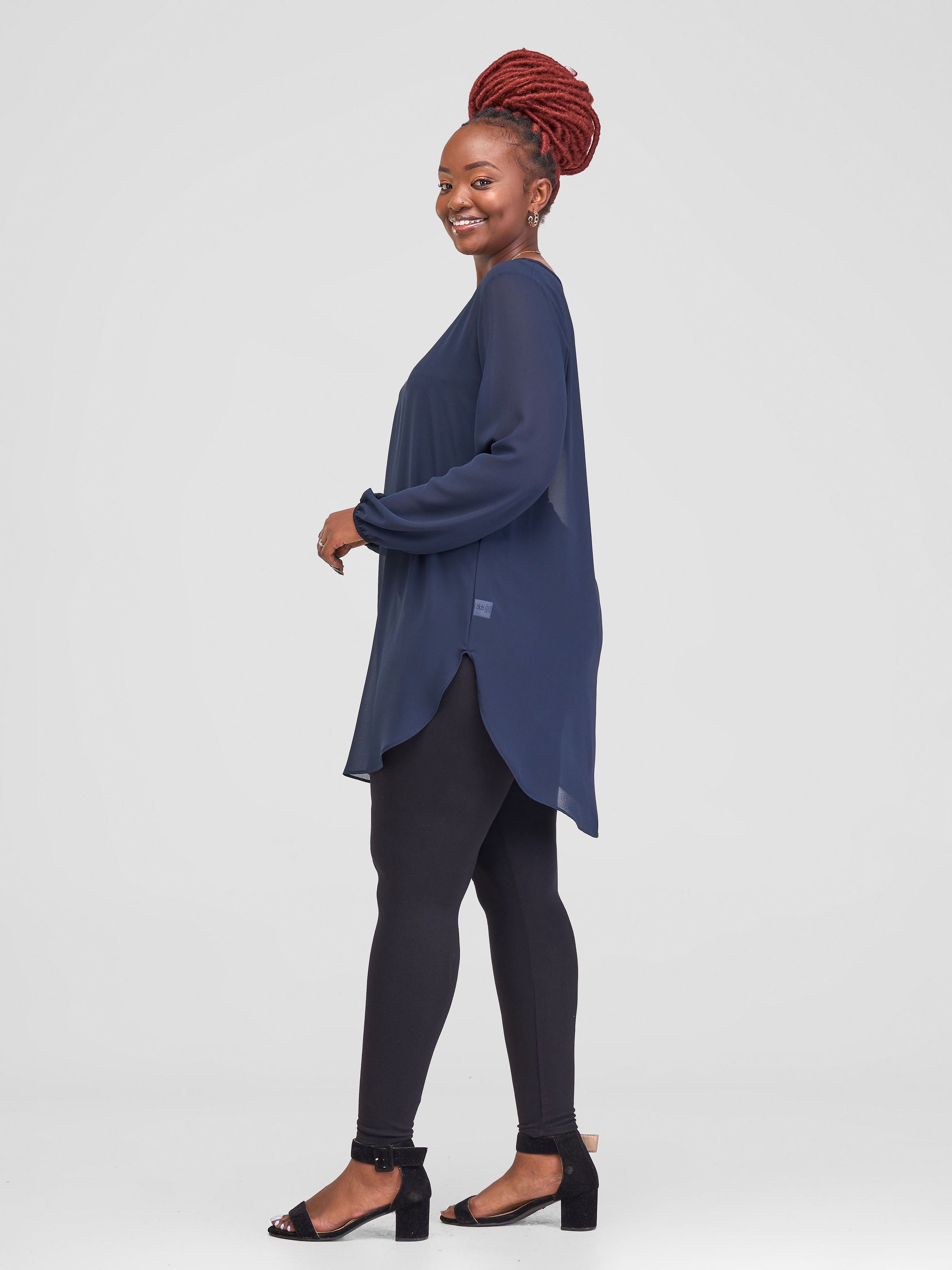 Vivo Basic Tsavo Scalloped Chiffon Top - Navy Blue