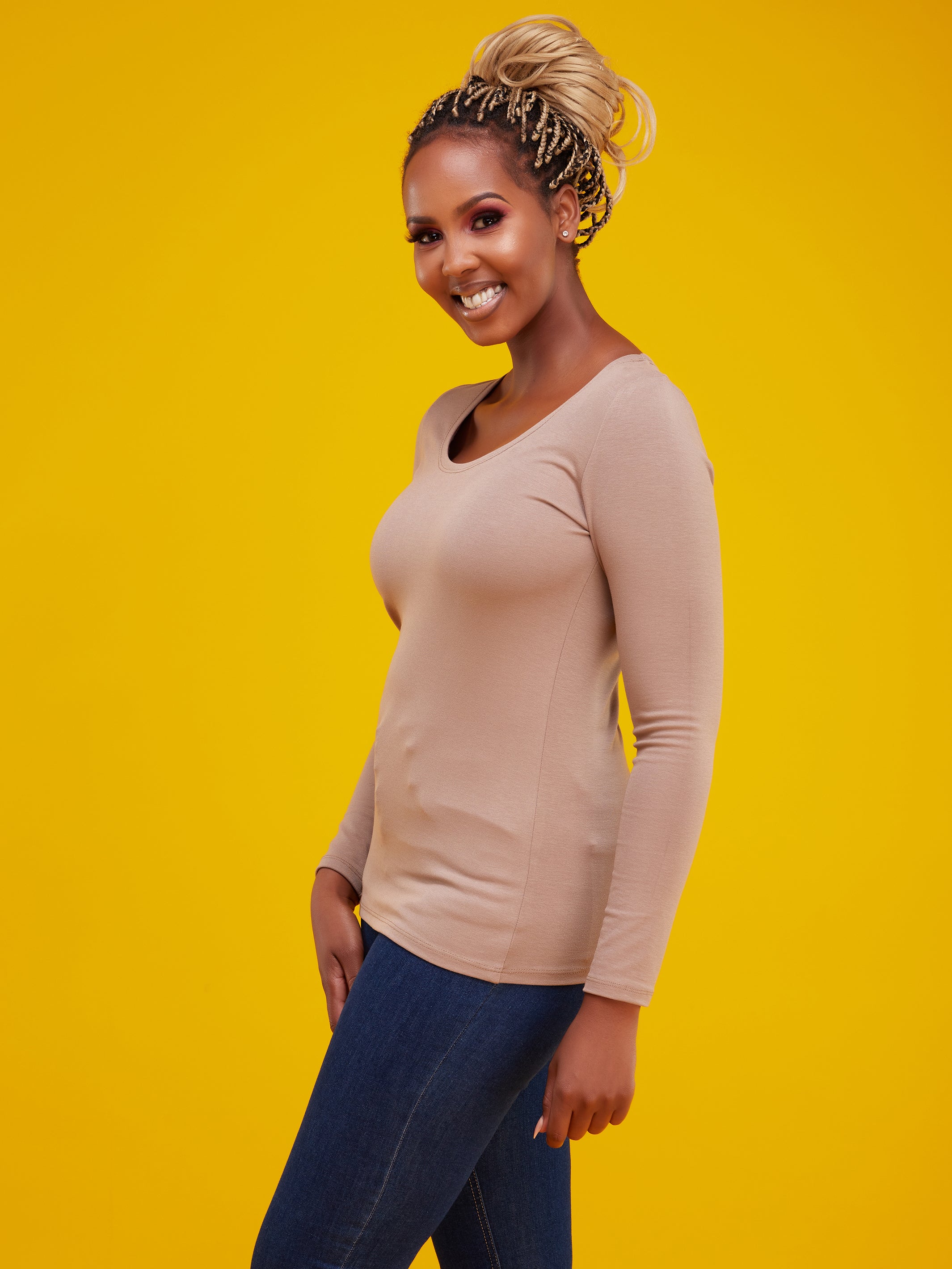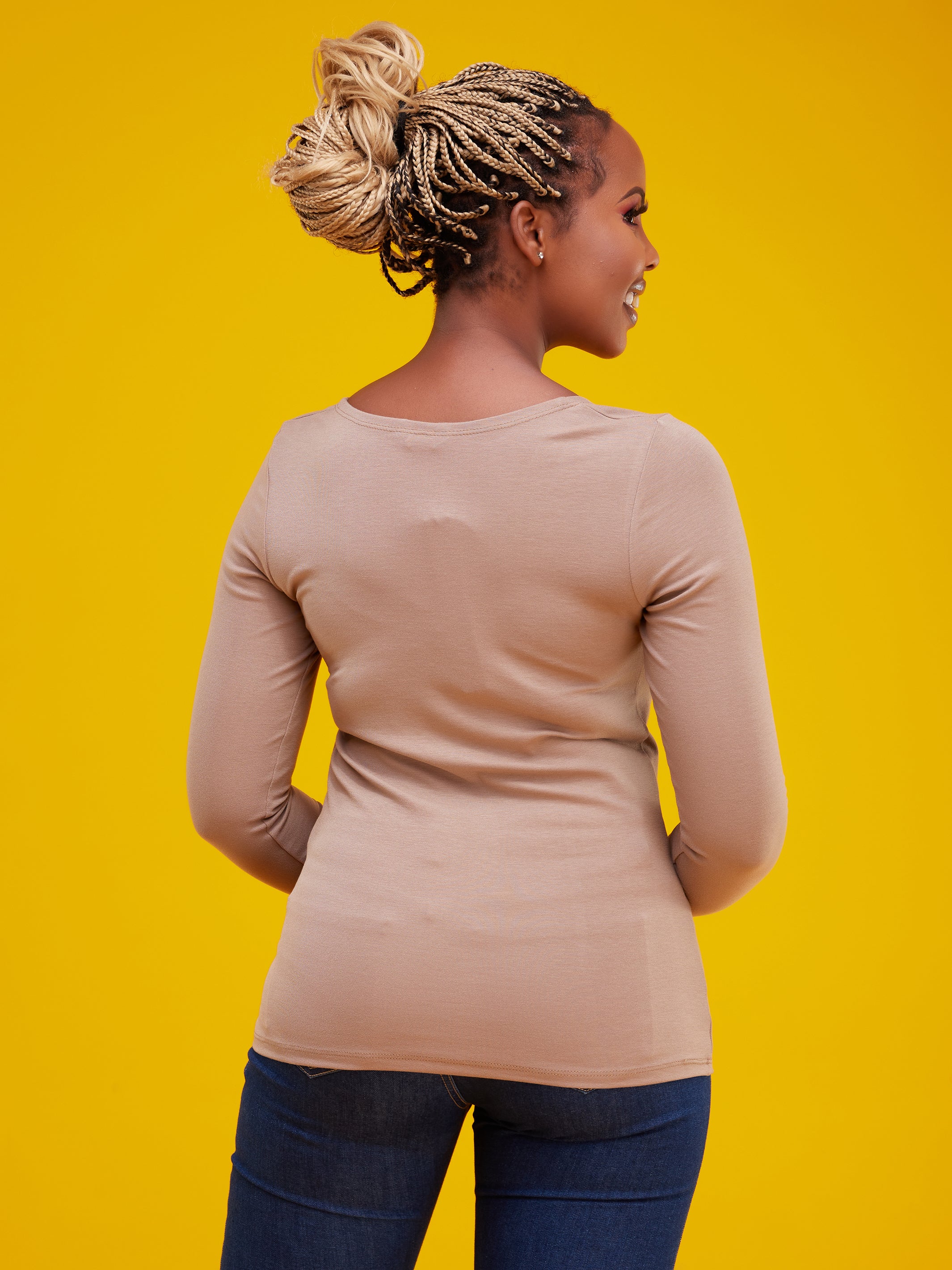 Vivo Basic Tulia Long Sleeved Top - Taupe
