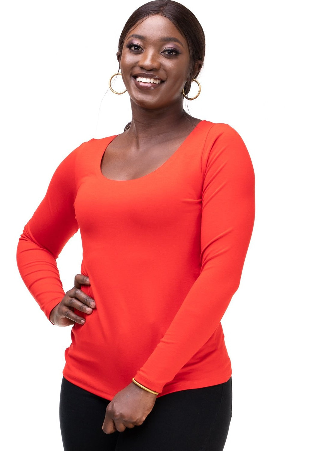 Vivo Basic Tulia Long Sleeved Top - Orange
