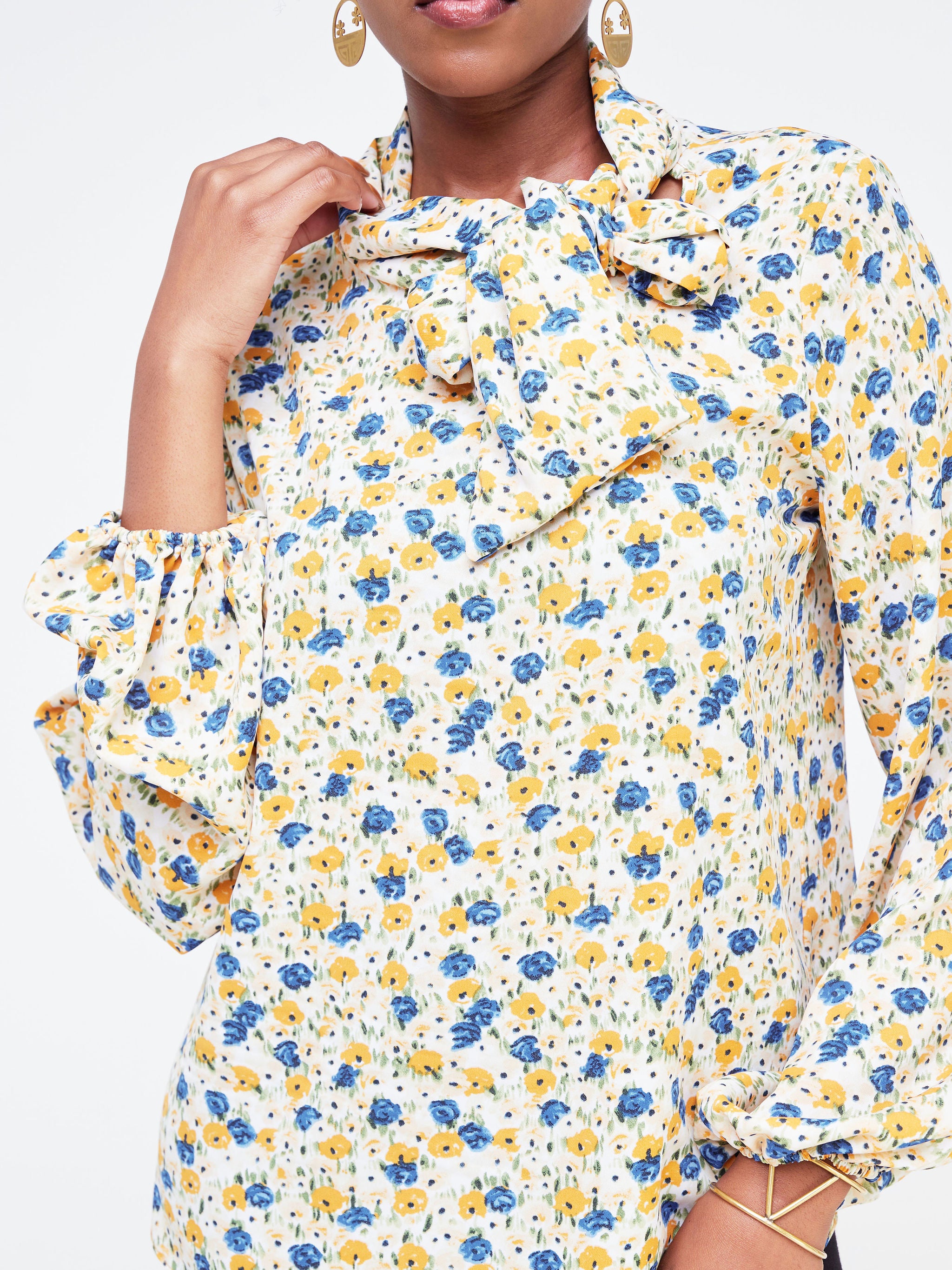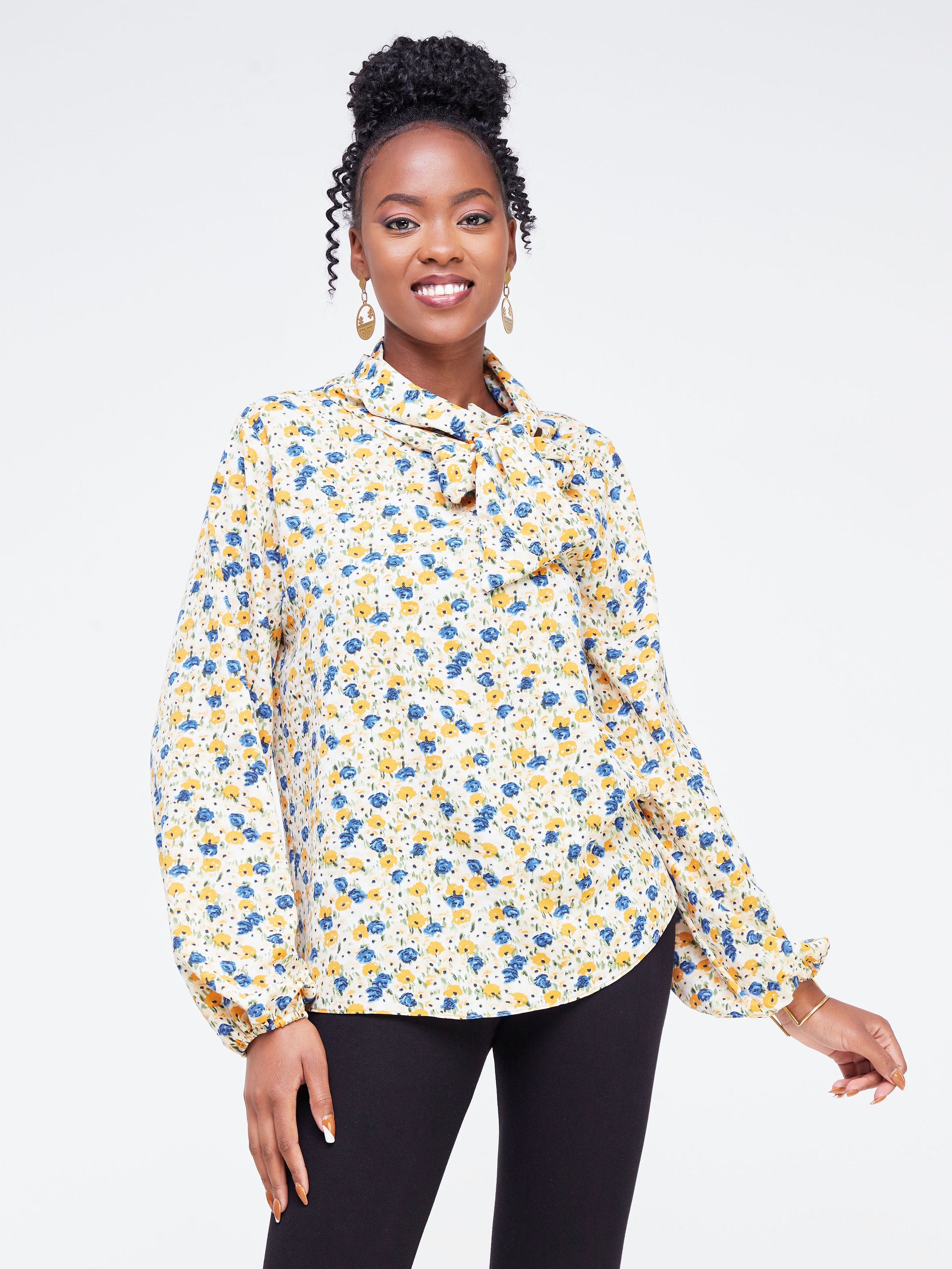 Vivo Bissa Bishop Long Sleeved Top - Navy Blue Floral Print