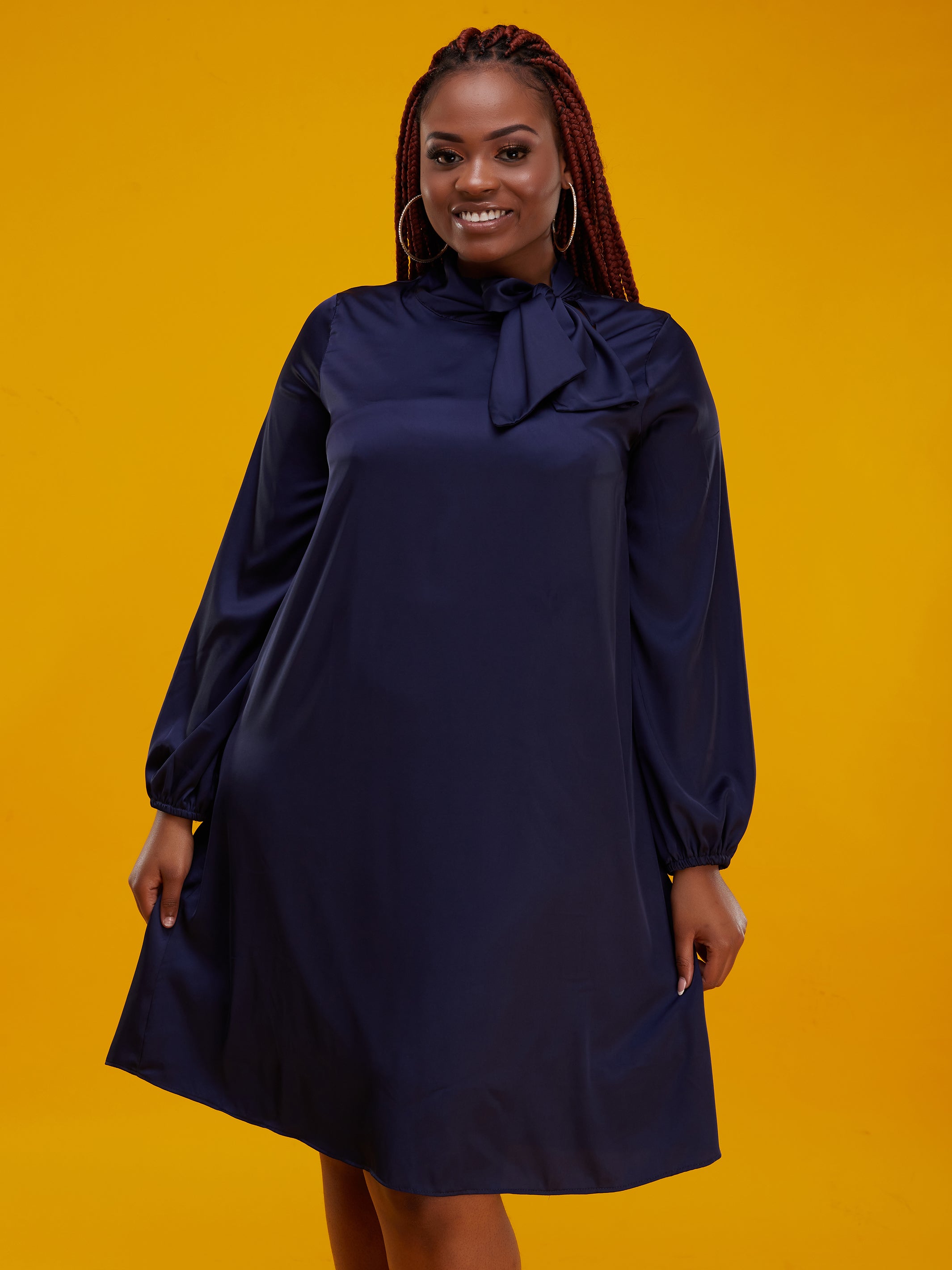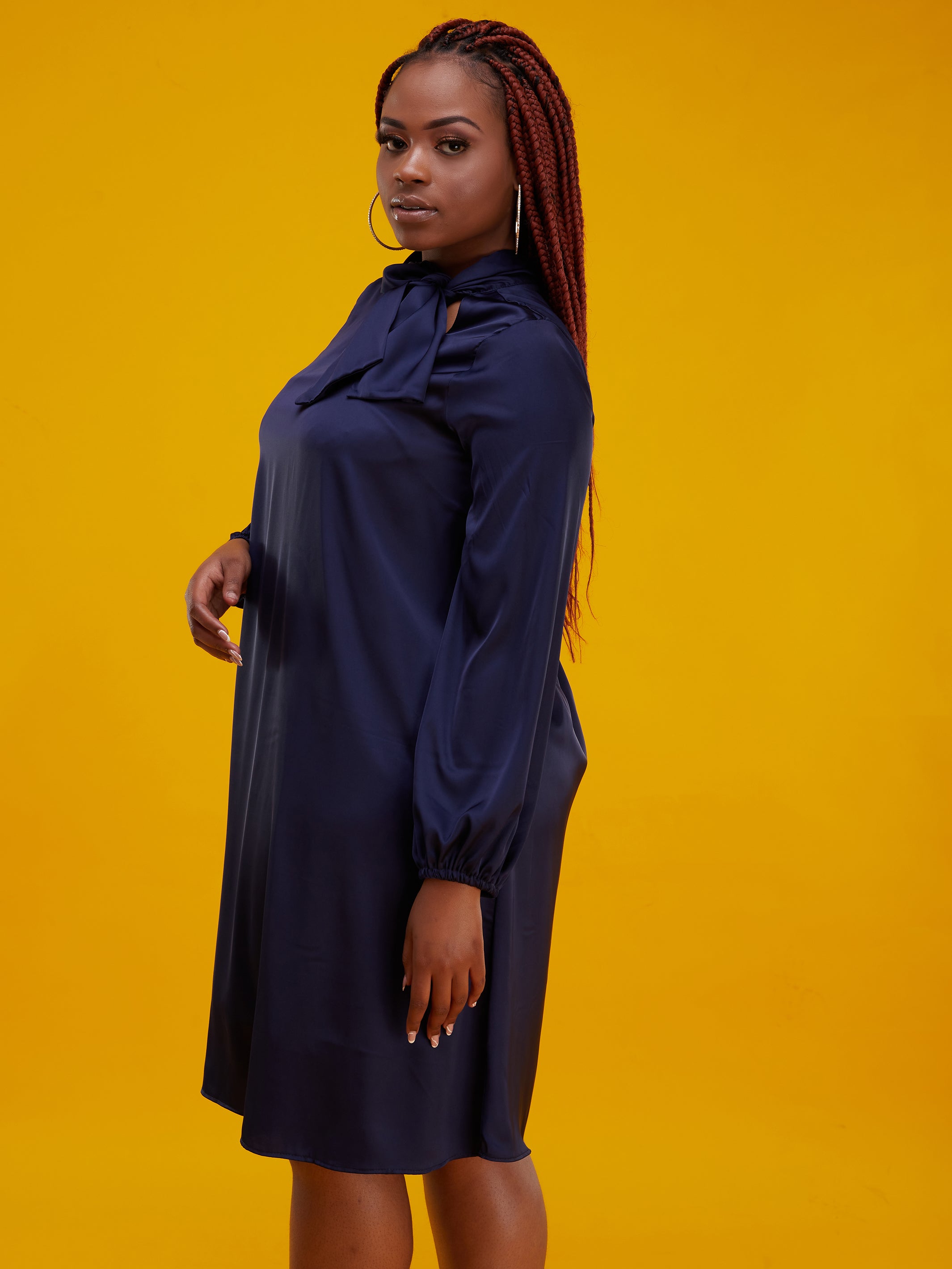 Vivo Bissa Bishop Sleeve Knee Length Dress - Navy Blue