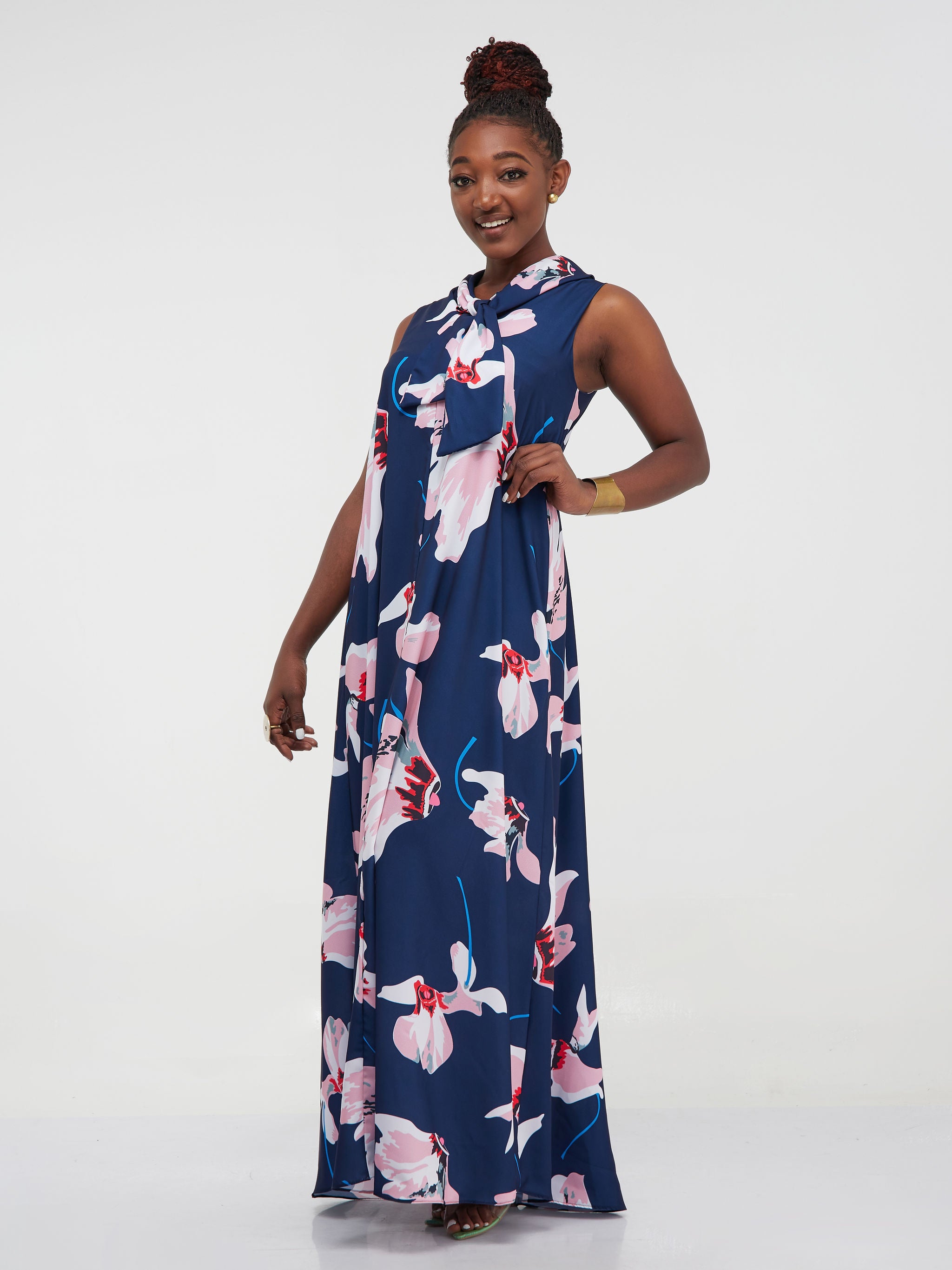 Vivo Bissa Reversible Maxi Dress - Navy Blue Floral Print
