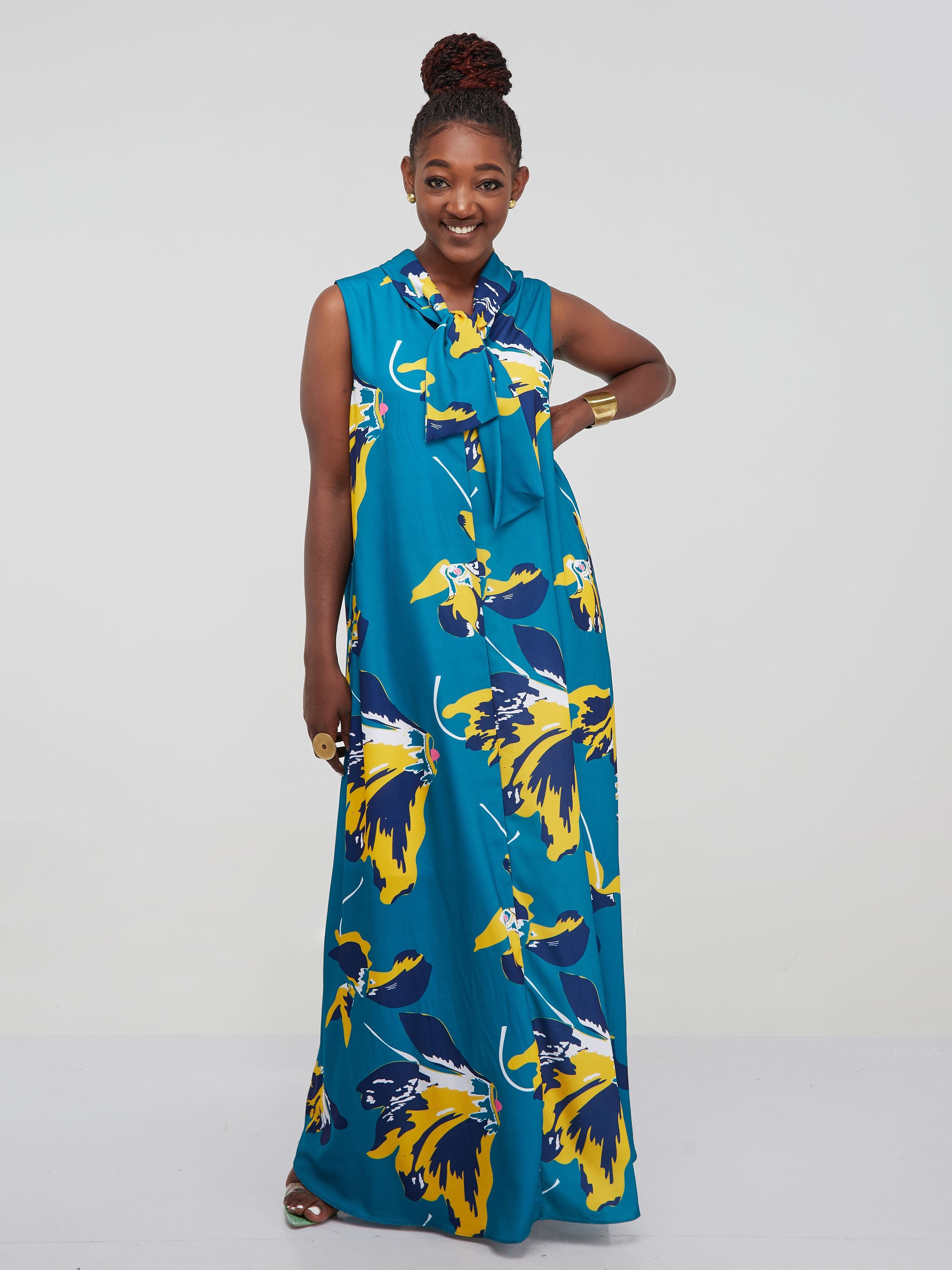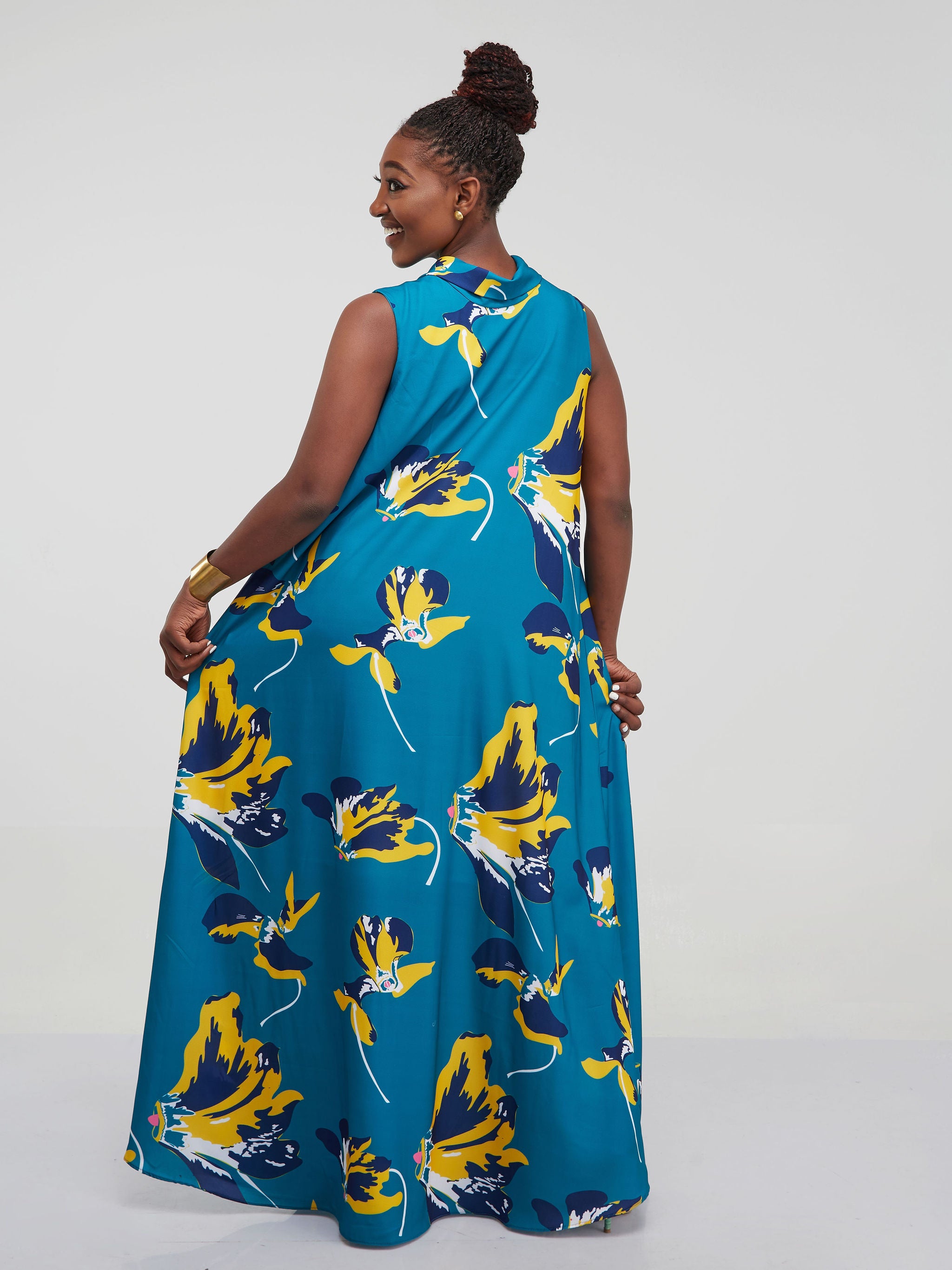 Vivo Bissa Reversible Maxi Dress - Teal Floral Print