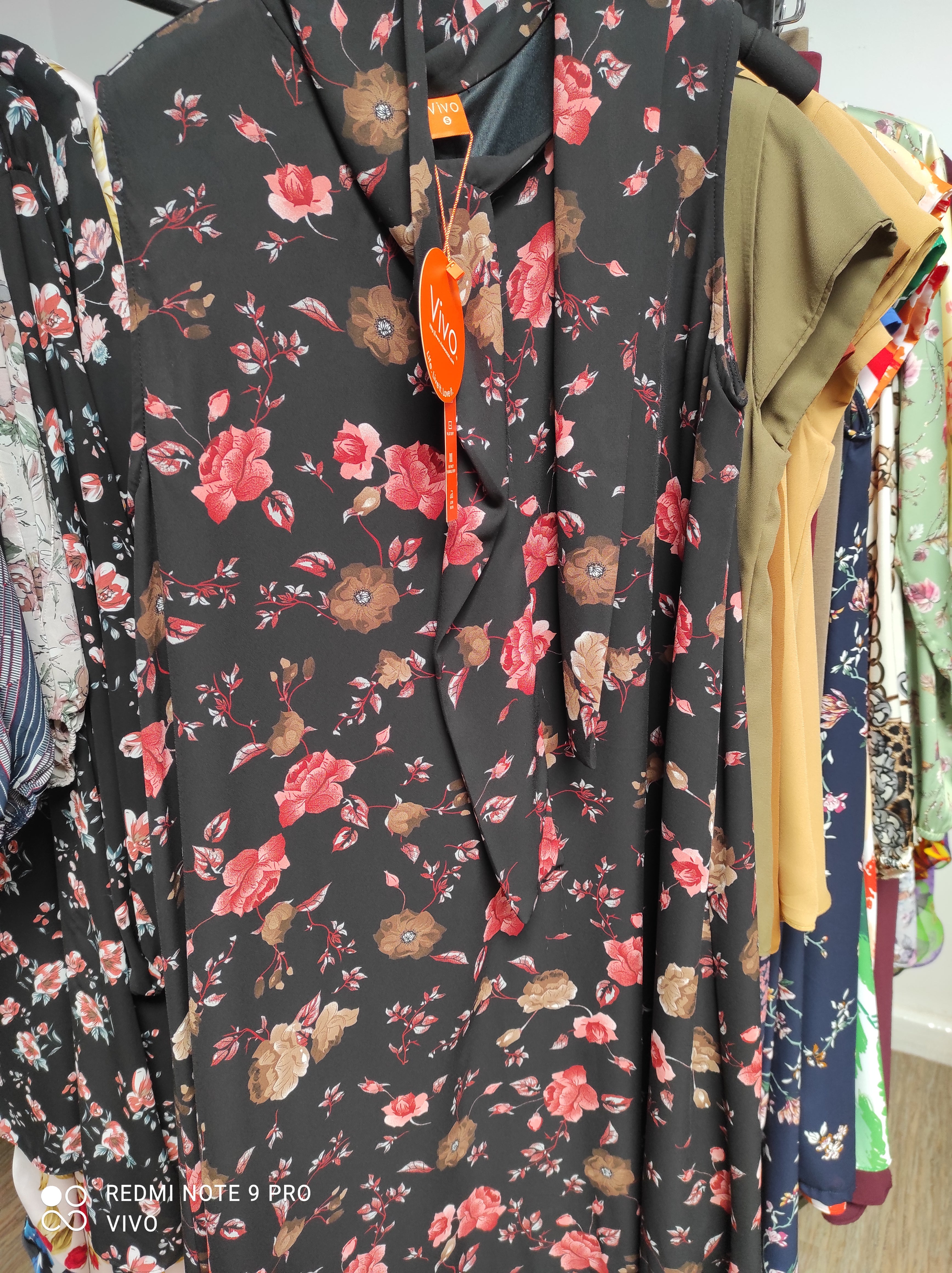 Vivo Bissa Sleeveless Knee Length Tent Dress - Black / Peach Print