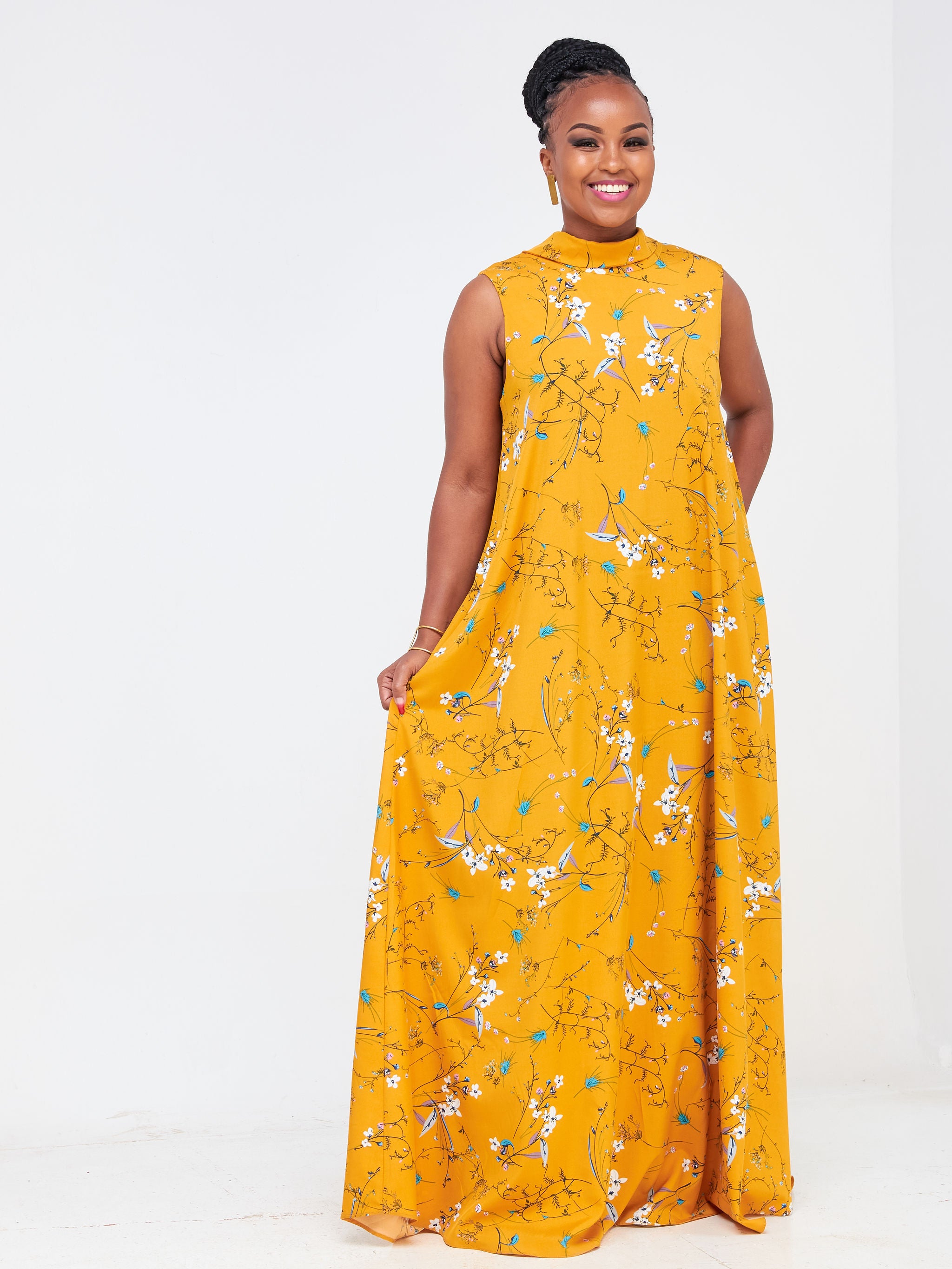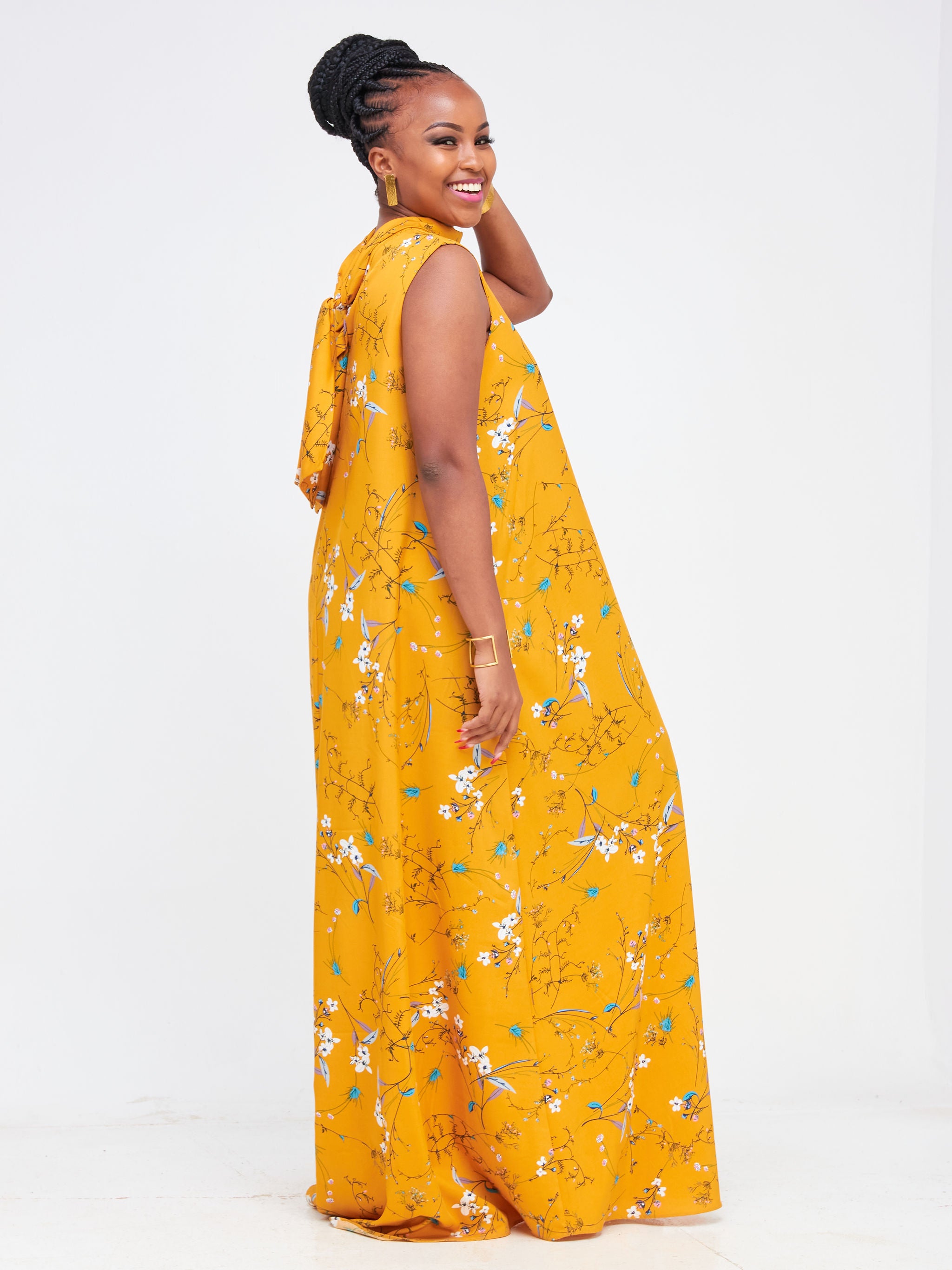 Vivo Bissa Reversible Maxi Dress - Mustard Floral Print