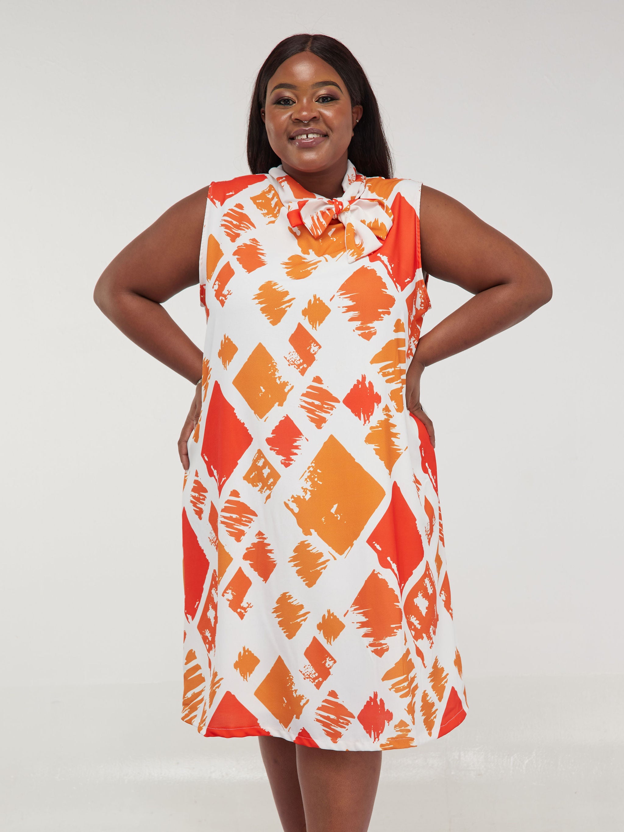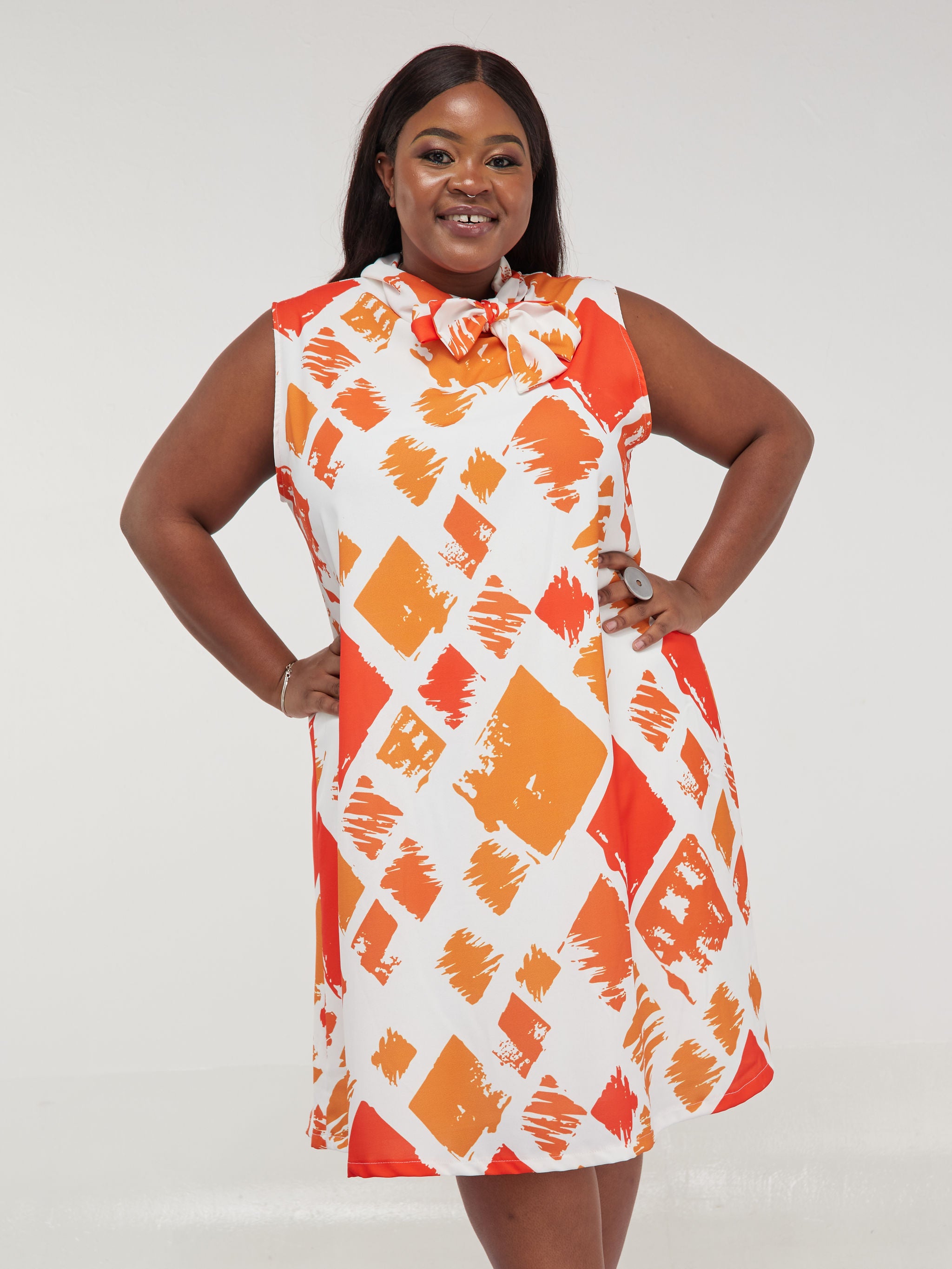 Vivo Bissa Sleeveless Knee Length Tent Dress - Orange Print