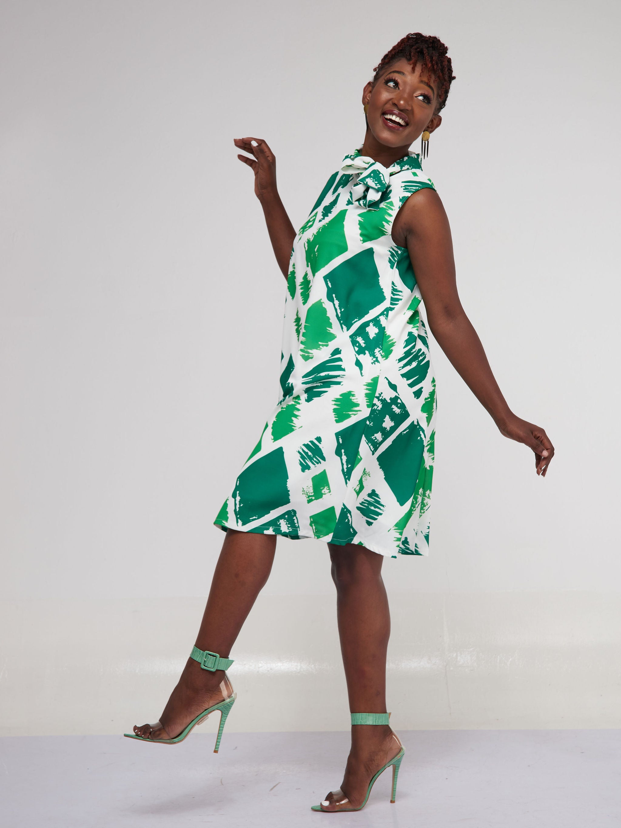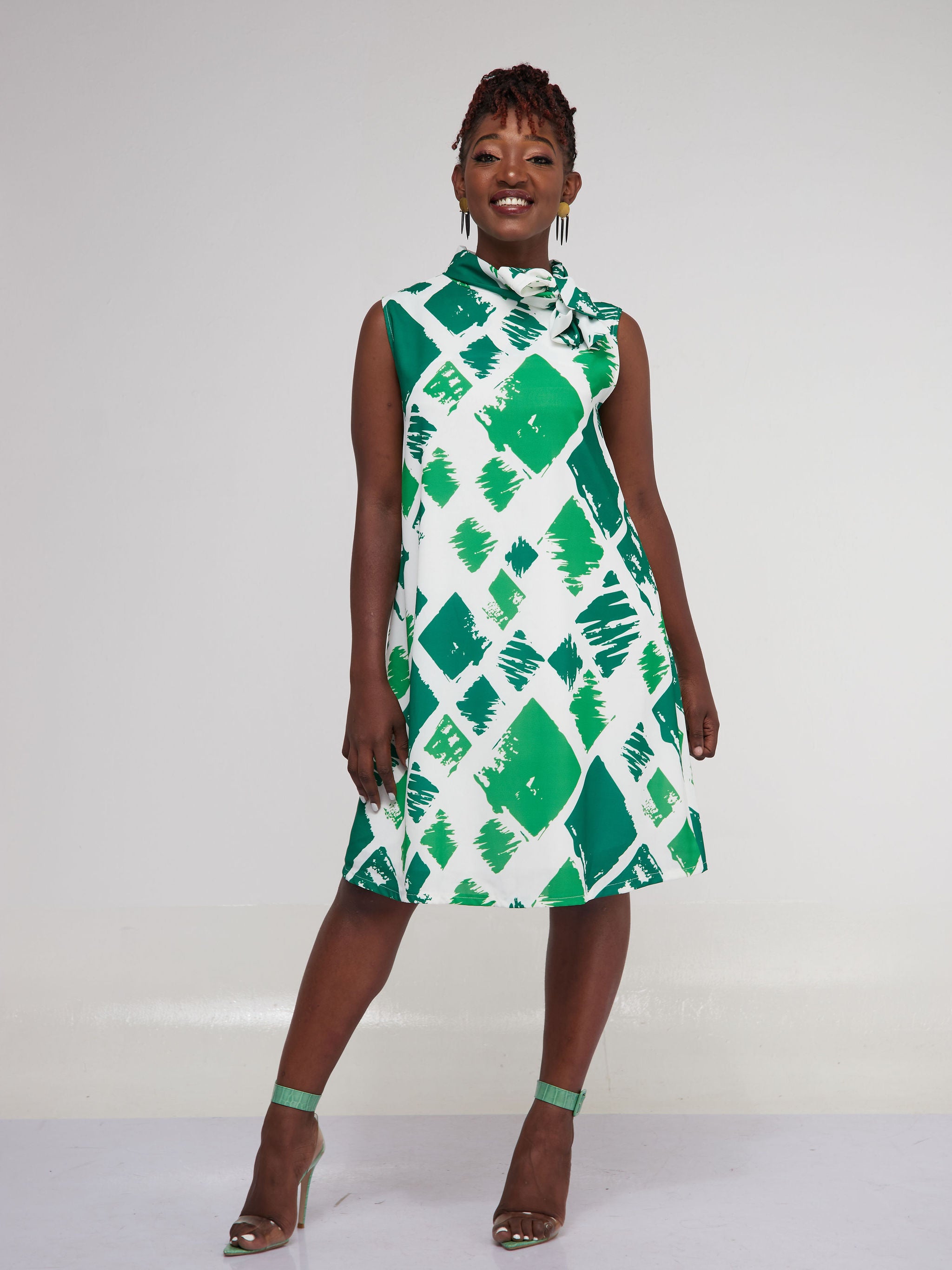 Vivo Bissa Sleeveless Knee Length Tent Dress - Green Print