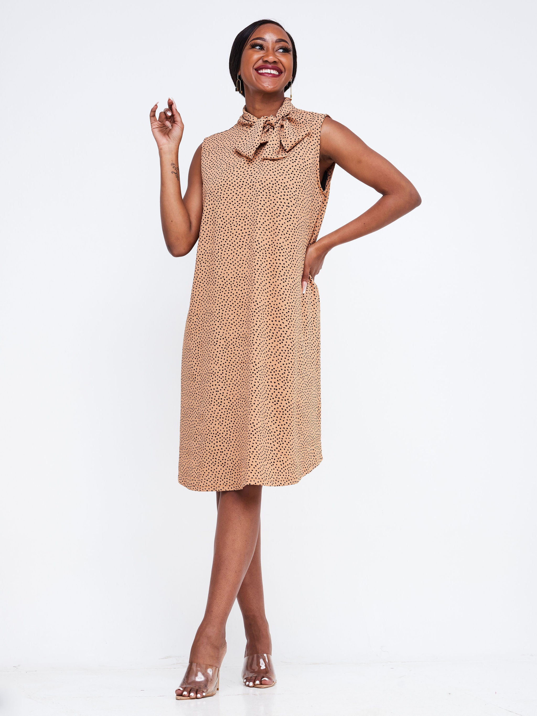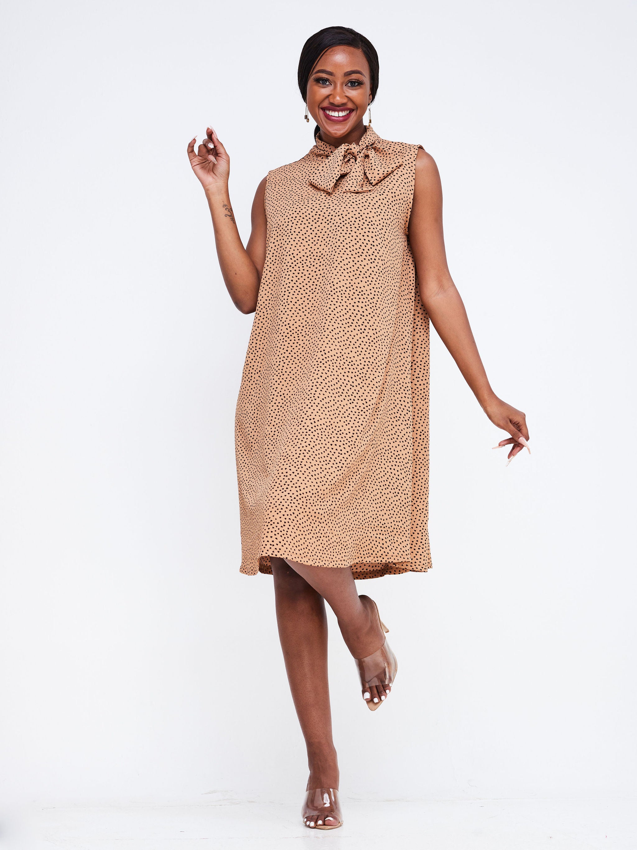 Vivo Bissa Sleeveless Knee Length Tent Dress - Brown Abstract Print